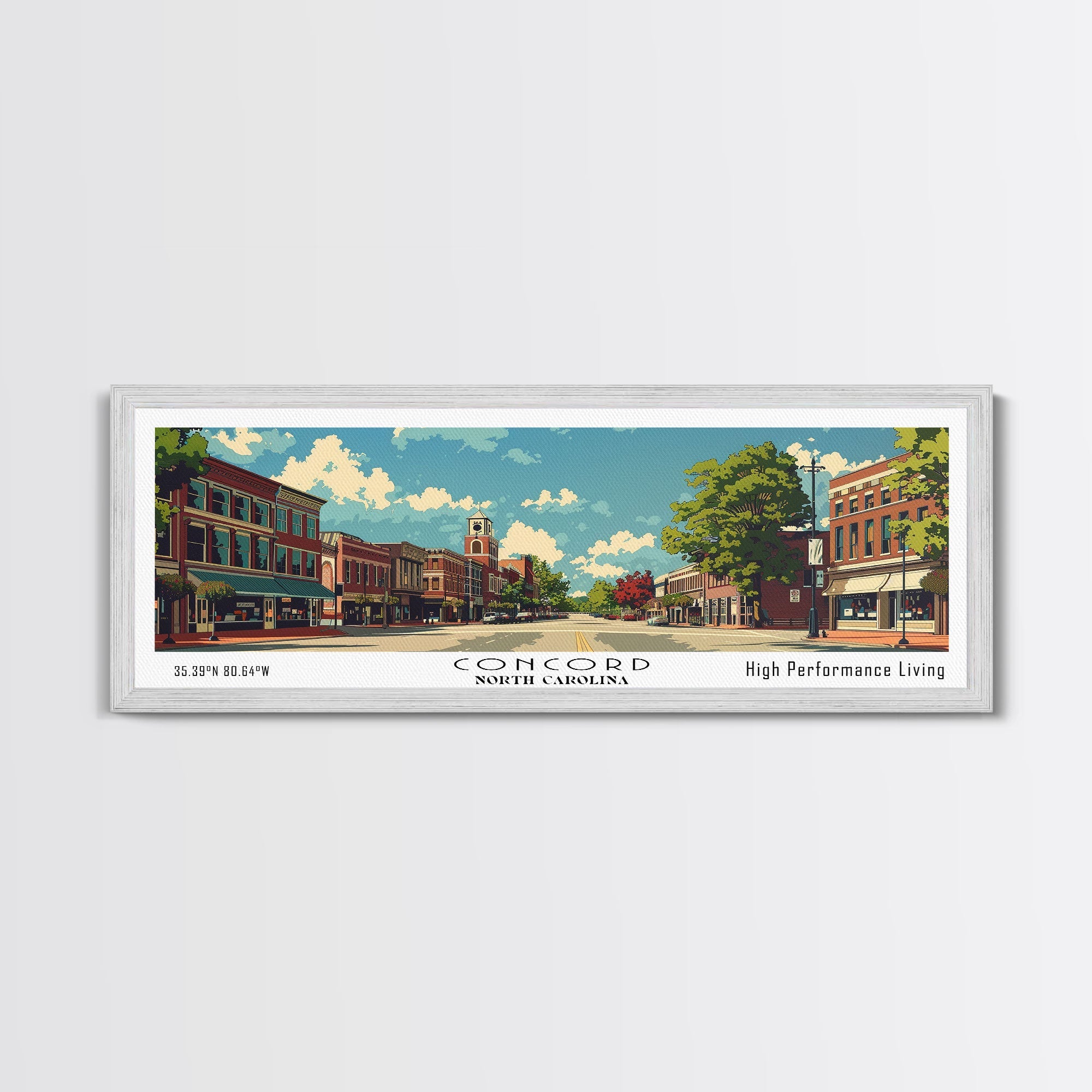 Concord North Carolina Panoramic Wall Art, Mid Century Modern Framed Canvas Print, Retro Pop Art Travel Poster, City Office Art, Home Decor