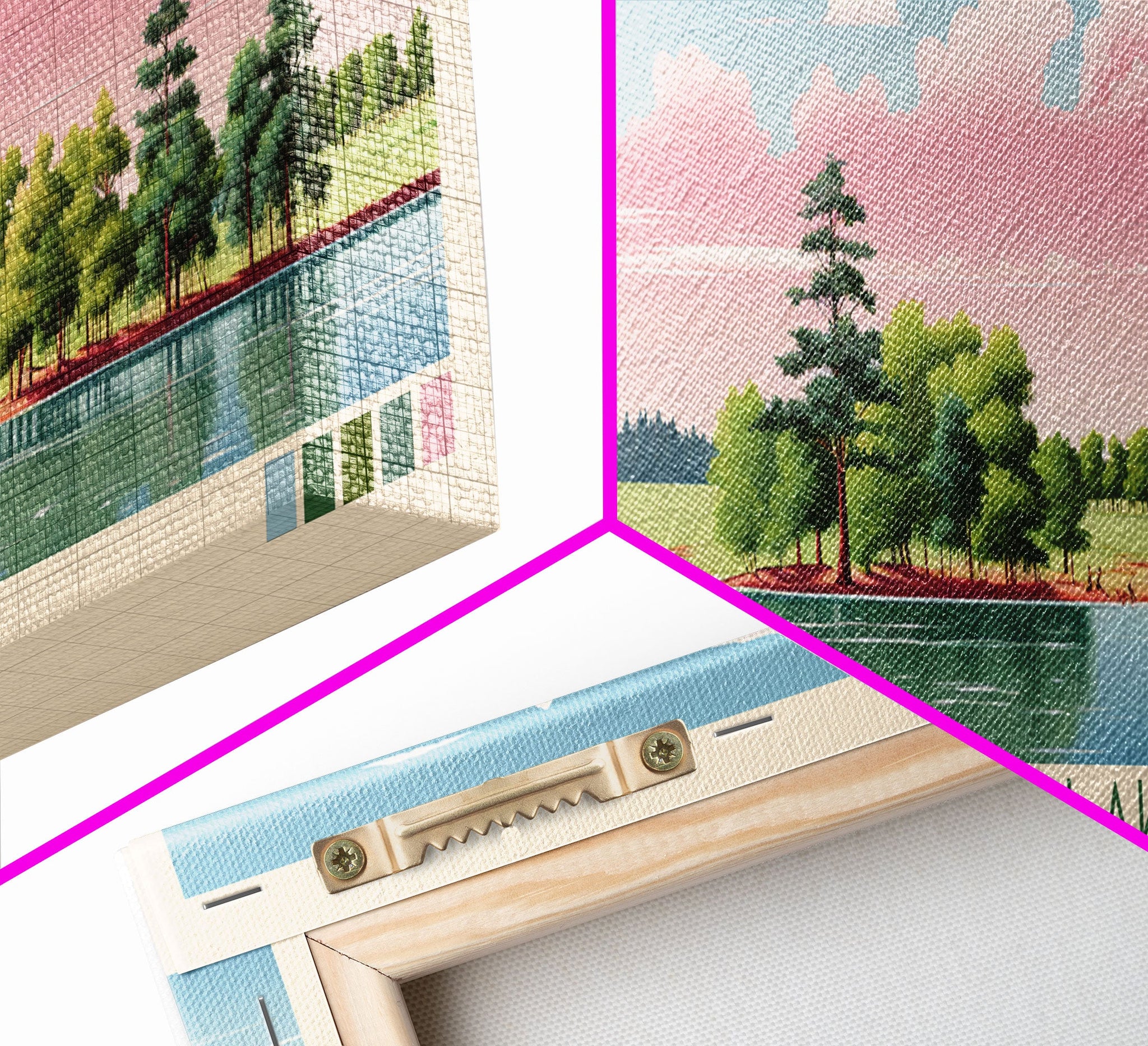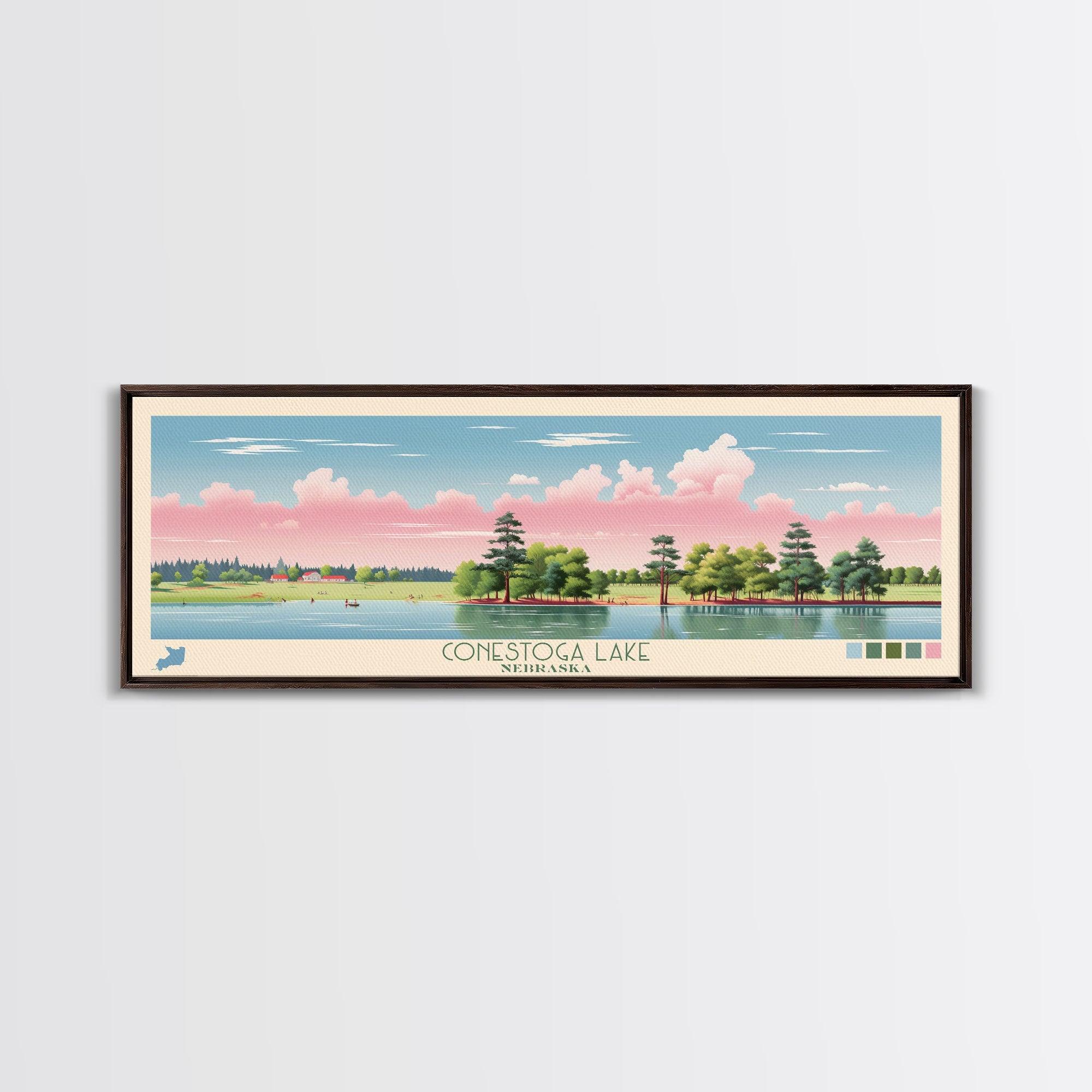 Conestoga Lake Nebraska Framed Canvas Print, Pop Art Panoramic Travel Poster, Midcentury Modern, Wall Art, Scenic Nature Painting, Bedroom Decor, Living Room Art
