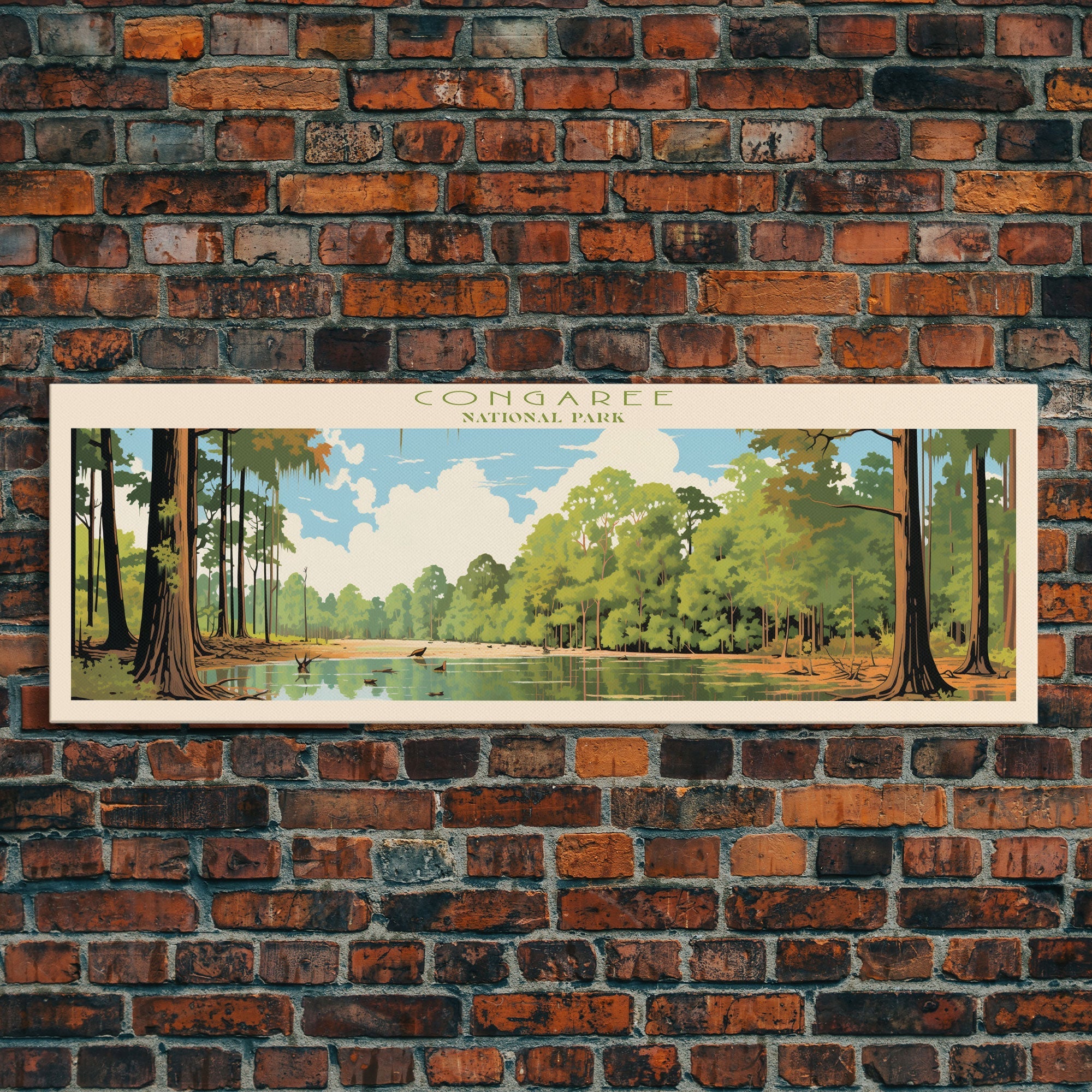 Congaree National Park, Panoramic South Carolina Travel Art, National Park Print, Minimalist Travel Art, Midcentury Modern Style Landscape