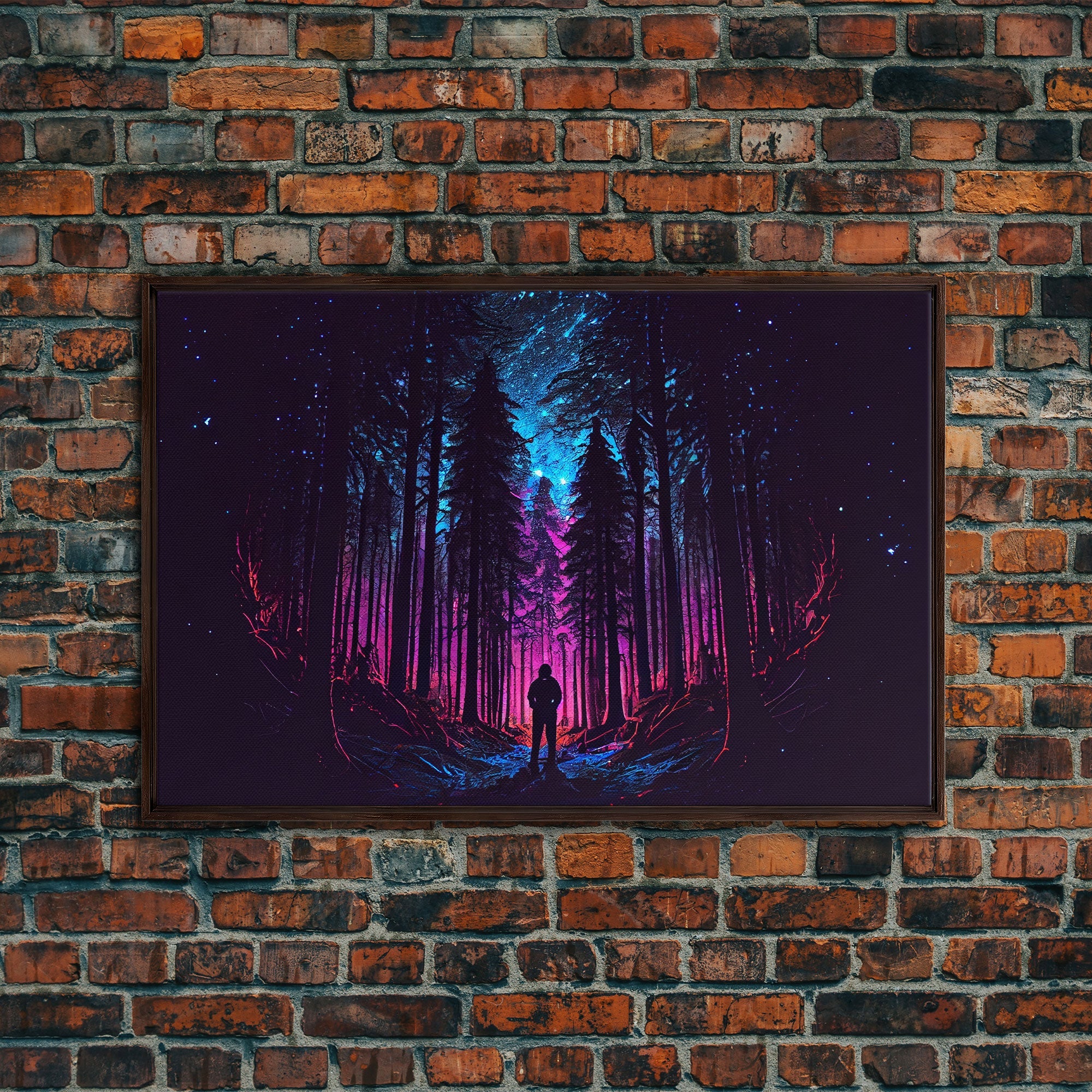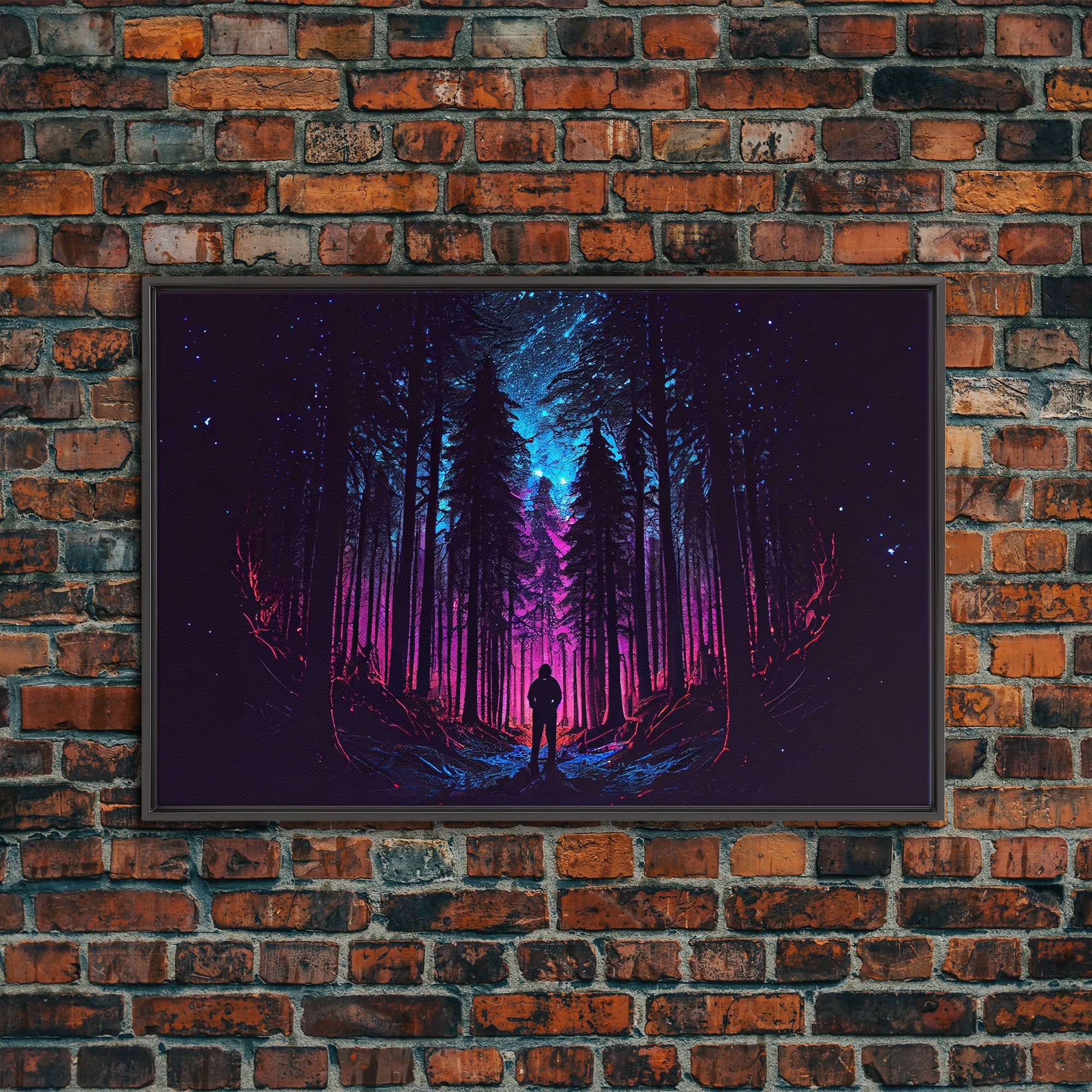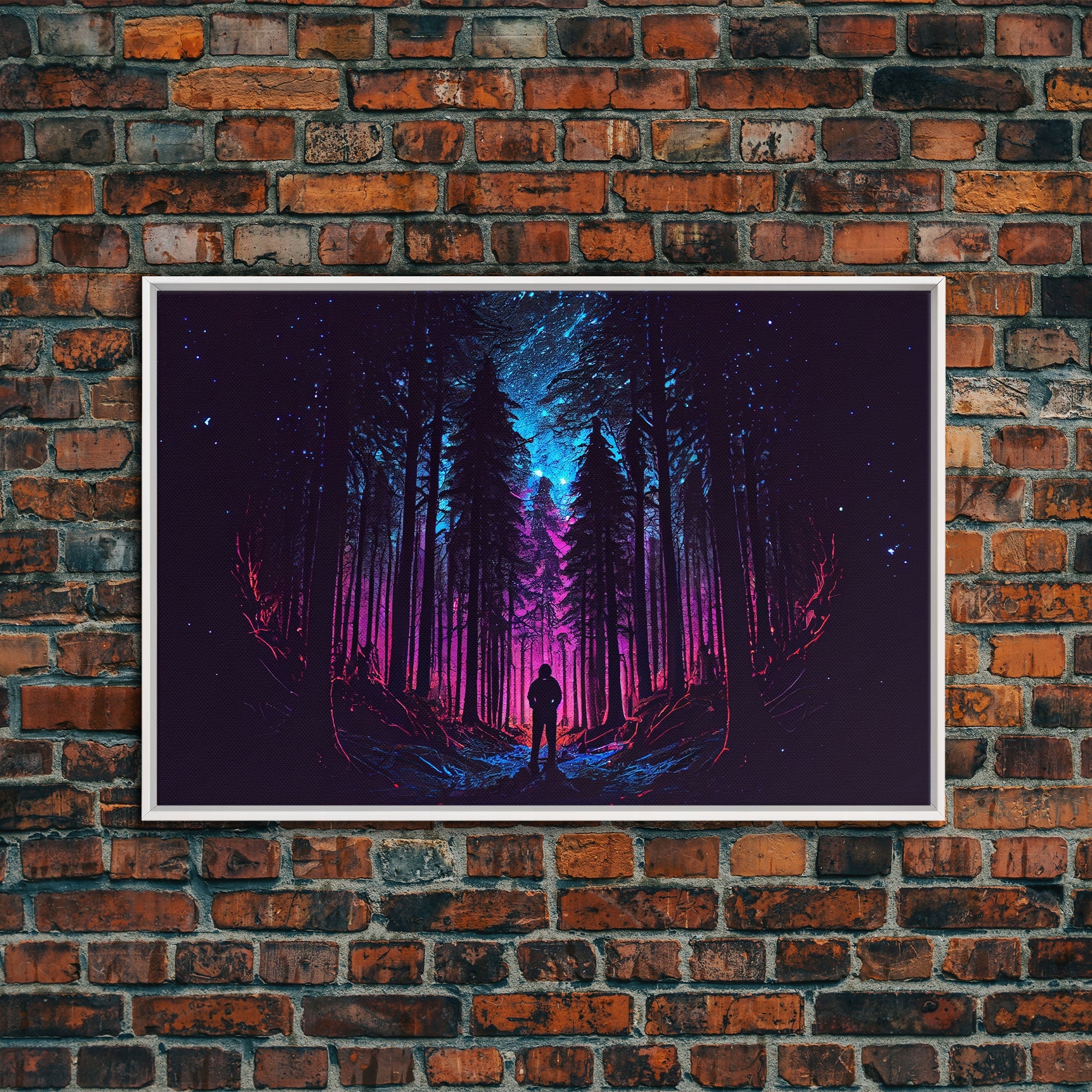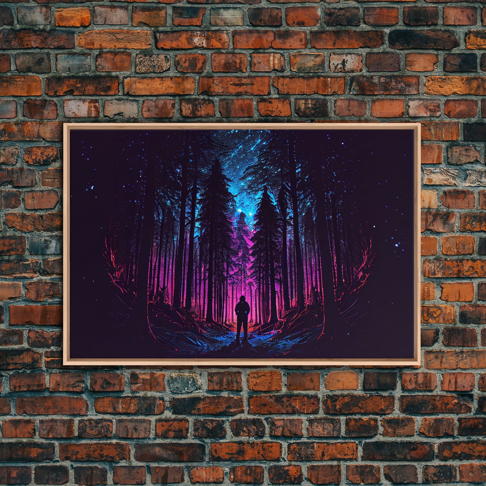 Contemplating the stars, vaporwave aesthetic, forest art, starry night, framed canvas print, outrun art