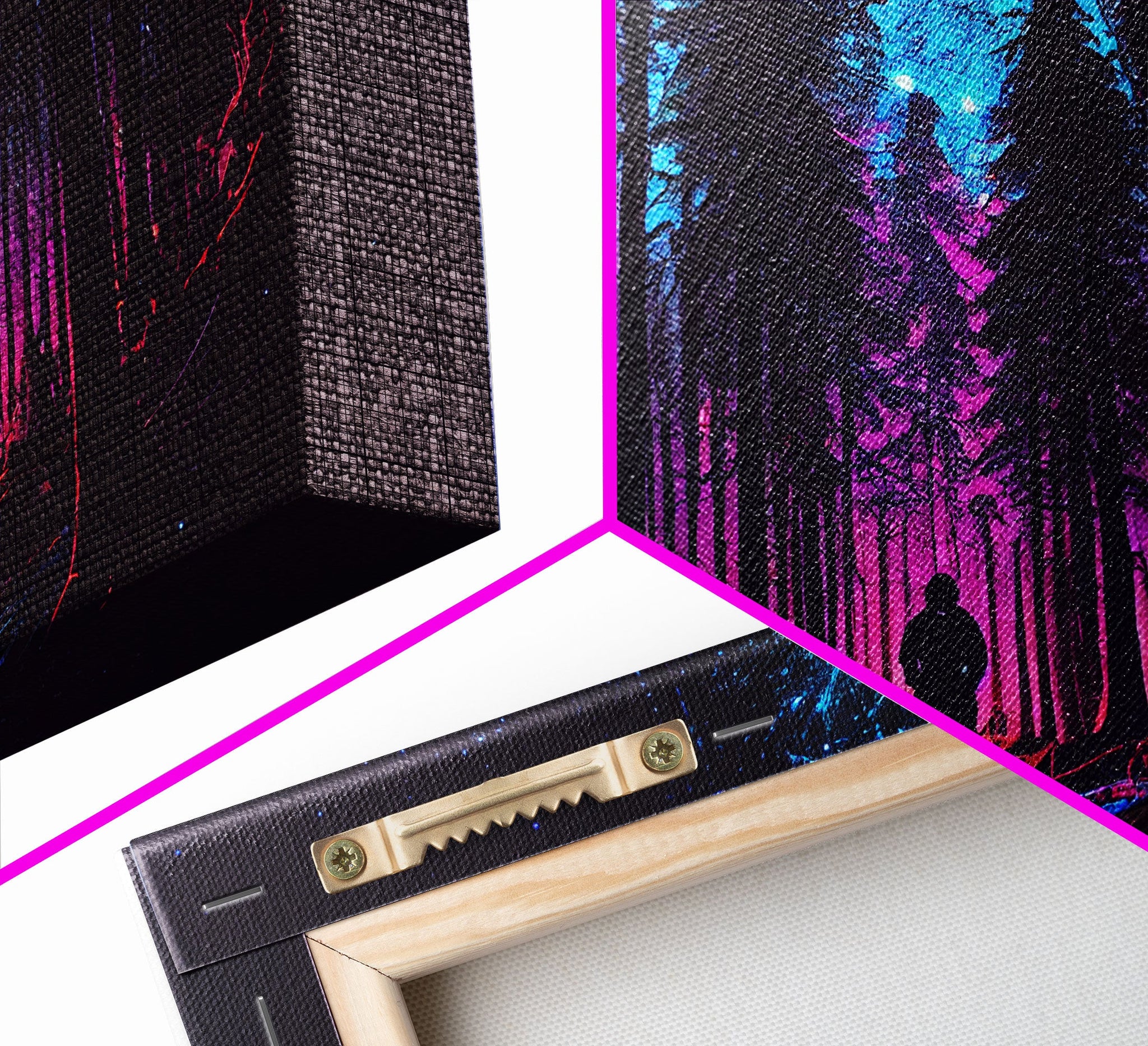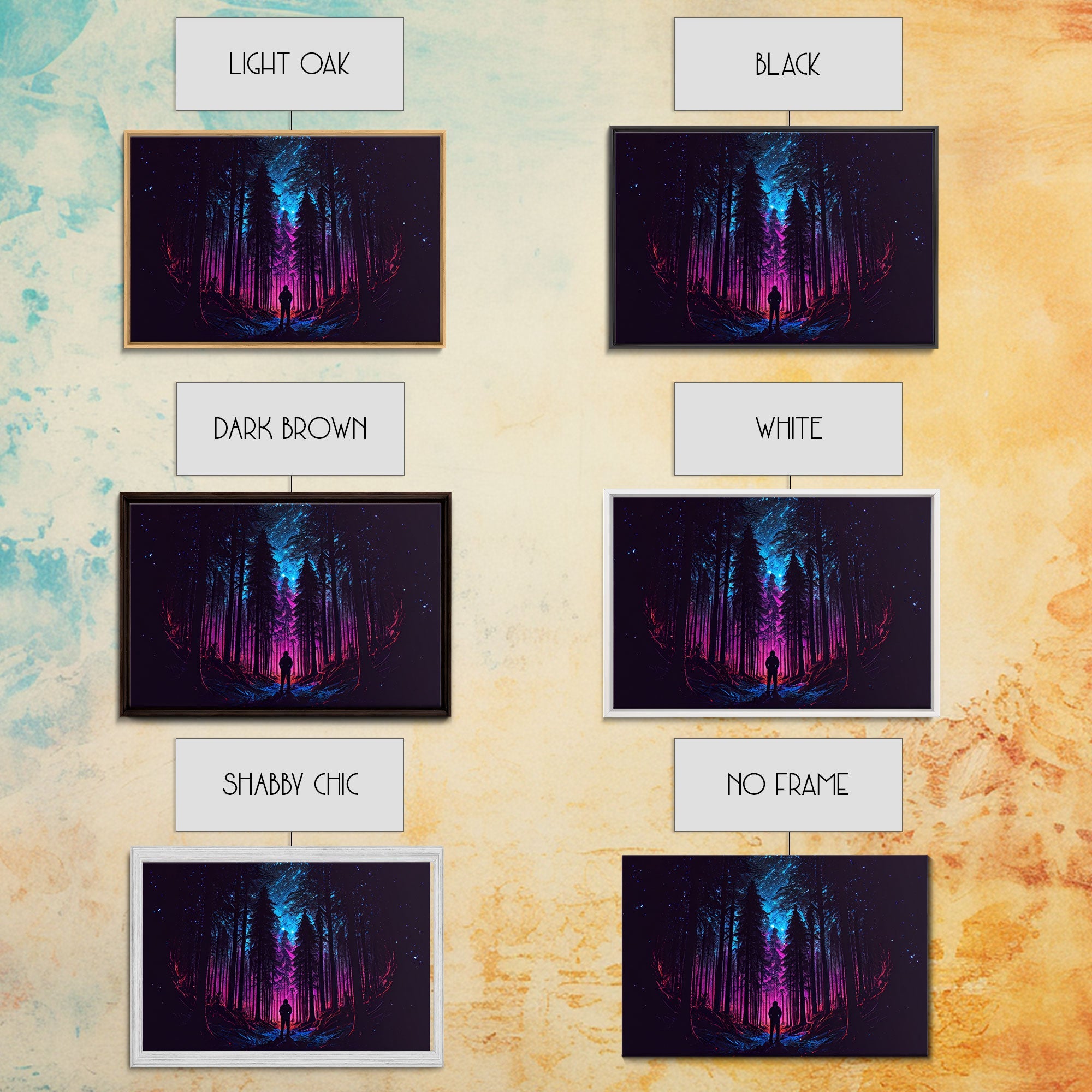 • Cargar imagen en el visor de la galería, Contemplating the stars, vaporwave aesthetic, forest art, starry night, framed canvas print, outrun art