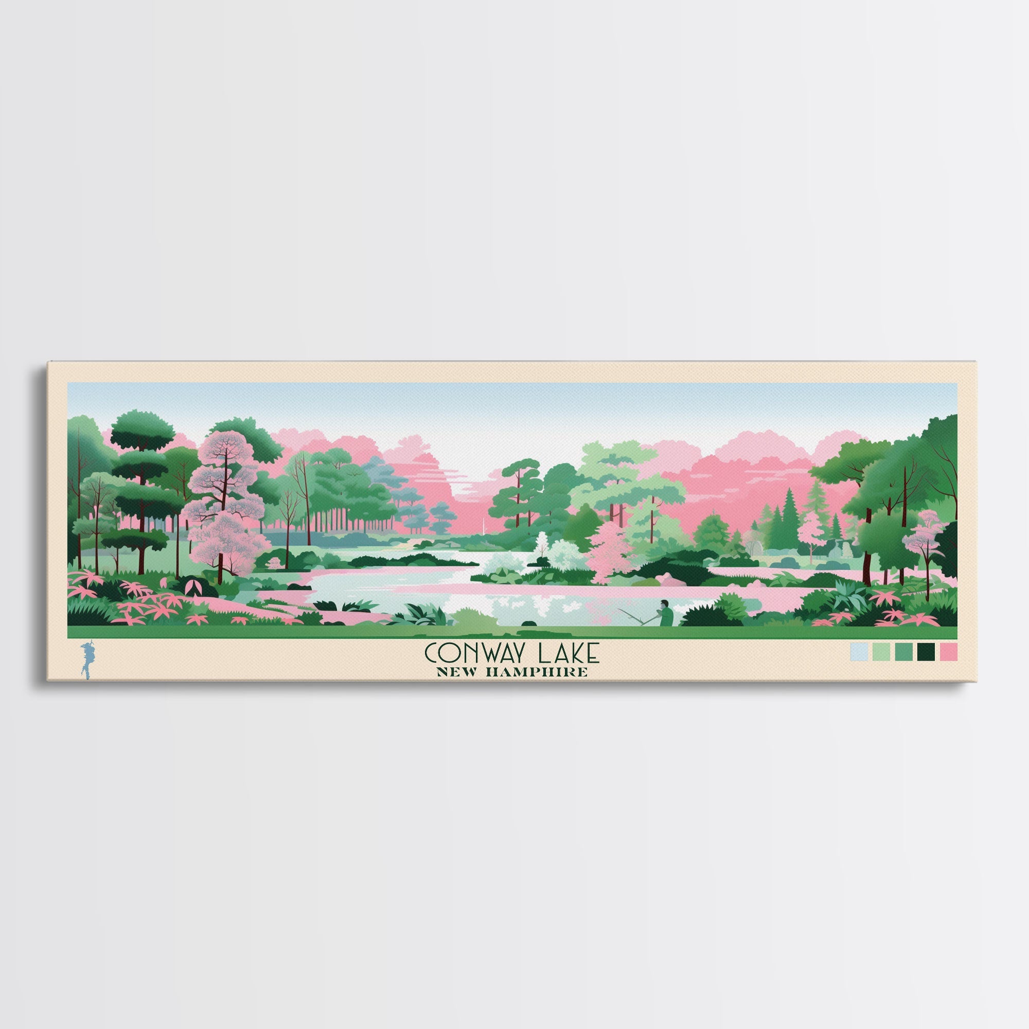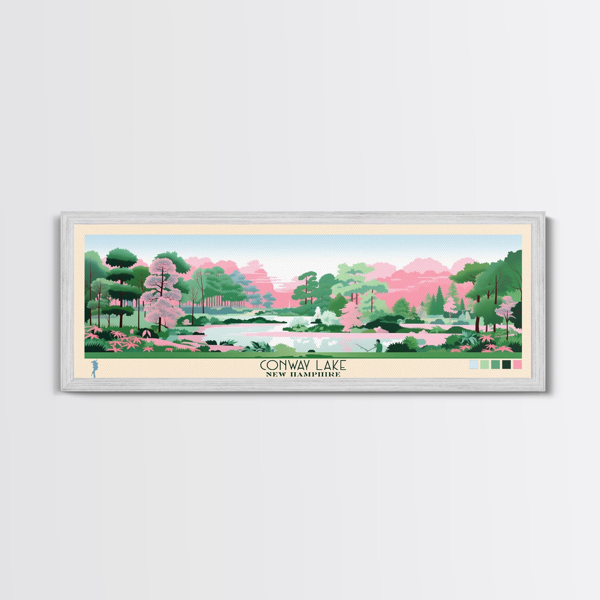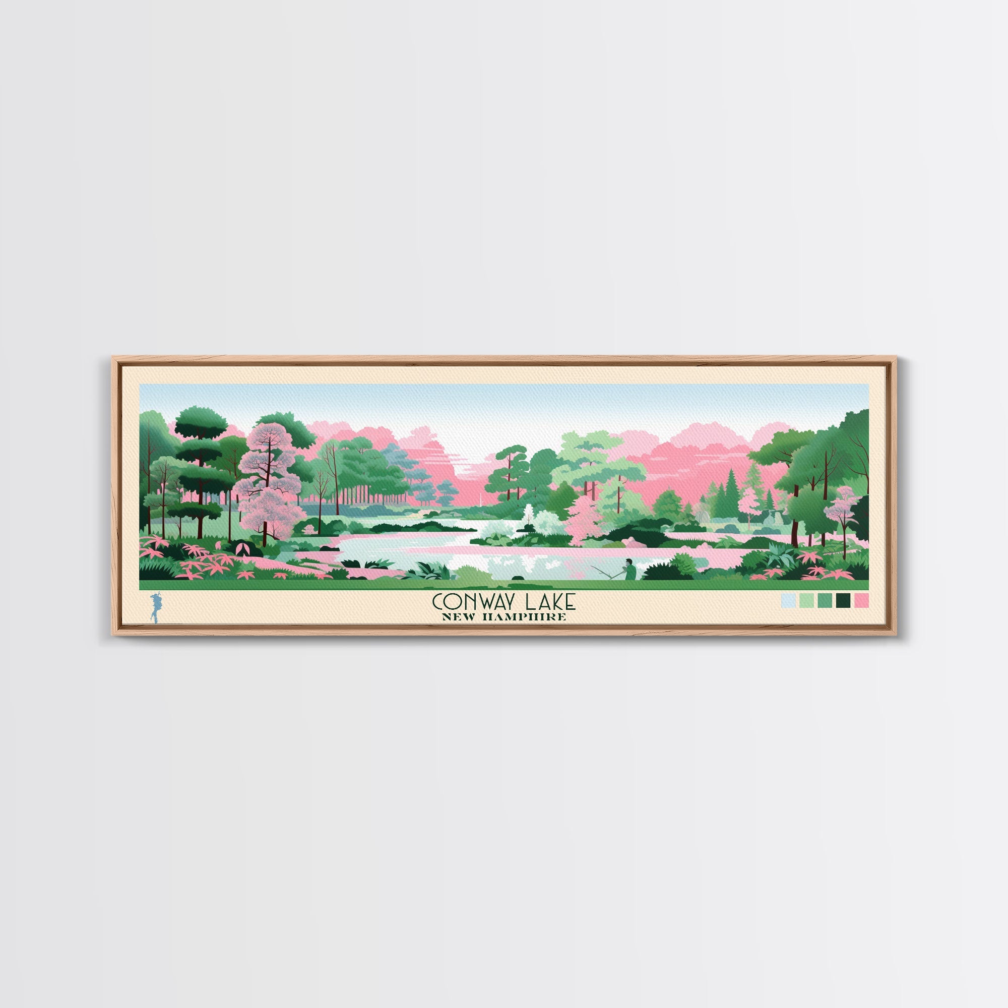 Conway Lake New Hamphire Framed Canvas Print, Pop Art Panoramic Travel Poster, Midcentury Modern, Wall Art, Scenic Nature Painting, Bedroom Decor, Living Room Art