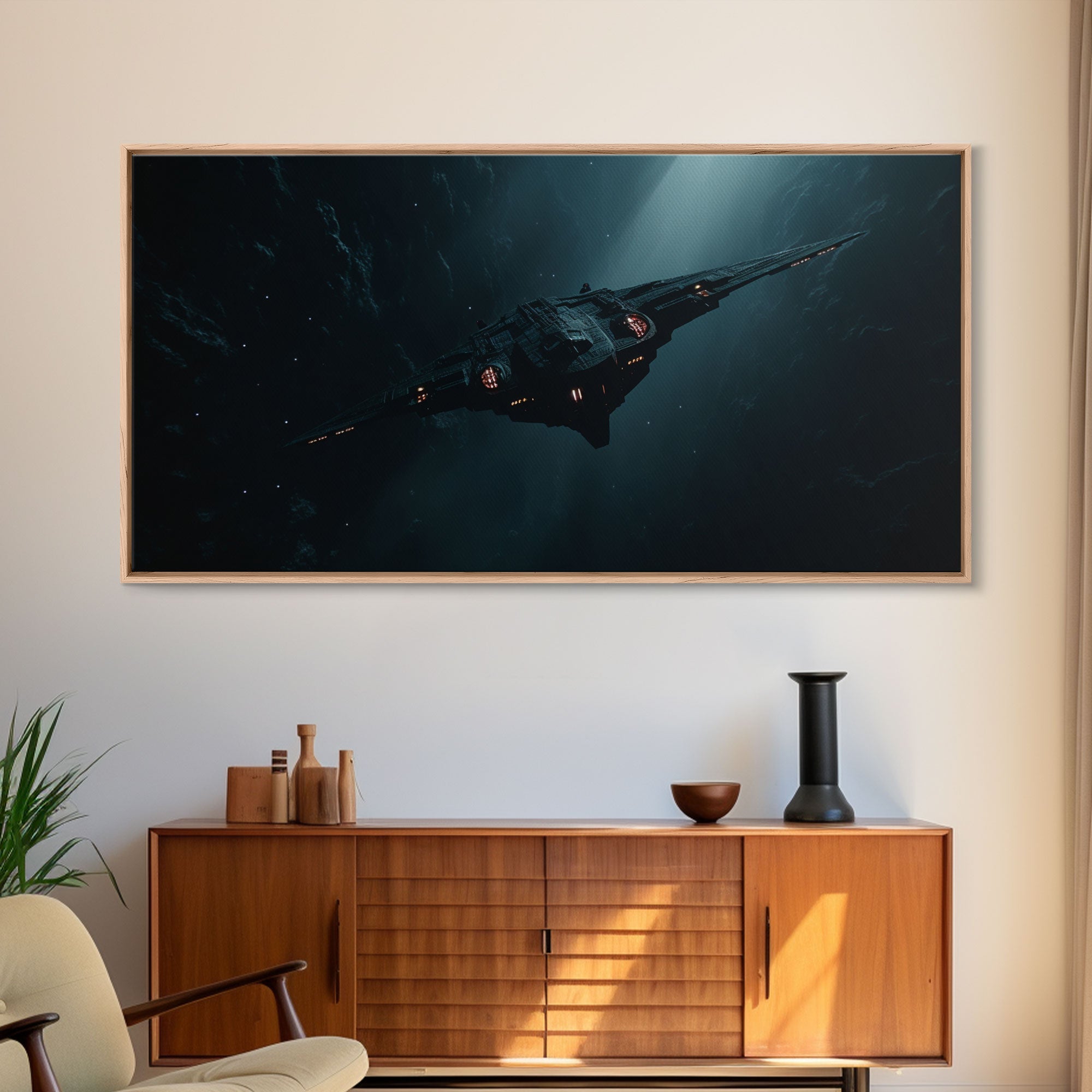 Cool Scifi Wall Art, Scifi Art, Framed Canvas Print, The Space Cruiser, Gull Wing Space Ship, Unique Art, Alien Wall Art