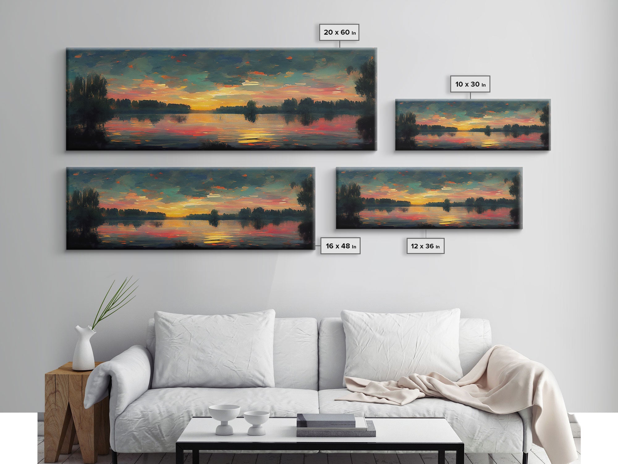 Cool Sunset Over The Lake, Ready To Hang Canvas Print, Panoramic Art, Lakehouse Wall Decor, Lake House Art, Beach House Art