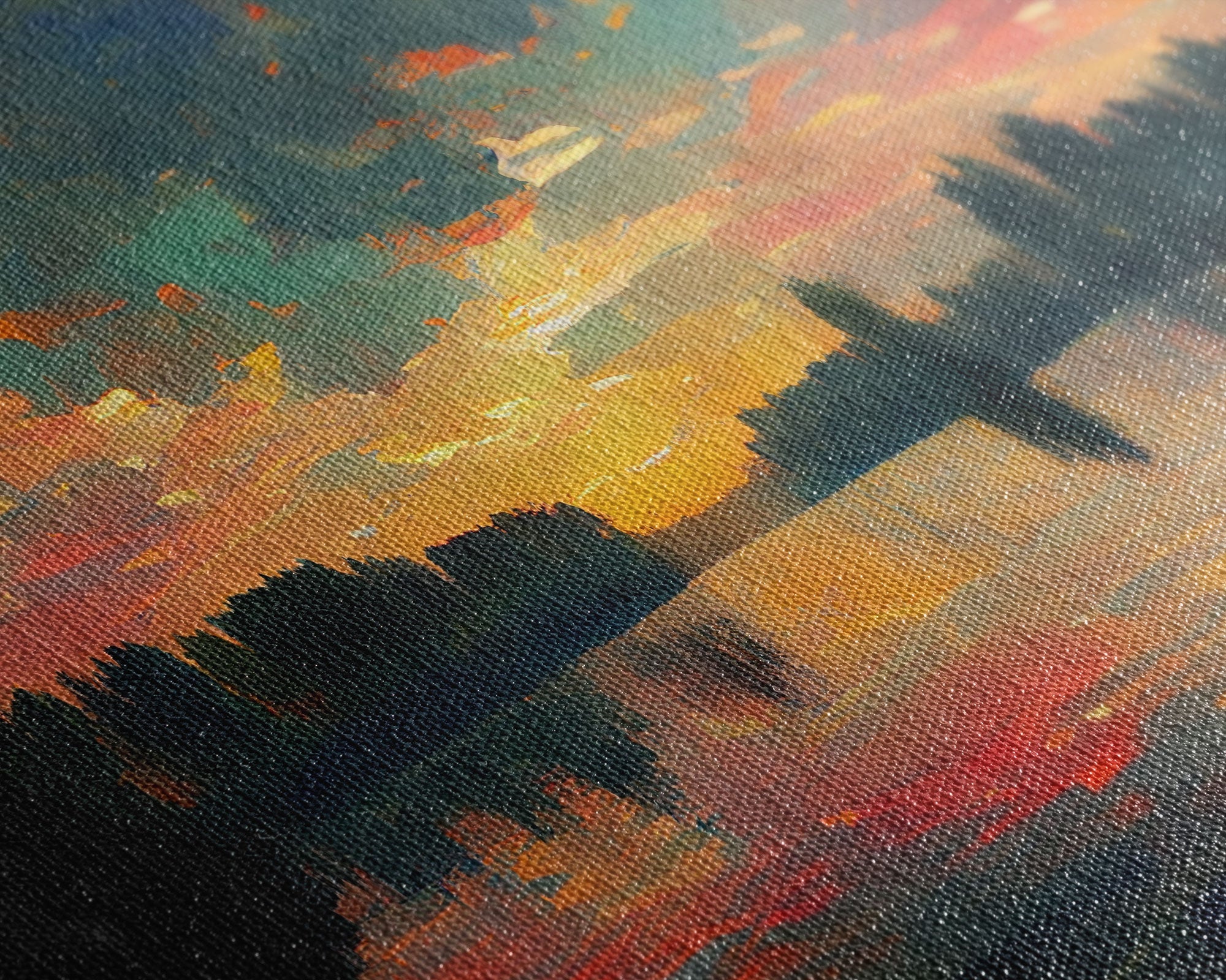 Most of our canvases are made in the USA, with the exception of canvases ordered with the light oak unstained frames, and any large canvases (24x48, 30x60, 16x48 and 20x60) ordered WITH a frame. These are temporarily made in and shipped from Europe, while we try to find a more consistent supplier in the USA.