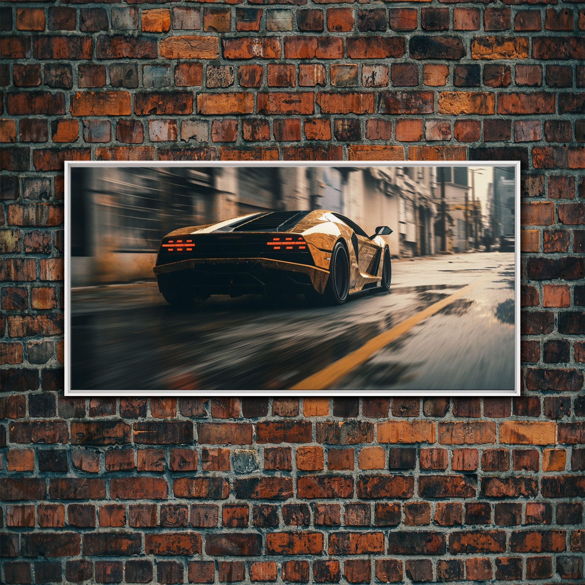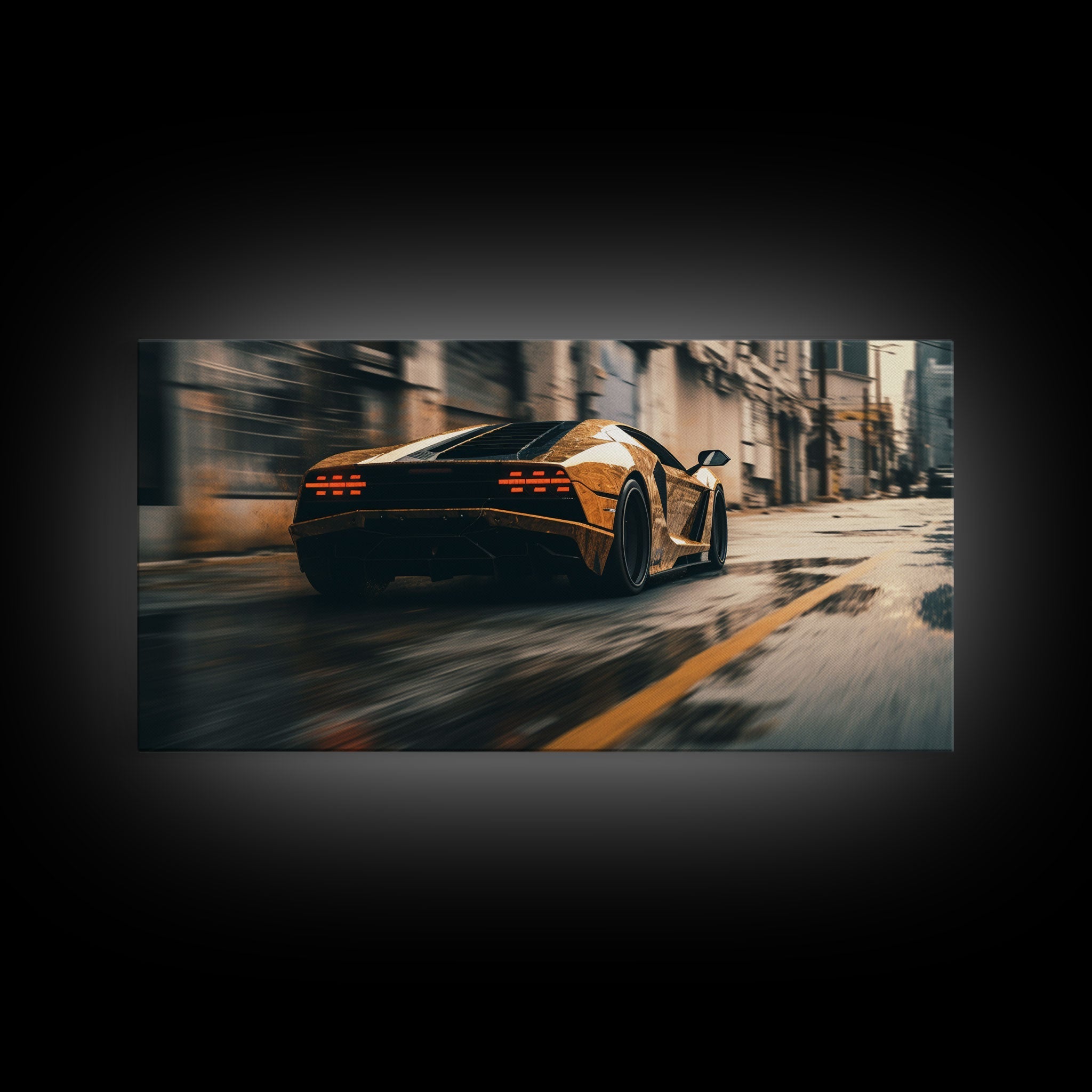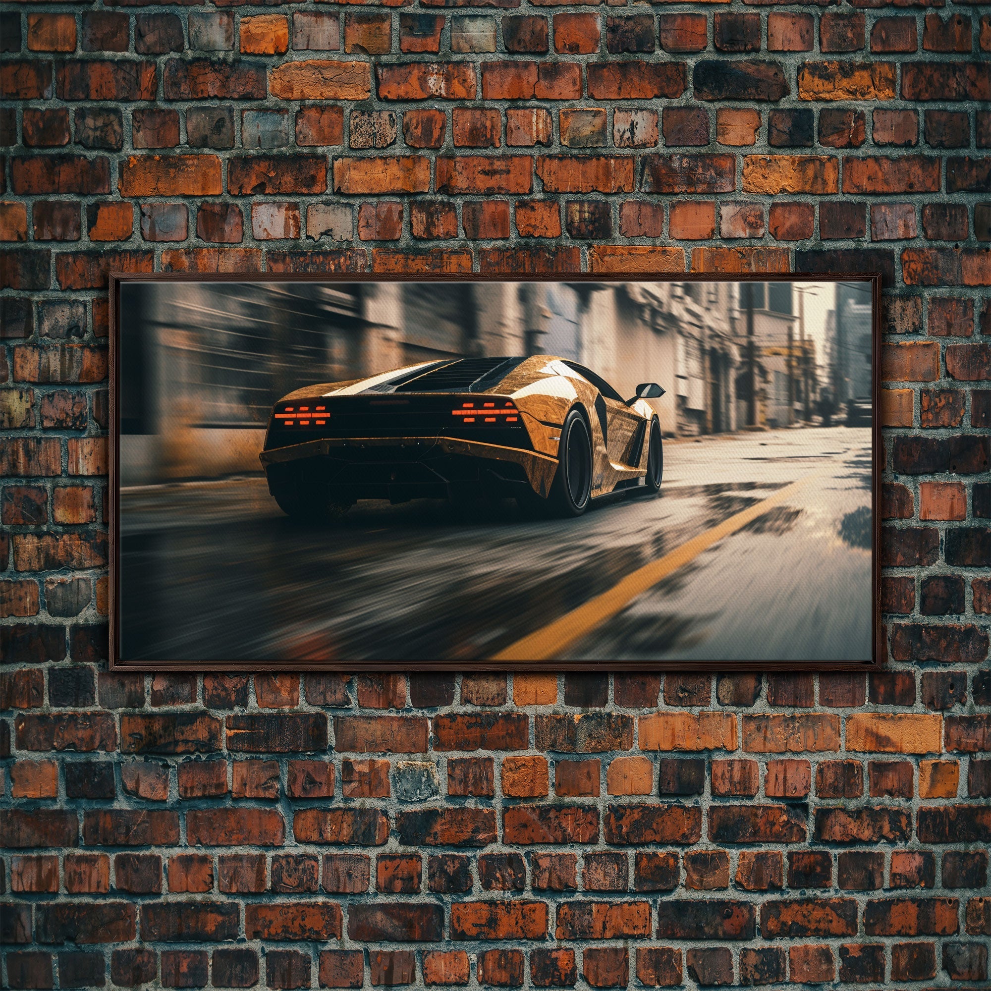 Cool Supercar Art, Framed Canvas Print, Cyberpunk Sportscar Painting, Futuristic Supercar Painting, Man Cave Decor, Gift For Him, Car Guy