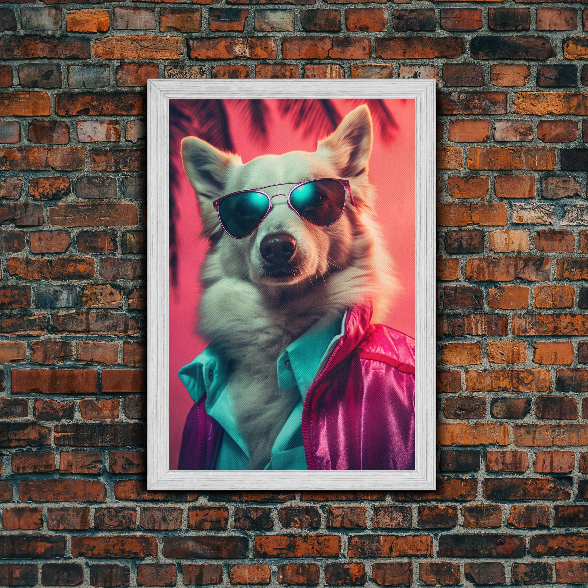 Corgi In Pink Suit Sunglasses Wall Print, Dog Décor, Dog Art Print, Dog Portrait, Framed Wall Art, Framed Canvas, Wall Print, Wall Canvas