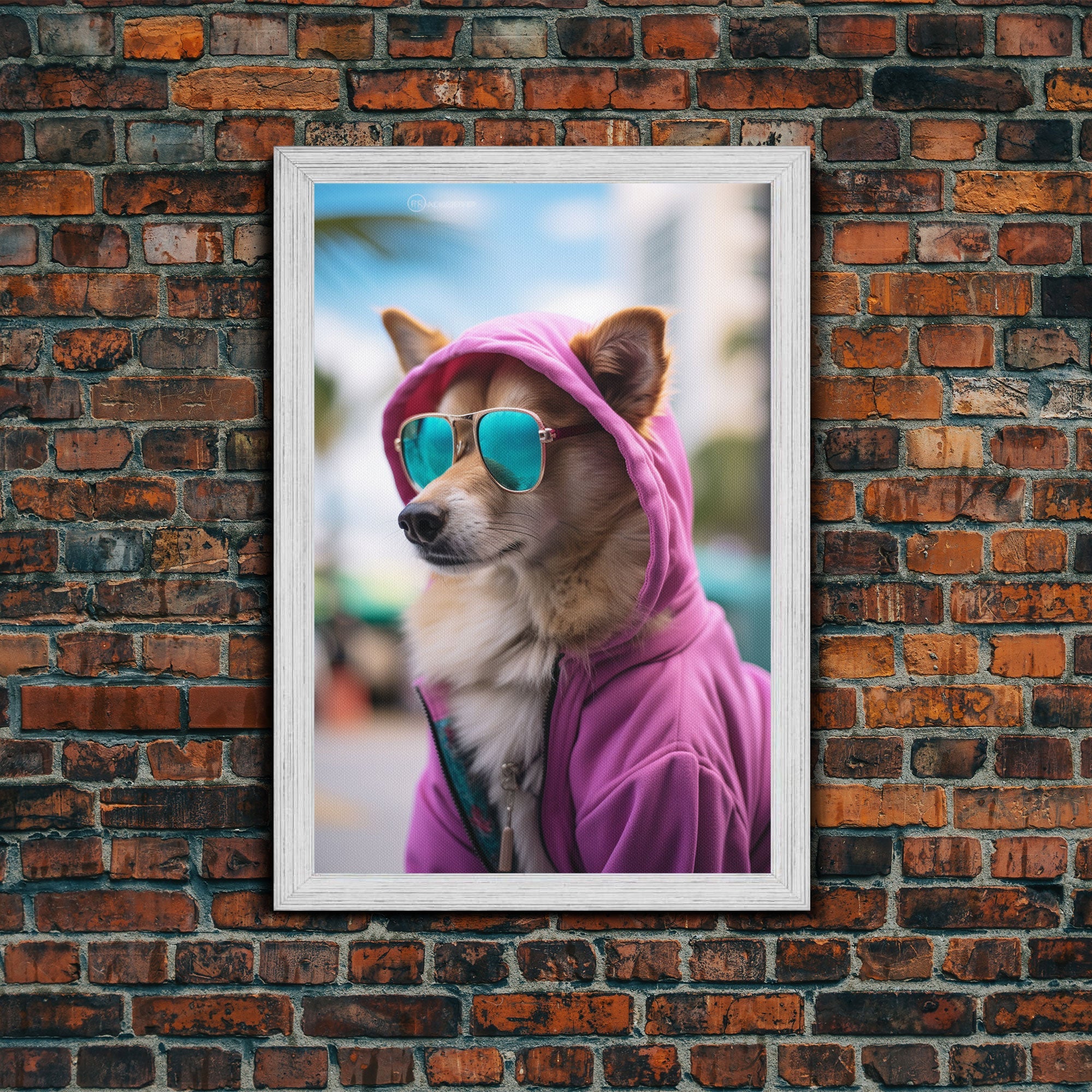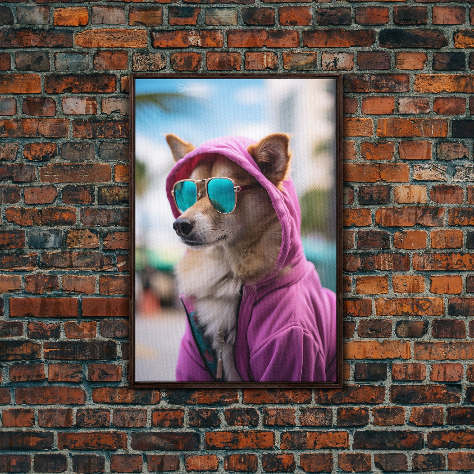 Corgi Pink Hoodie Wall Print, Animal Wall Art, Dog Portrait, Dog Art Print, Framed Wall Art, Framed Canvas, Wall Print, Wall Canvas