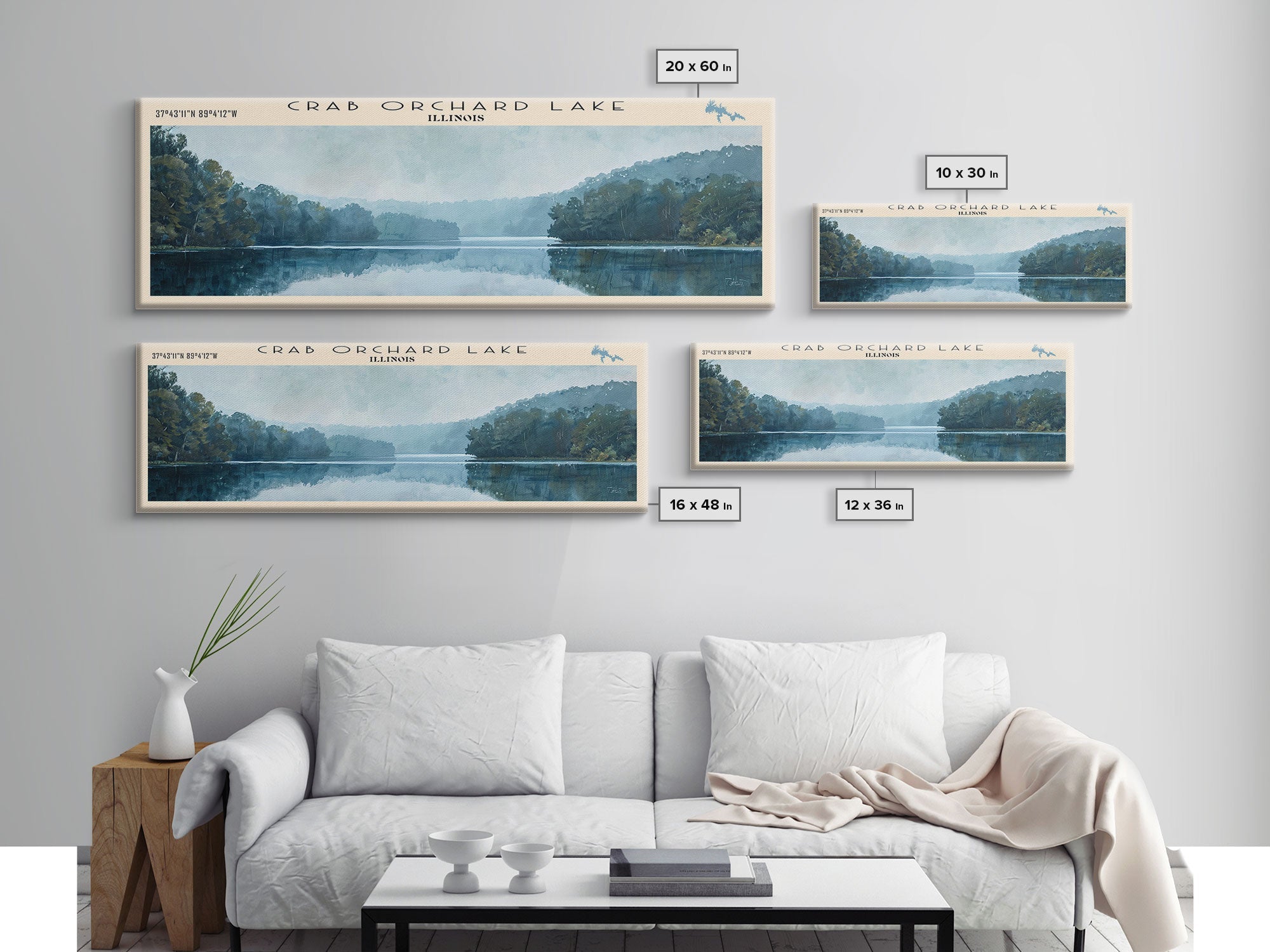 Cormorant Lake Framed Canvas Print, Lake House Decor, Panoramic Wide Art, Travel Poster, Rustic Lake Painting, Home Decor