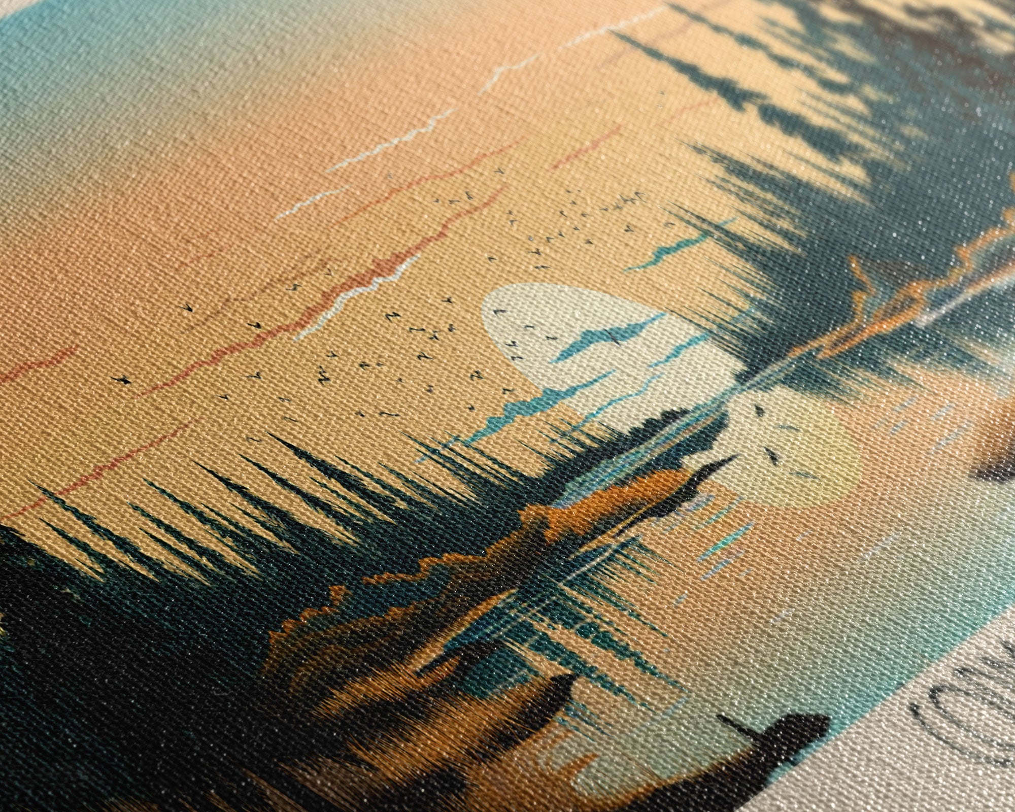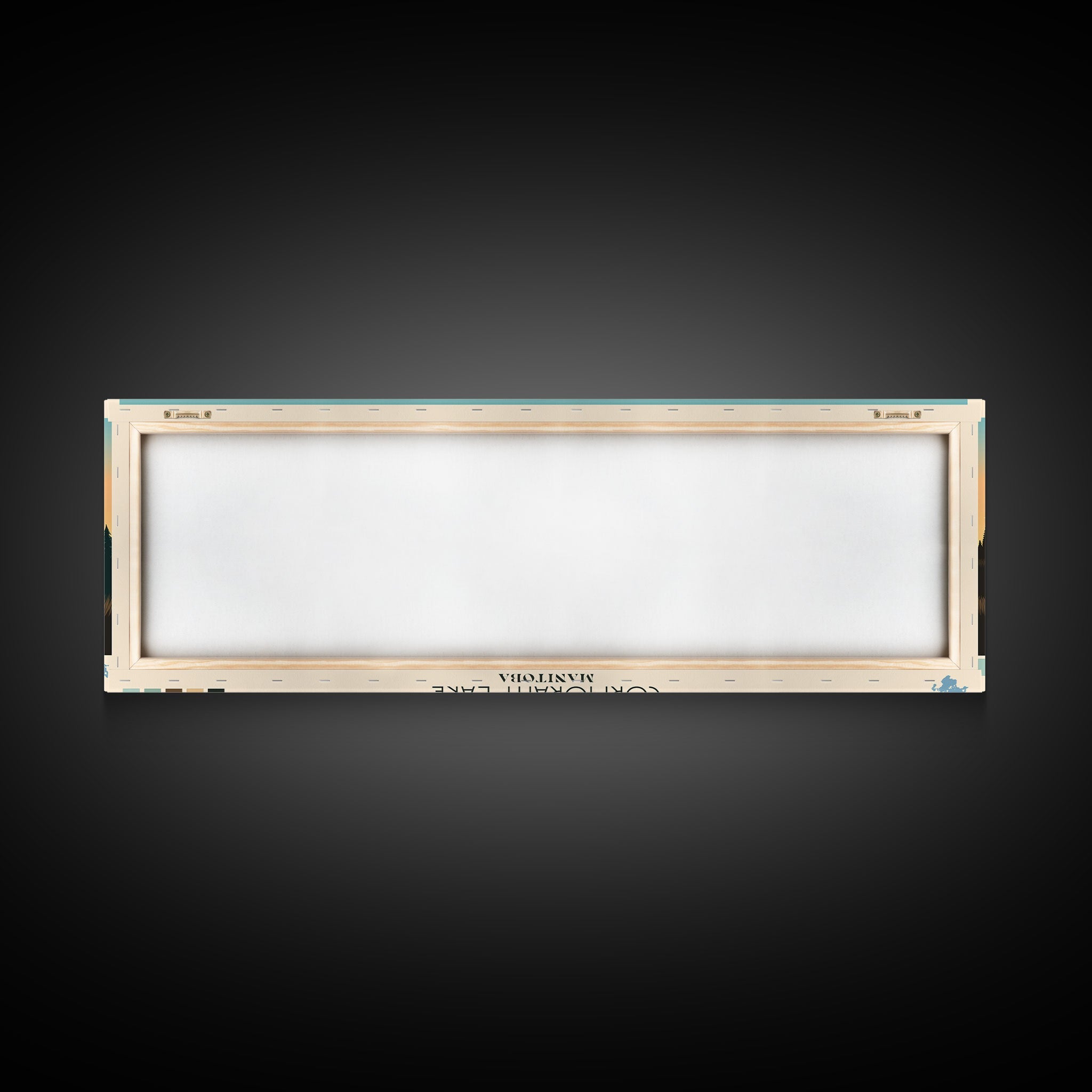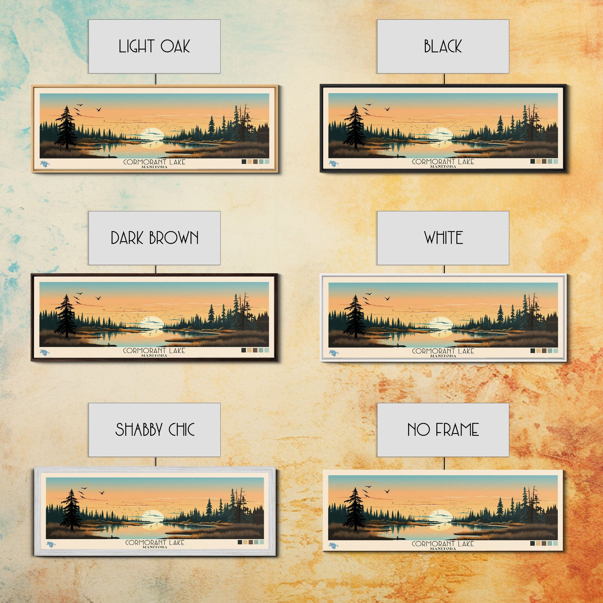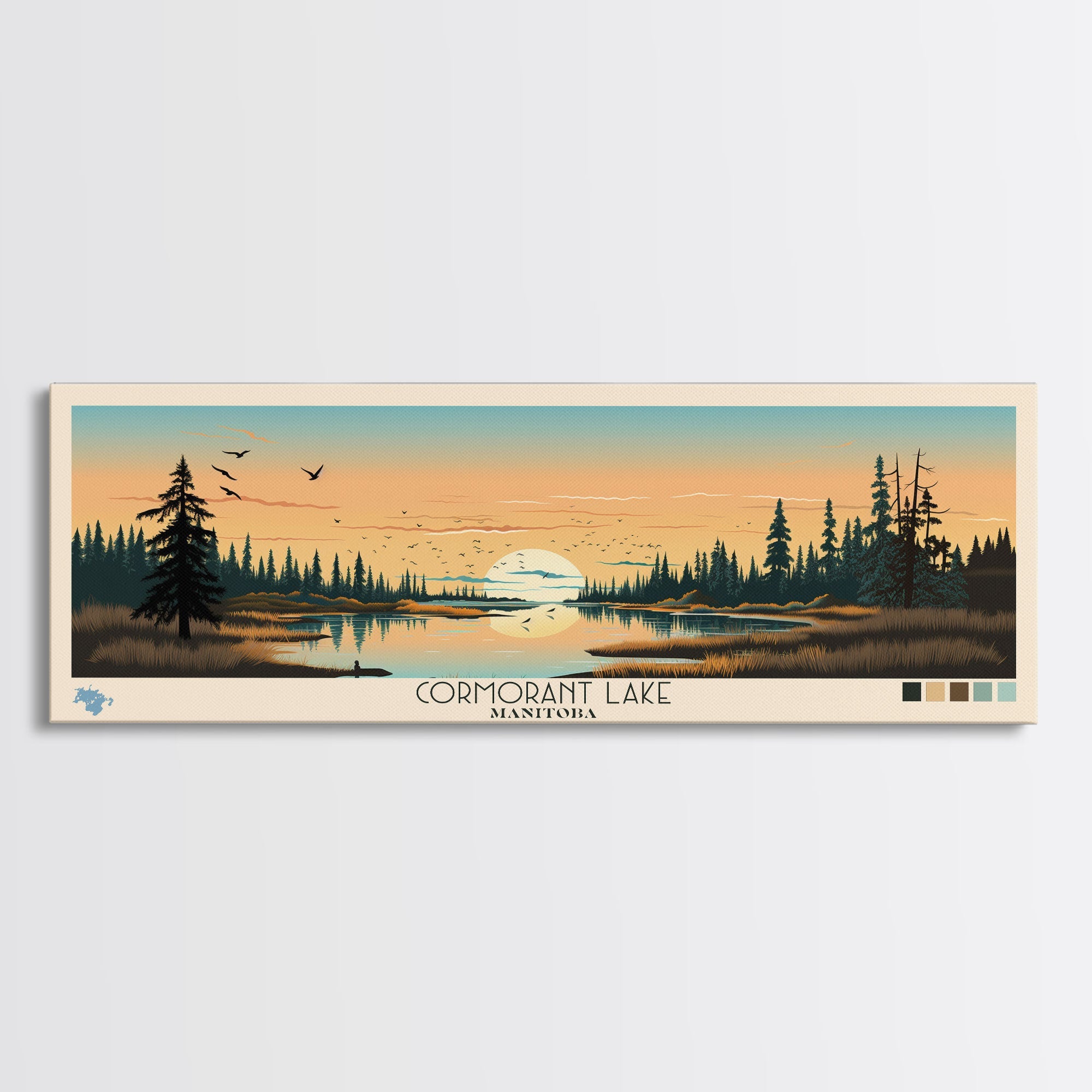 Cormorant Lake Manitoba Framed Canvas Print, Pop Art Panoramic Travel Poster, Midcentury Modern, Wall Art, Scenic Nature Painting, Bedroom Decor, Living Room Art
