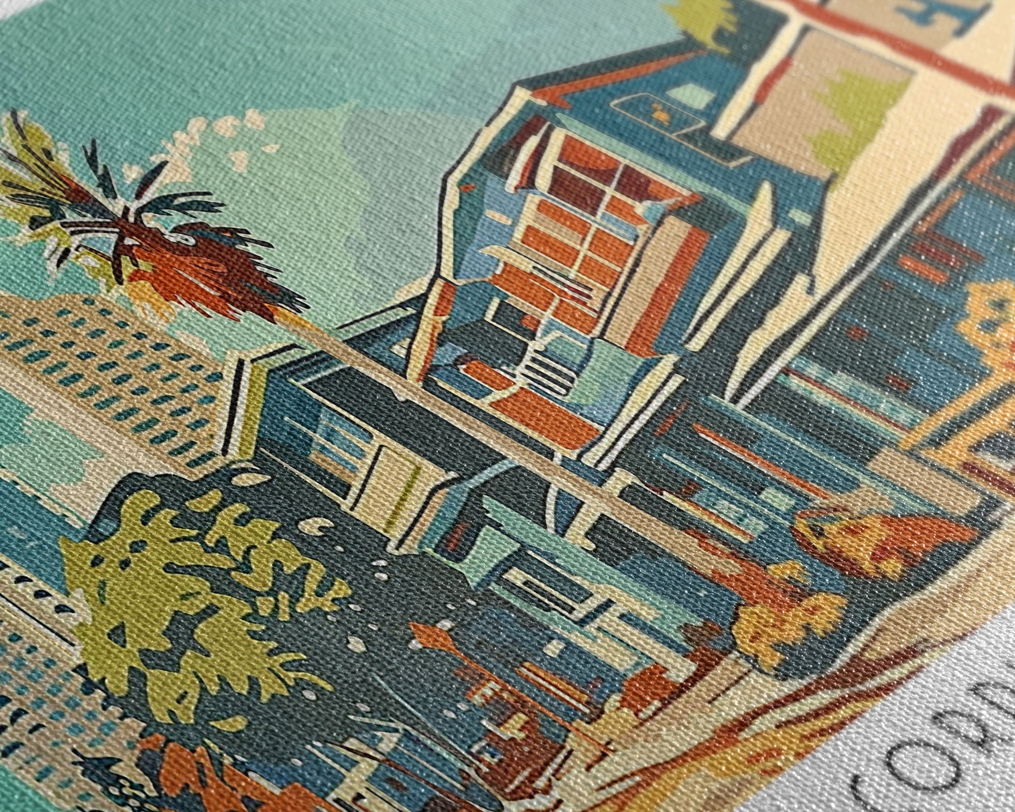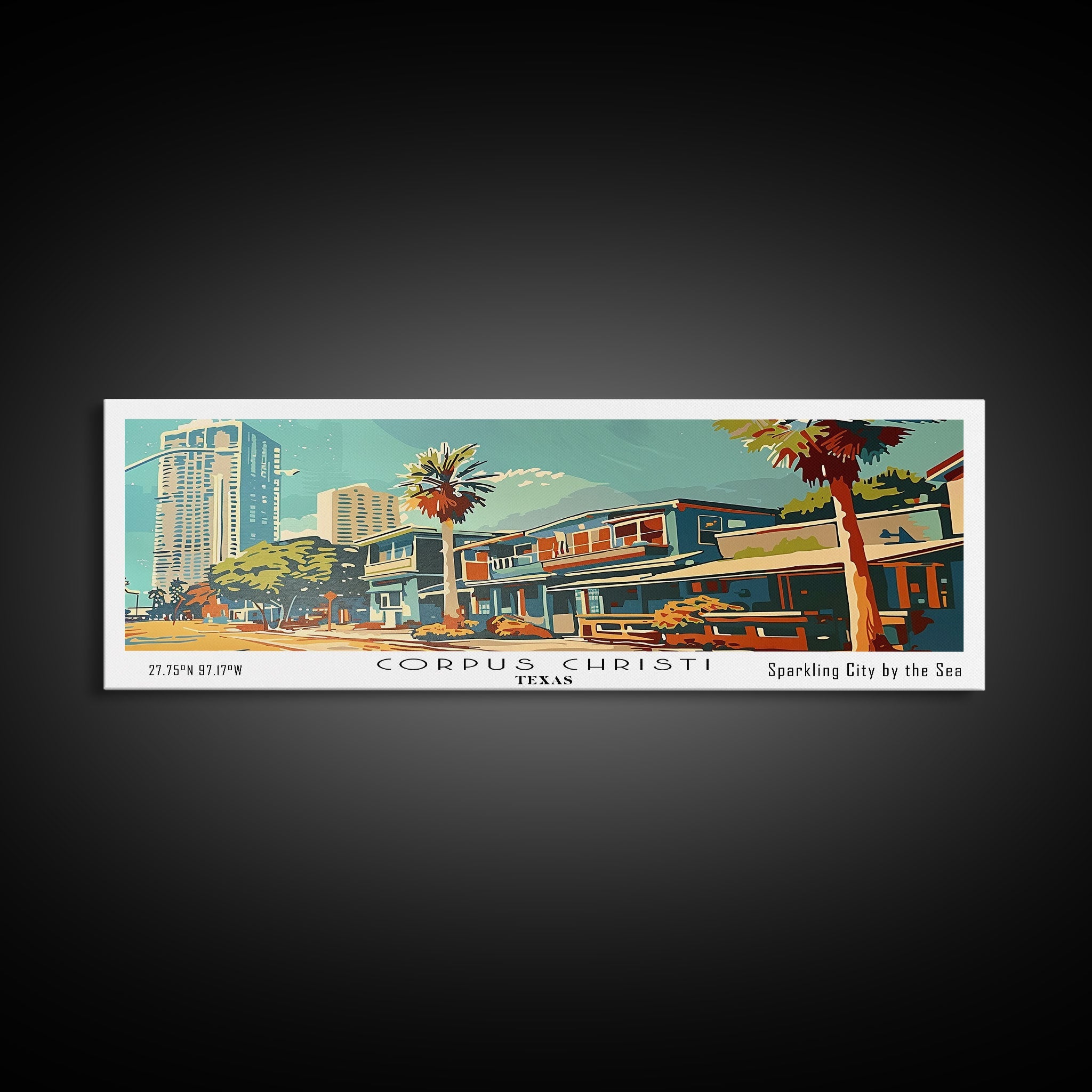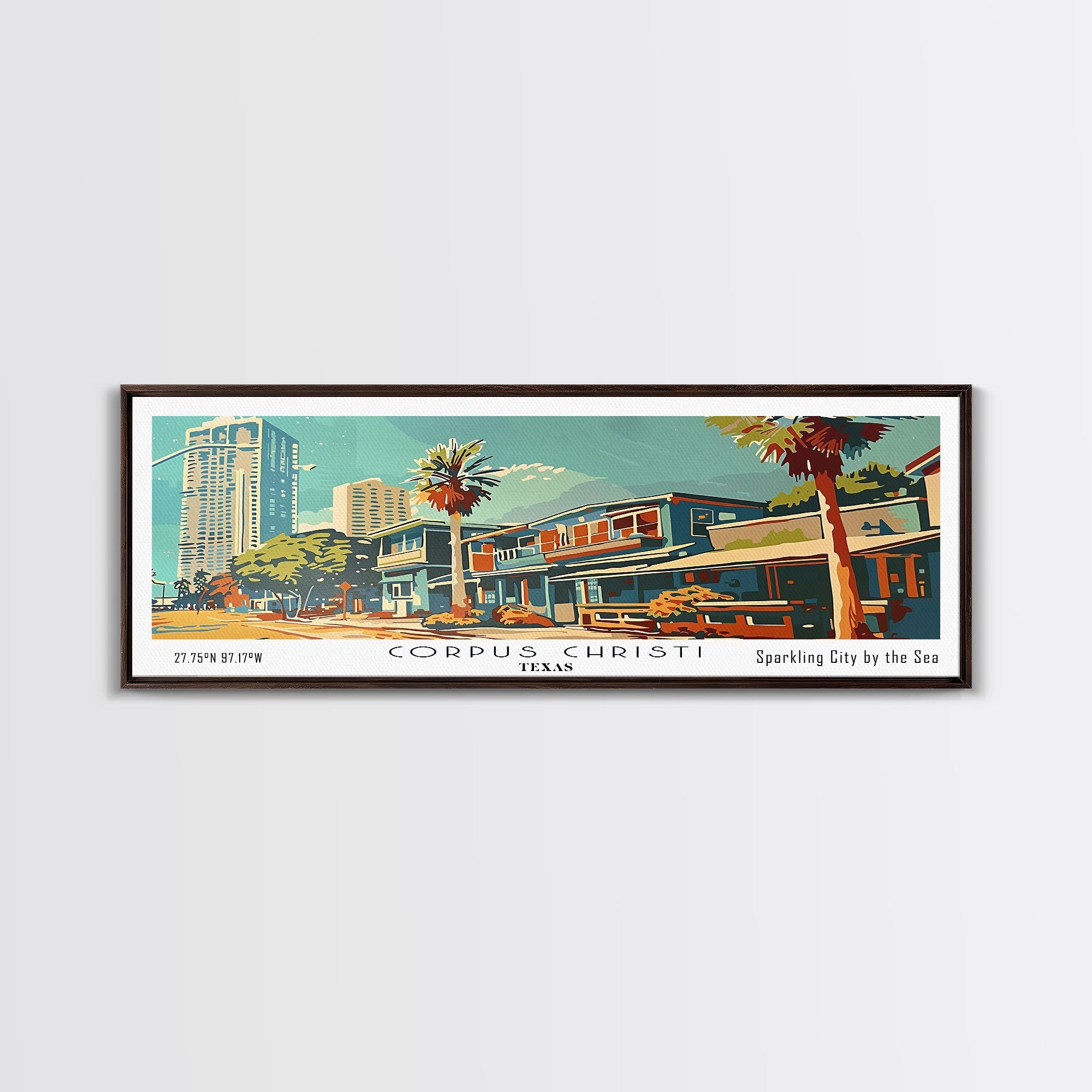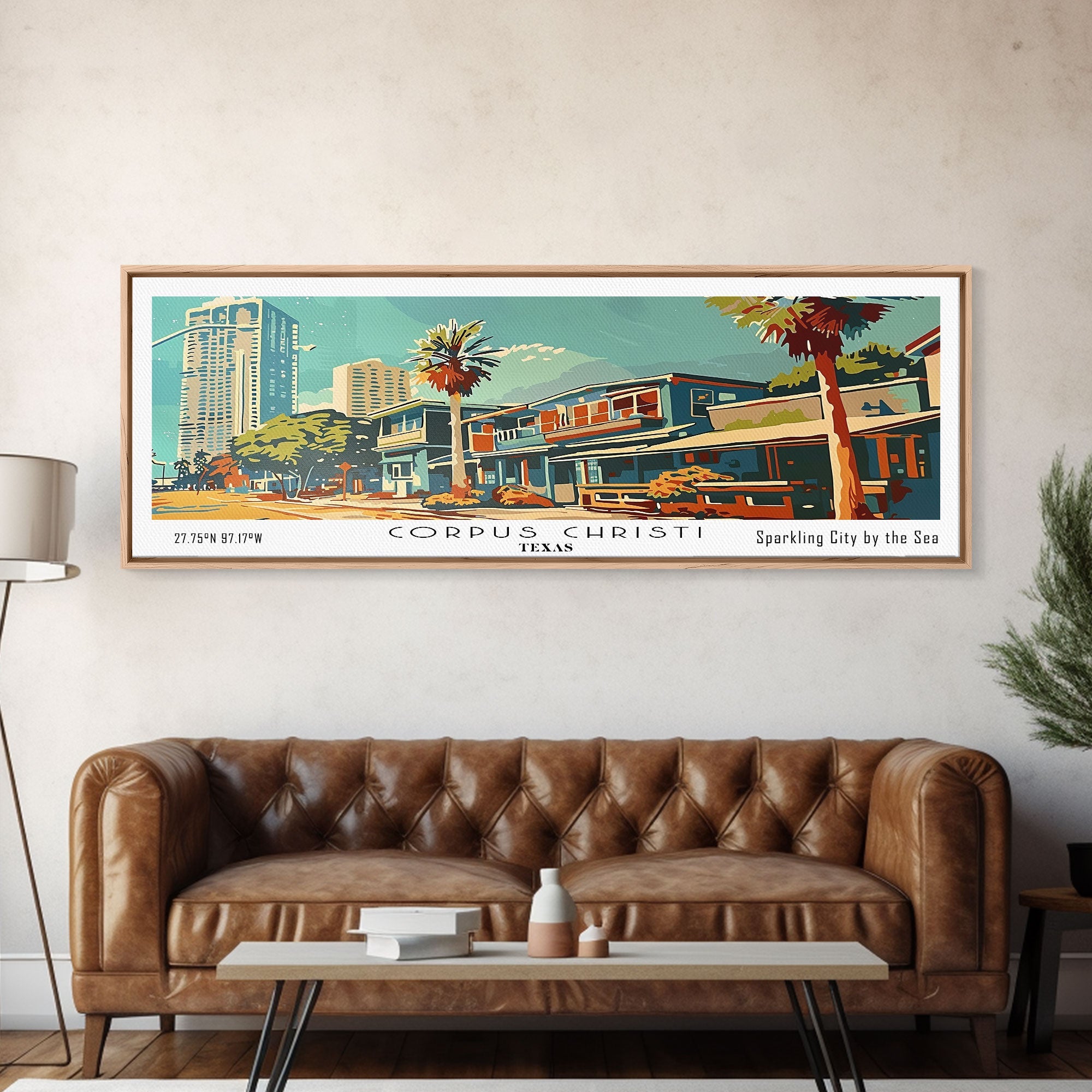Corpus Christi Texas Panoramic Painting, Mid Century Modern Framed Canvas Print, Retro Pop Art Travel Poster, Wall Decor, Home Decor, Wall Hanging