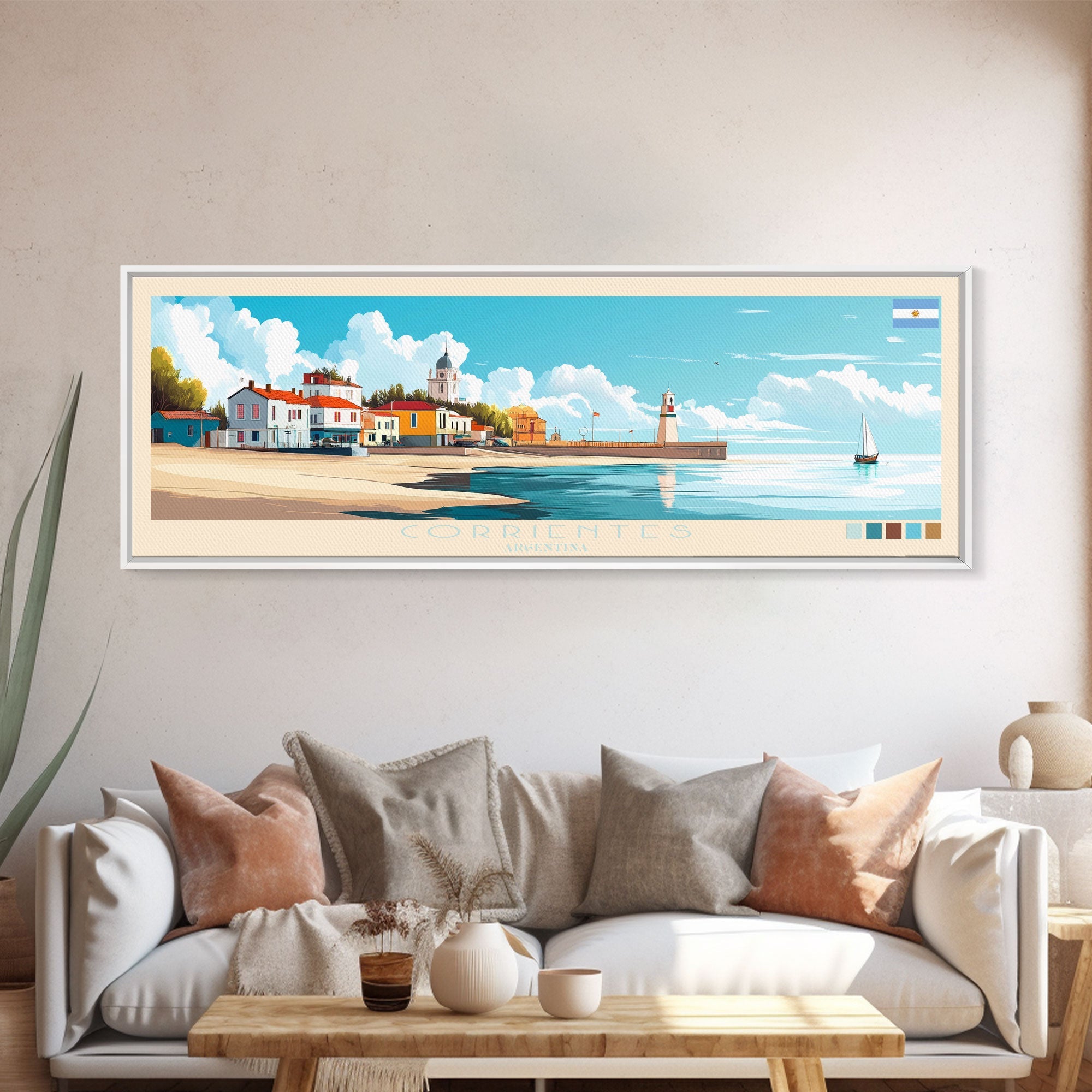 Corrientes, Argentina Travel Poster Panoramic Canvas Print, Corrientes, Argentina Painting, Argentina Art, Corrientes Travel Art, Guest Room Painting