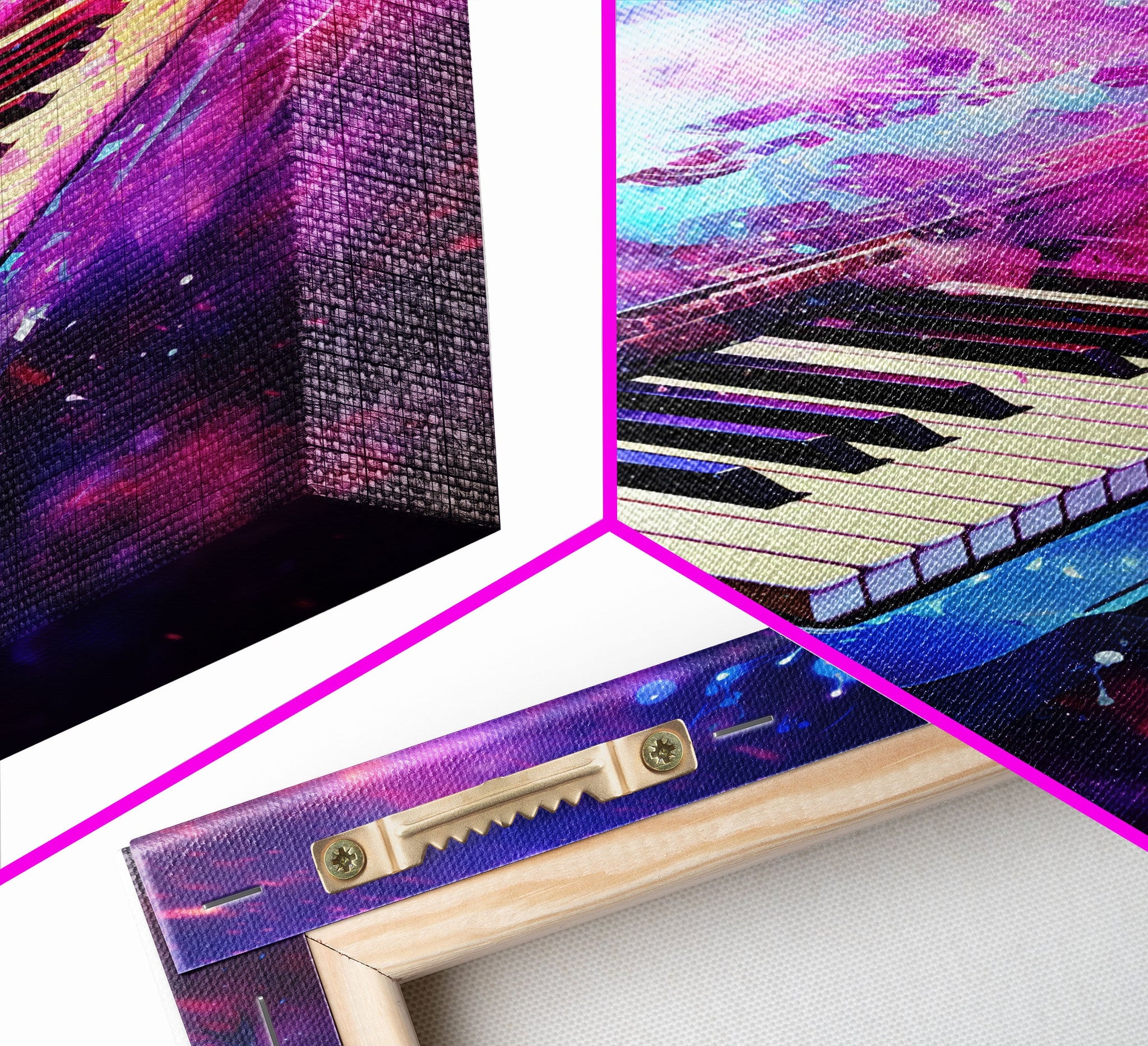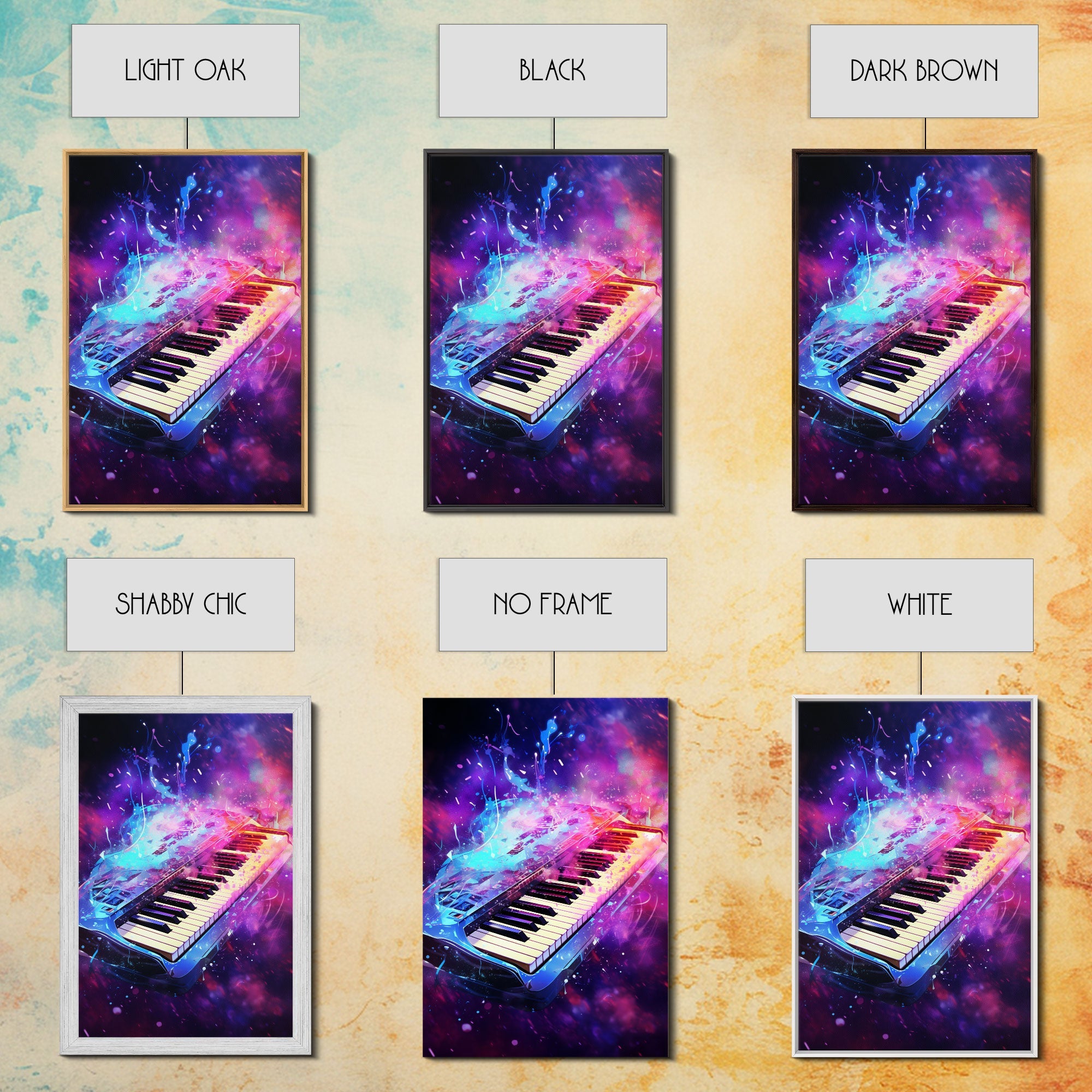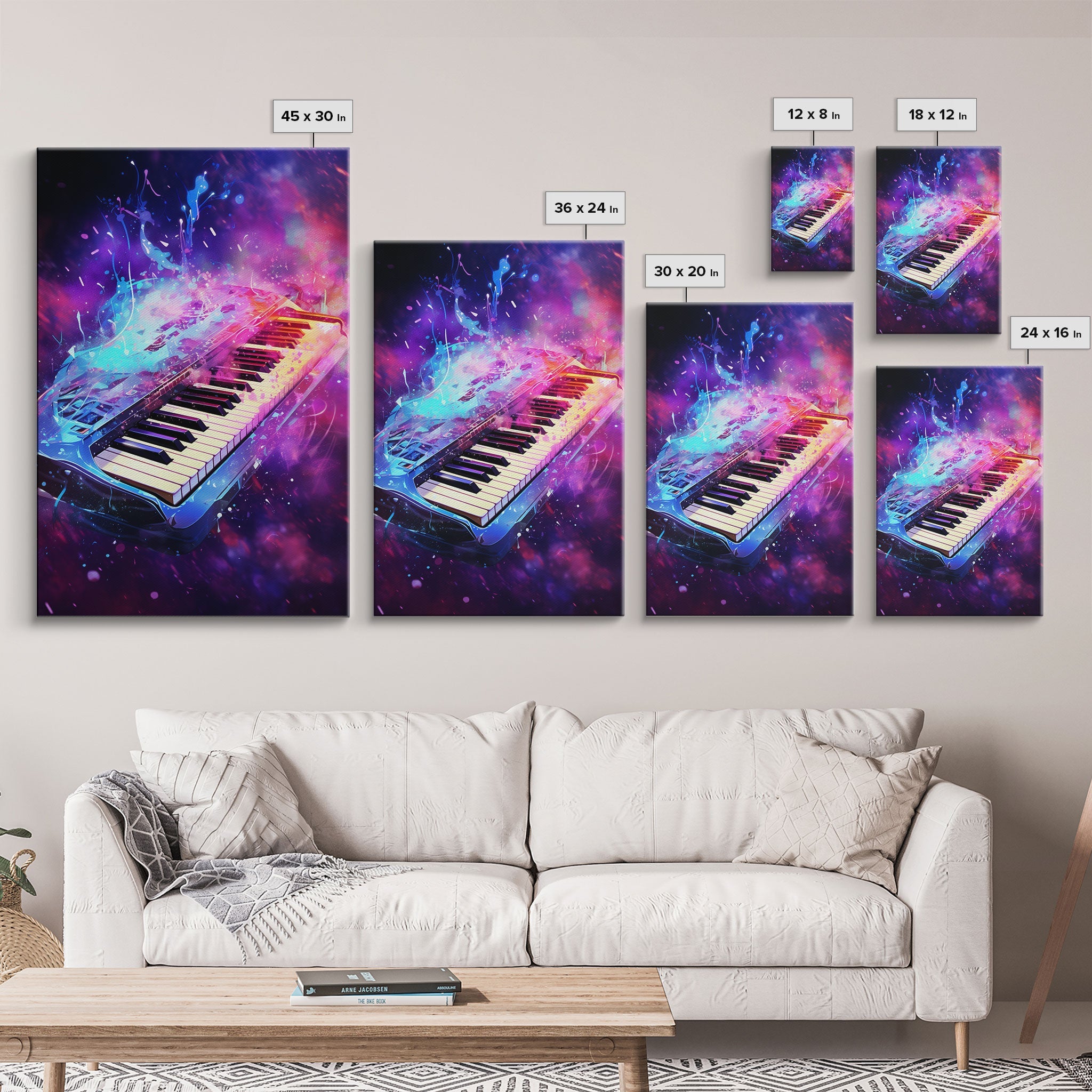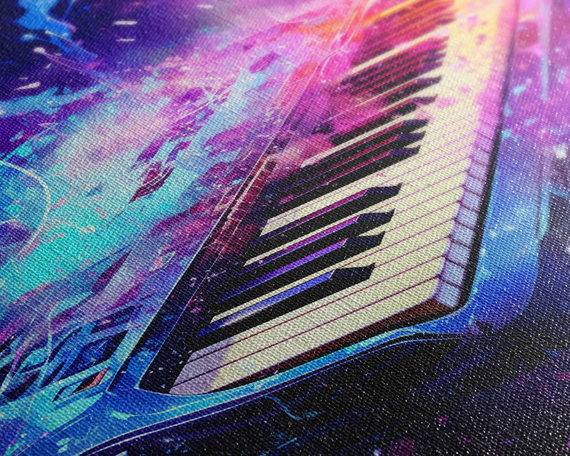 • Cargar imagen en el visor de la galería, Cosmic Keyboard, Galaxy Music Art Framed Canvas Print, Electric Keyboard, Instrument Art, Studio Wall Decor
