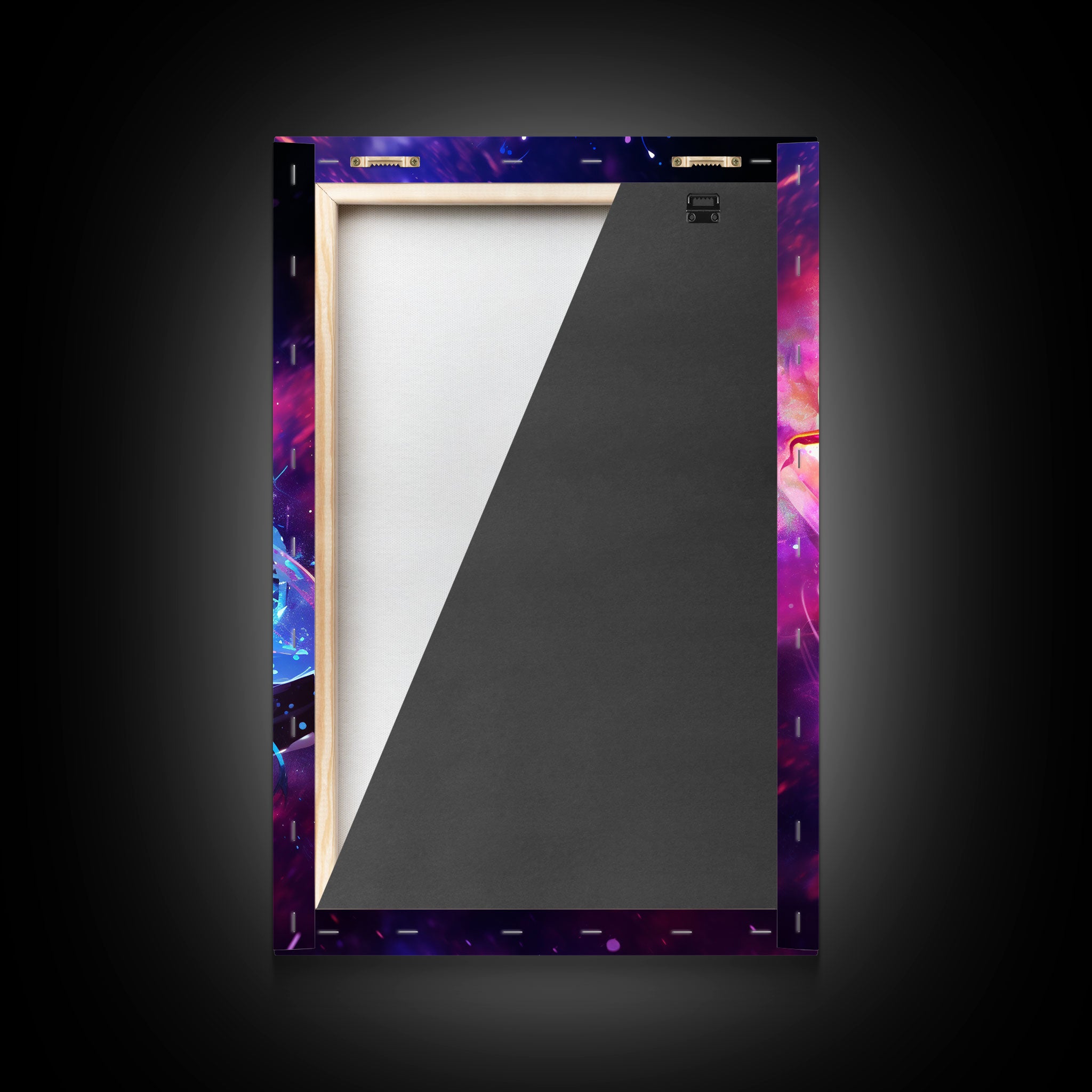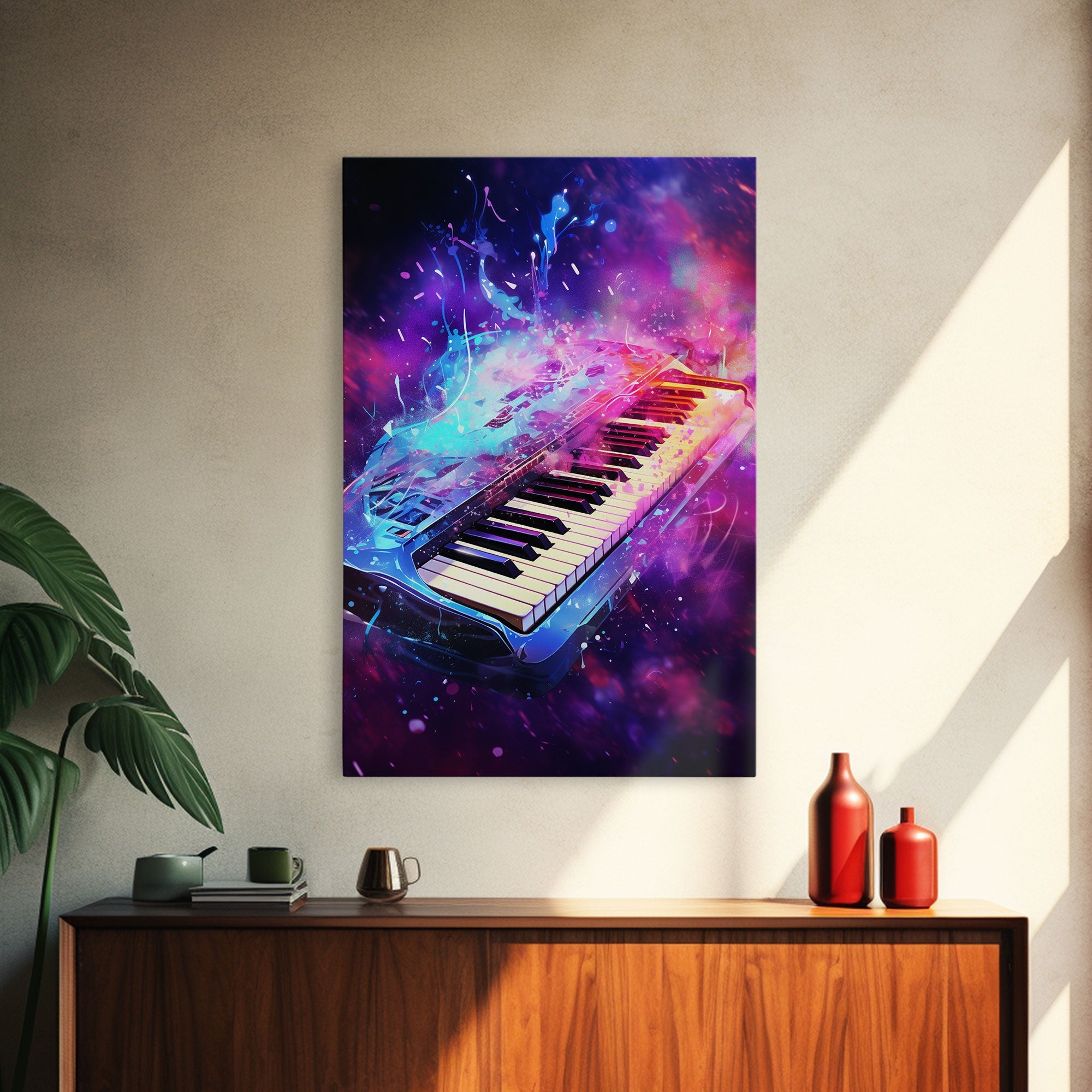 Cosmic Keyboard, Galaxy Music Art Framed Canvas Print, Electric Keyboard, Instrument Art, Studio Wall Decor
