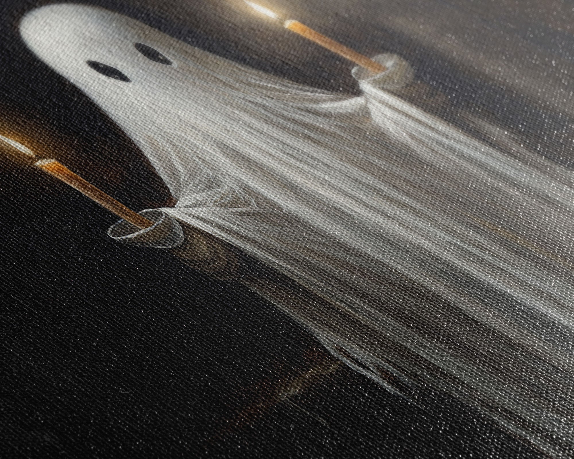 Cute Ghost Holding Candles, Framed Canvas Print, Dark Academia Wall Art, Victorian Oil Painting Style Halloween Wall Art, Ghost Print