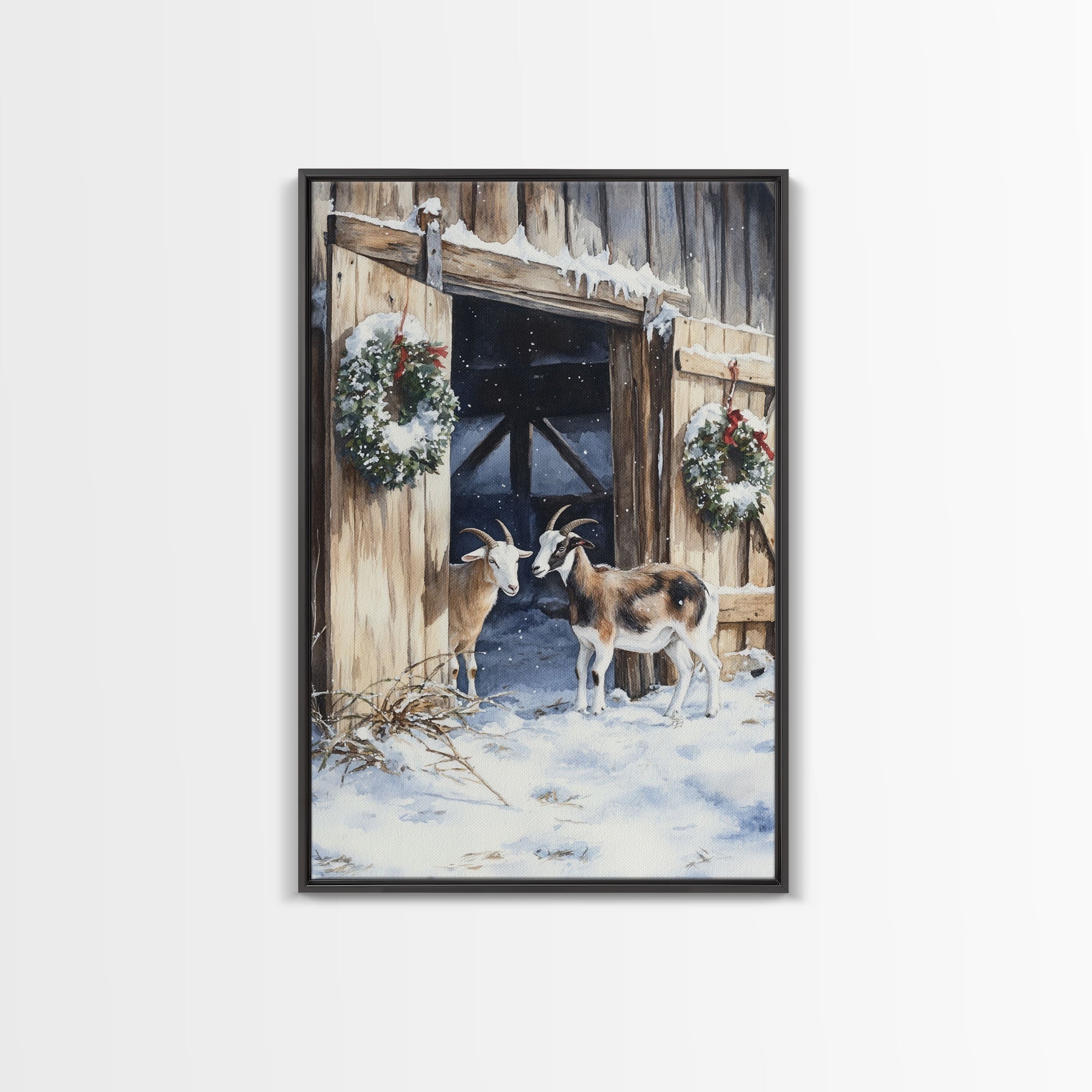 Cute Goats In The Winter, Rustic Farmhouse Wall Art, Holiday Gift, Gallery Wall Decor, Winter Vibes, Christmas 2024 Wall Art