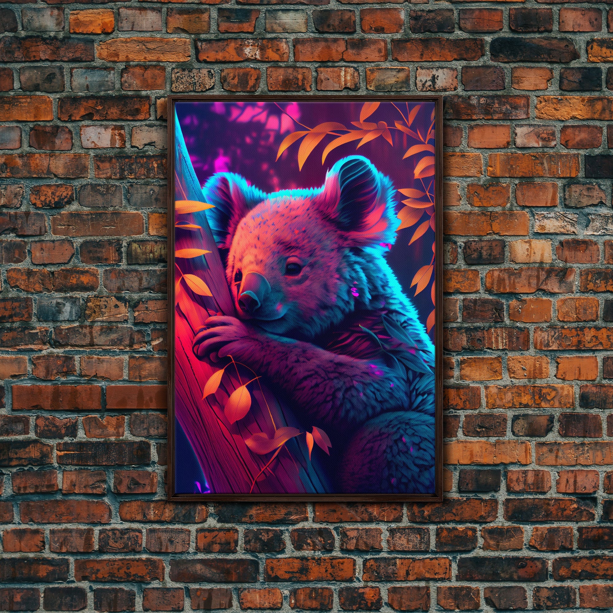 Cute Retro Wave Koala Bear, framed canvas print, Animals of Australia
