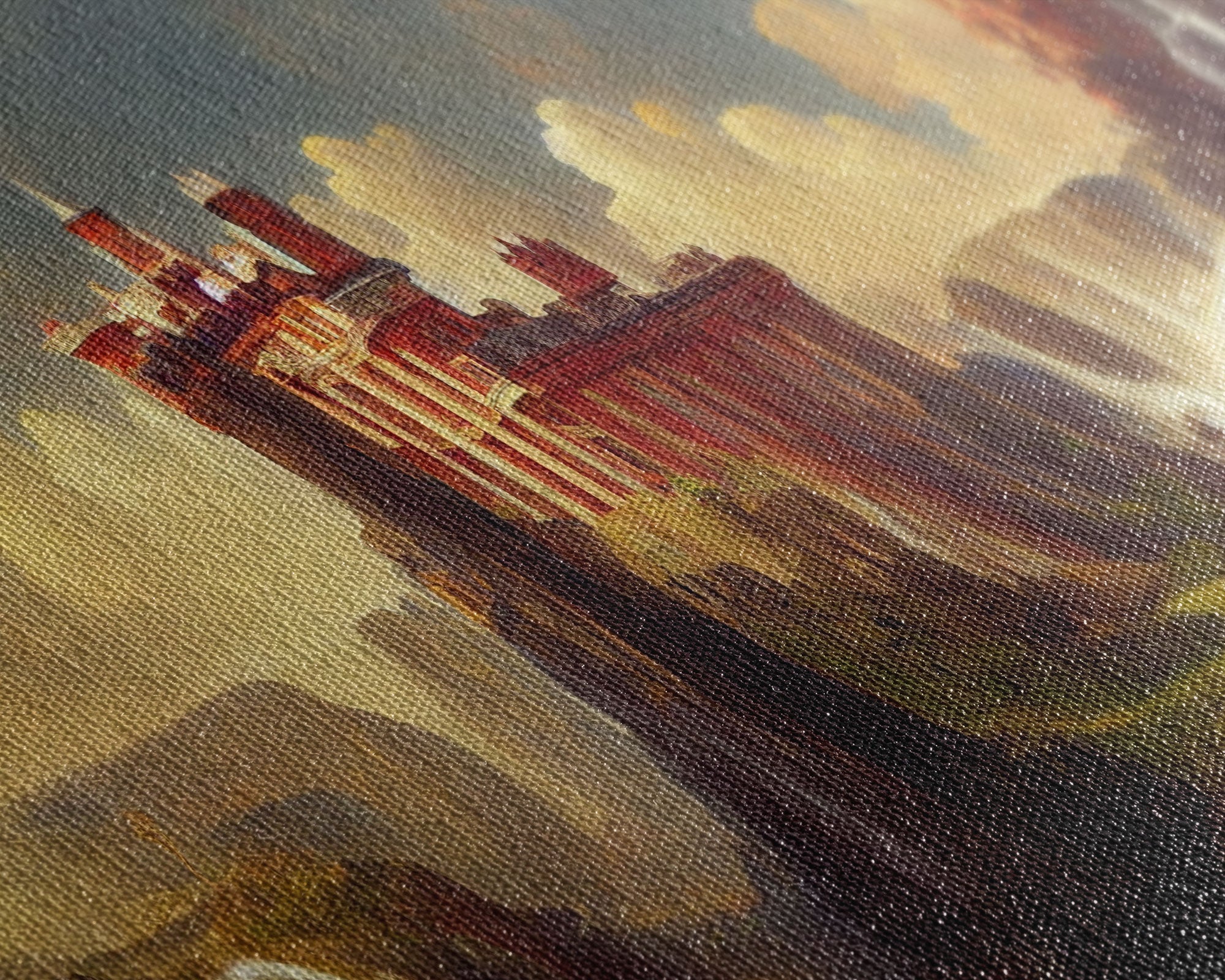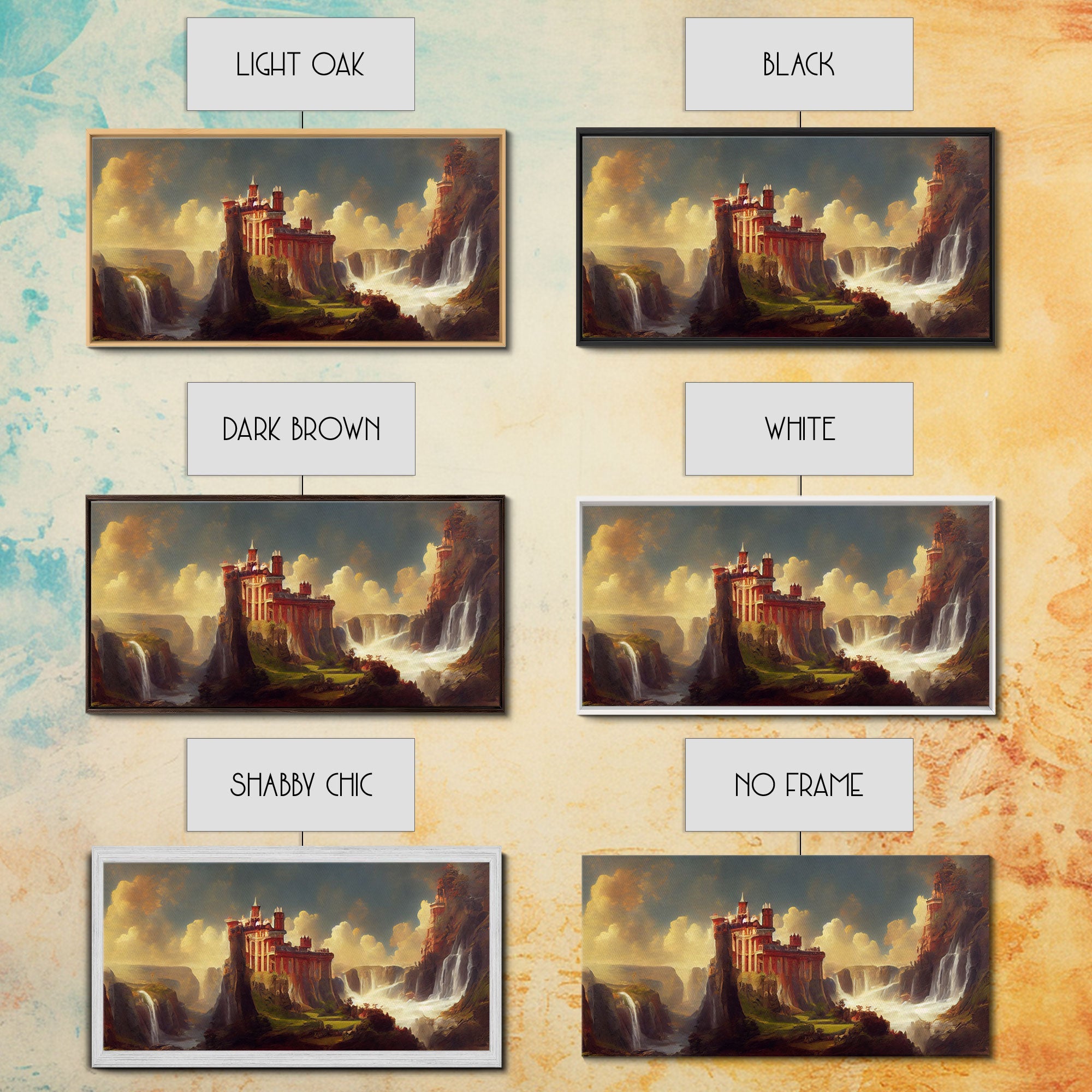 Fantasy wall art, canvas print, castle in the sky, castle atop mountains and waterfalls, watercolor
