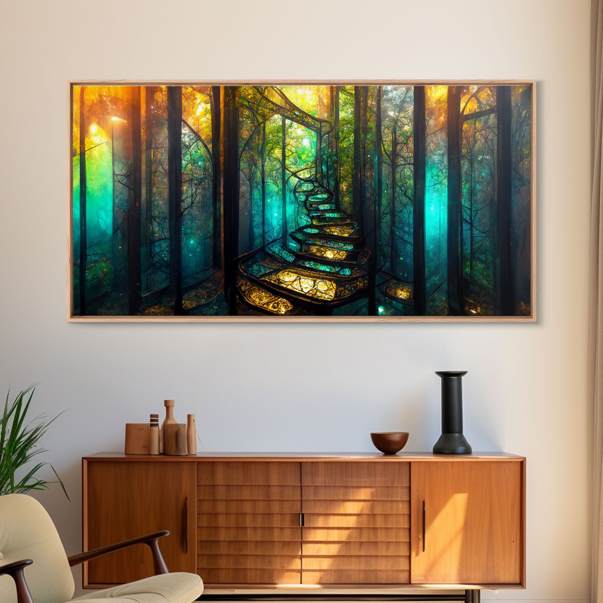 Fantasy wall art, canvas print, magical forest, fantasy landscape art, ready to hang wall art, bioluminescent glowing fantasy wall decor