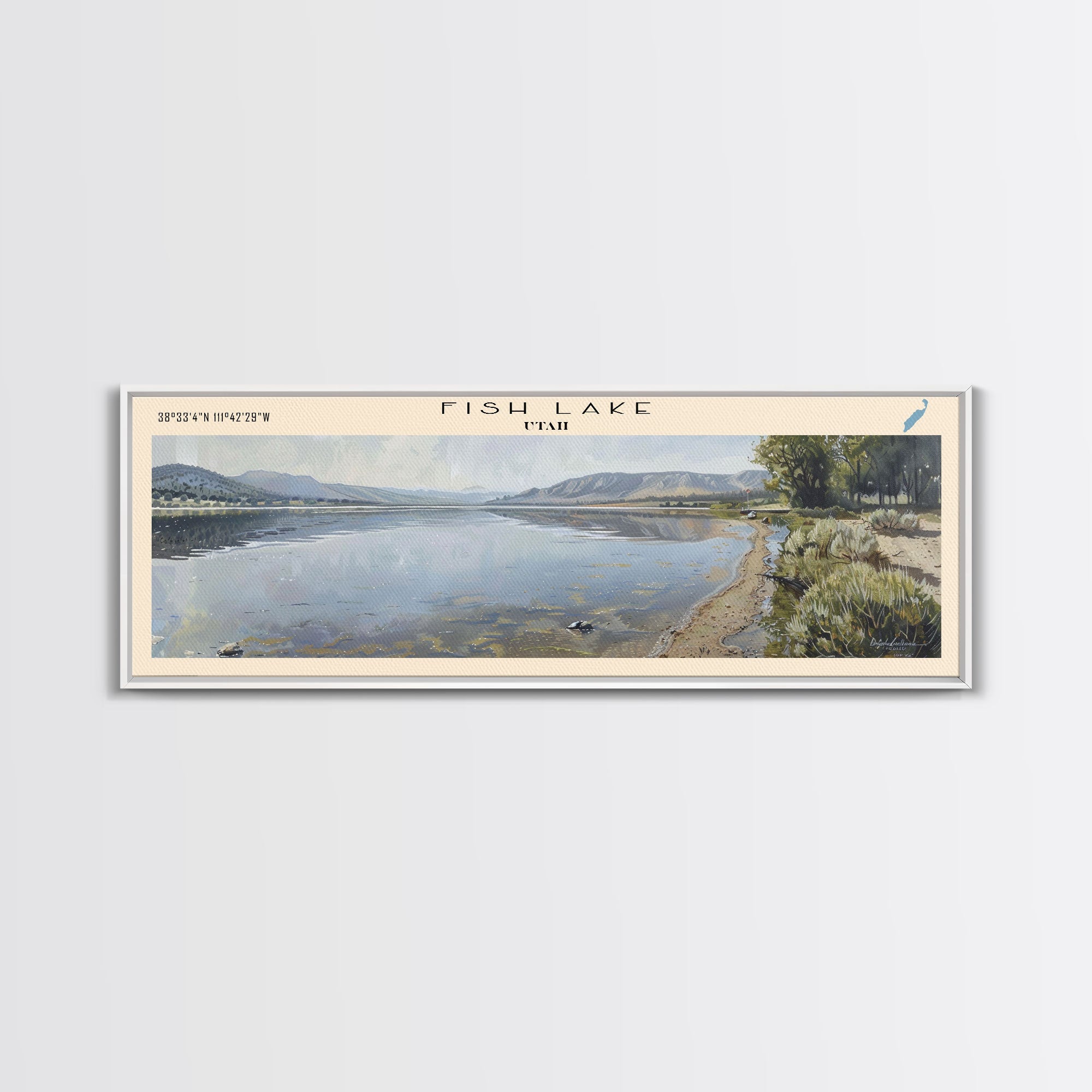 Fish Lake Utah Framed Canvas Print, Panoramic Lake House Decor, Wall Art, Travel Poster, Tranquil Lake Painting, Nature Art