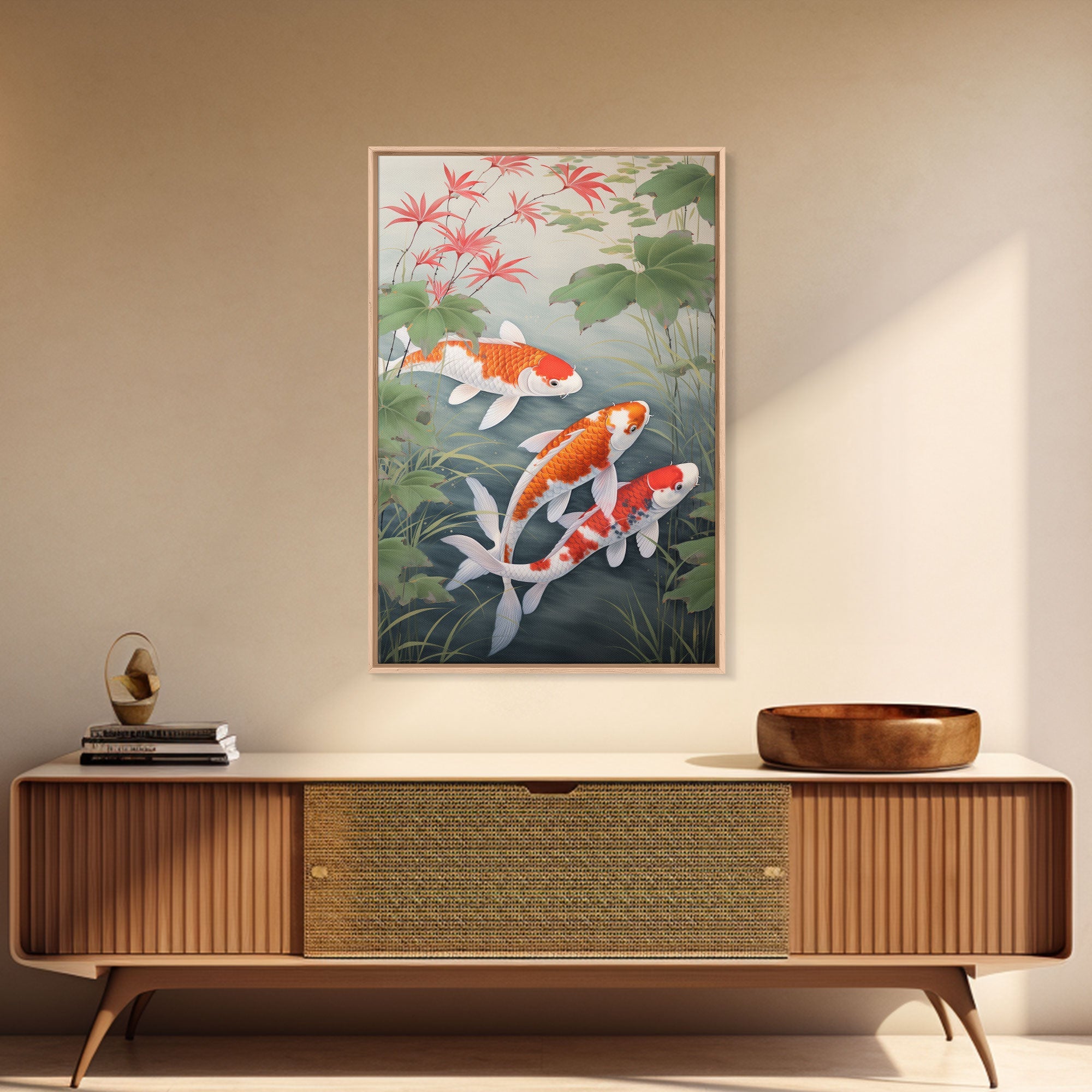 Fish Painting, Zen Wall Art, Koi Fish Wall Art, Fish Wall Art, Canvas Print, Wall Art, Vertical Art, Southern Decor, Office Wall Decor