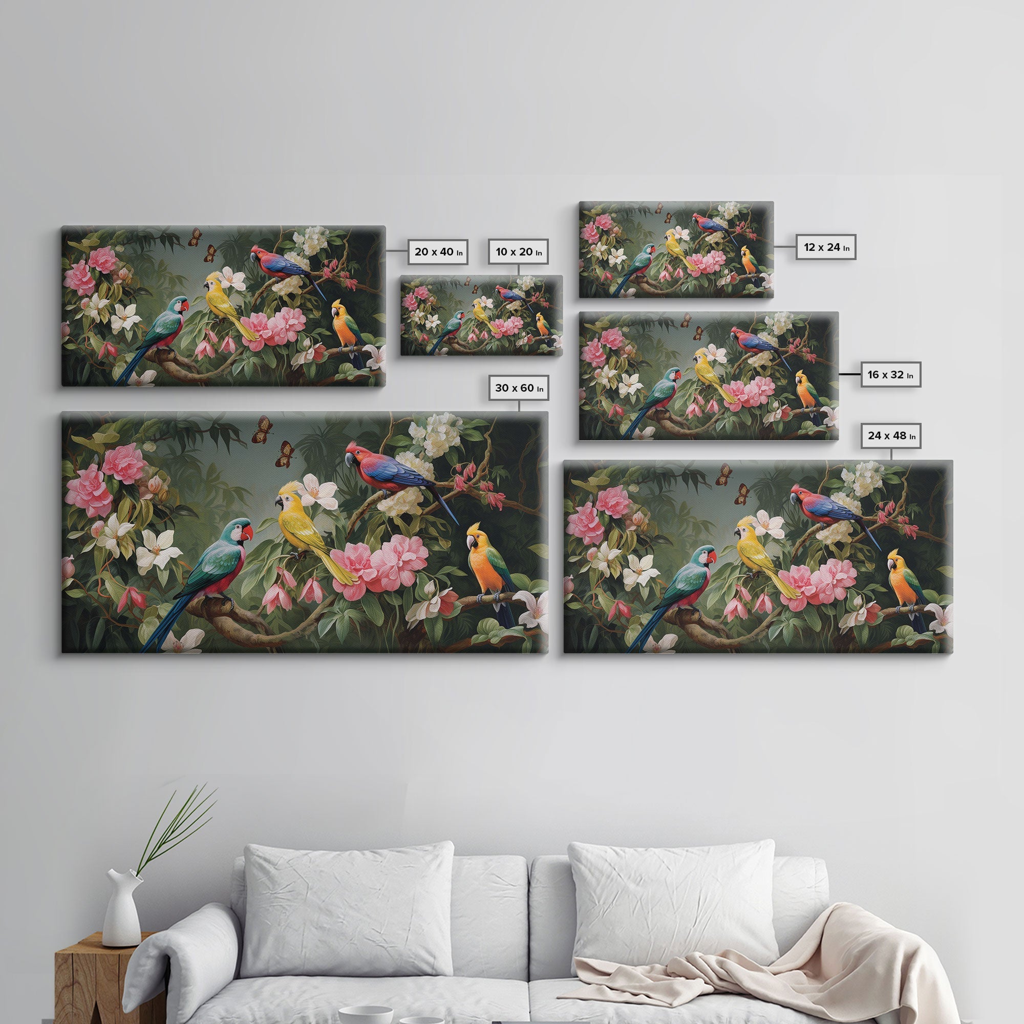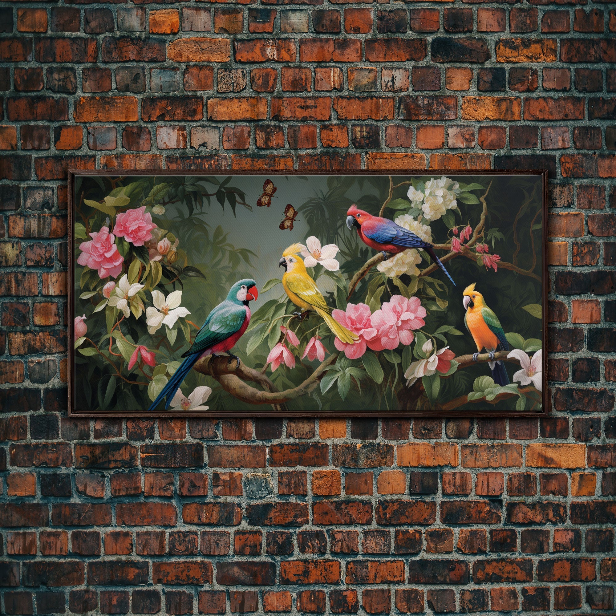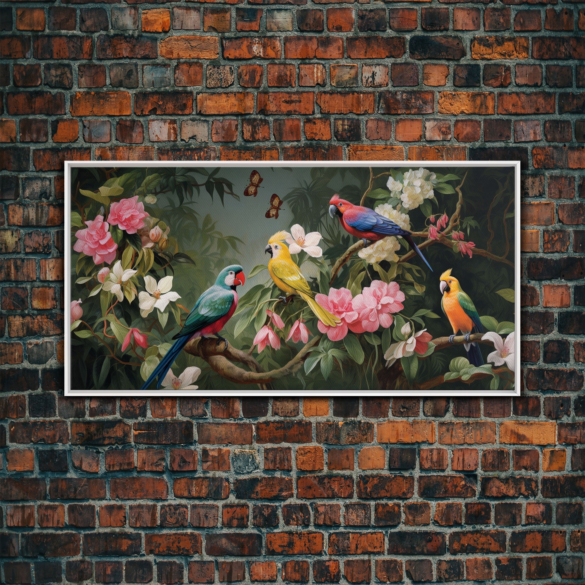 Flowers Wall Art, Animal Wall Art, Bird Art Print, Parrot Painting, Panoramic Art, Wall Art, Canvas Art, Landscape Art, Client Gift, Office