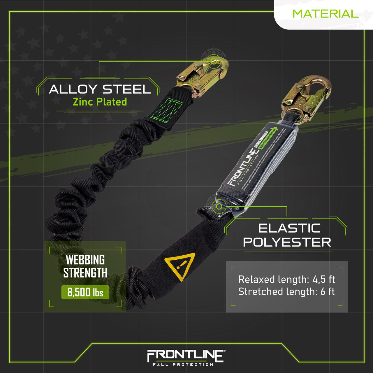 Frontline LES61S-US Patriot 6' Single Leg Elastic Lanyard with Snaphooks - Made in USA