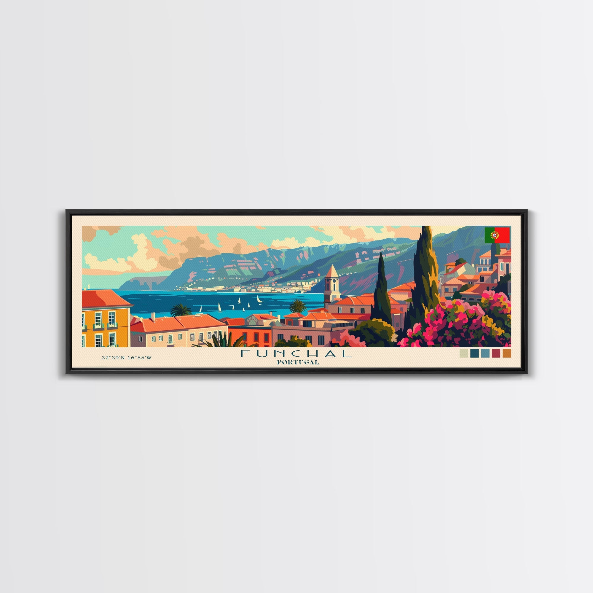 Funchal Portugal Travel Print Wall Art, Panoramic City Art, Travel Art, Wall Decor, Vacation Gift, Framed Canvas Print Or Metal Art