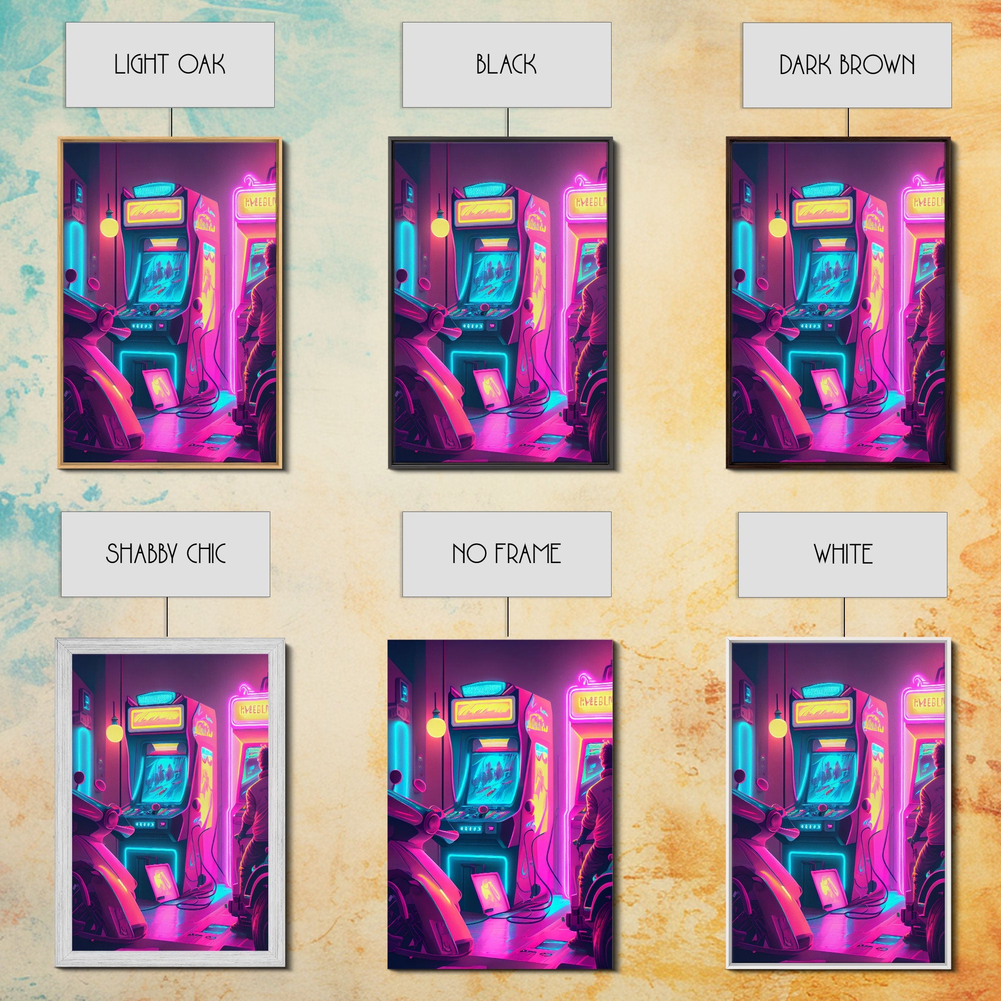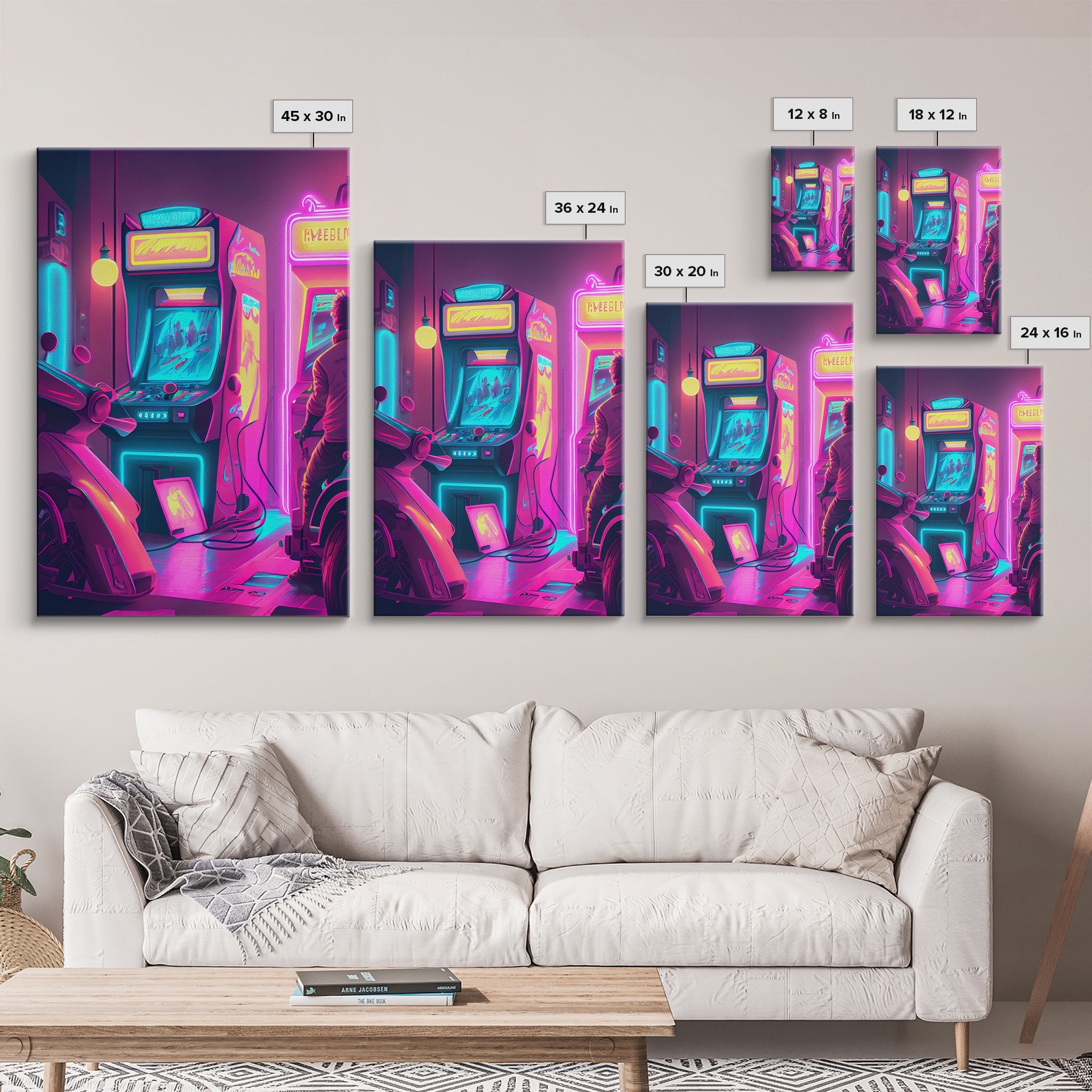 Game Room Decor, Framed Canvas Print, Synthwave Arcade, Boys Room, Gamer Gift, Gaming Wall Art, Video Game Posters, Teen Room