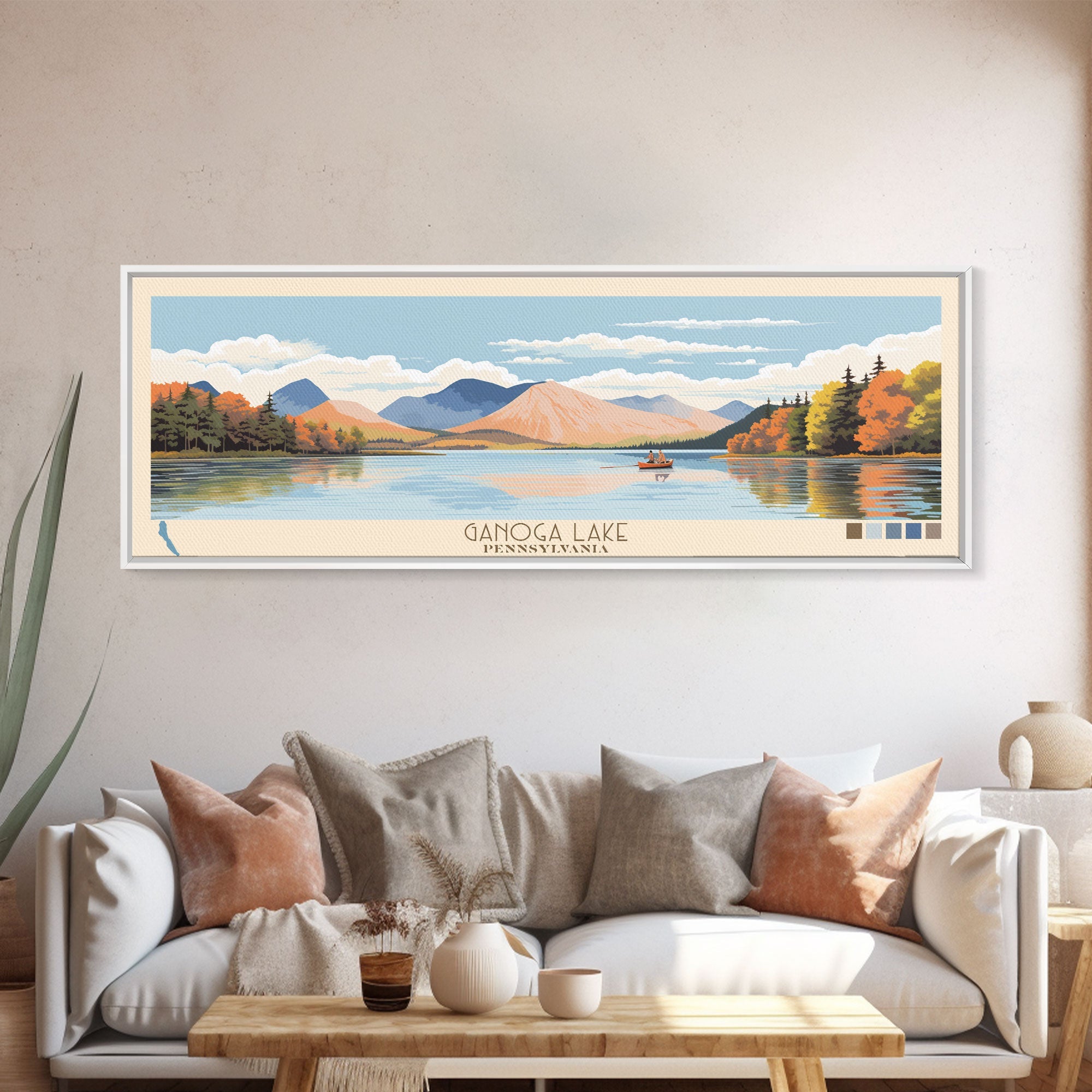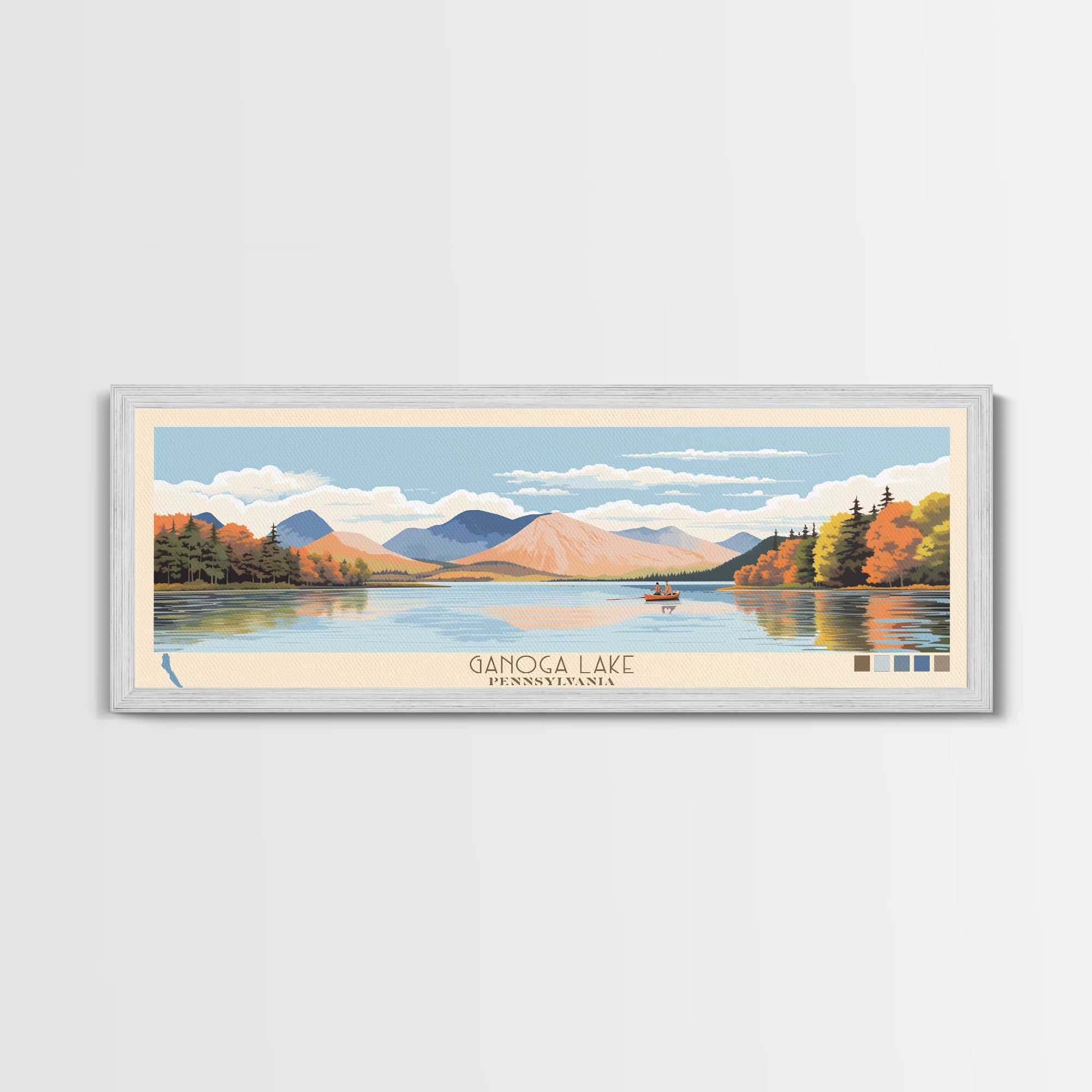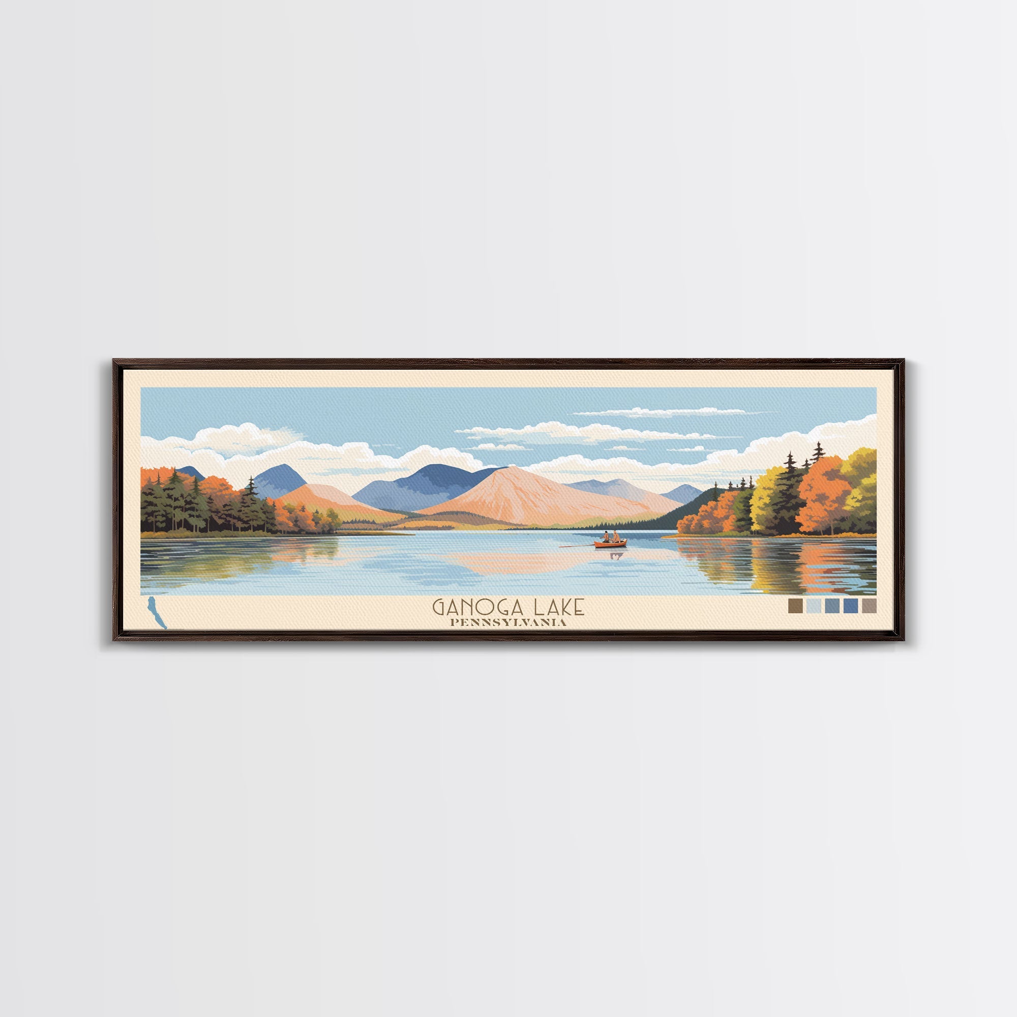 Ganoga Lake Pennsylvania Framed Canvas Print, Panoramic Art, Midcentury Modern, Pop Art, Living Room Wall Art, Travel Poster, Nature Painting, Home Decor