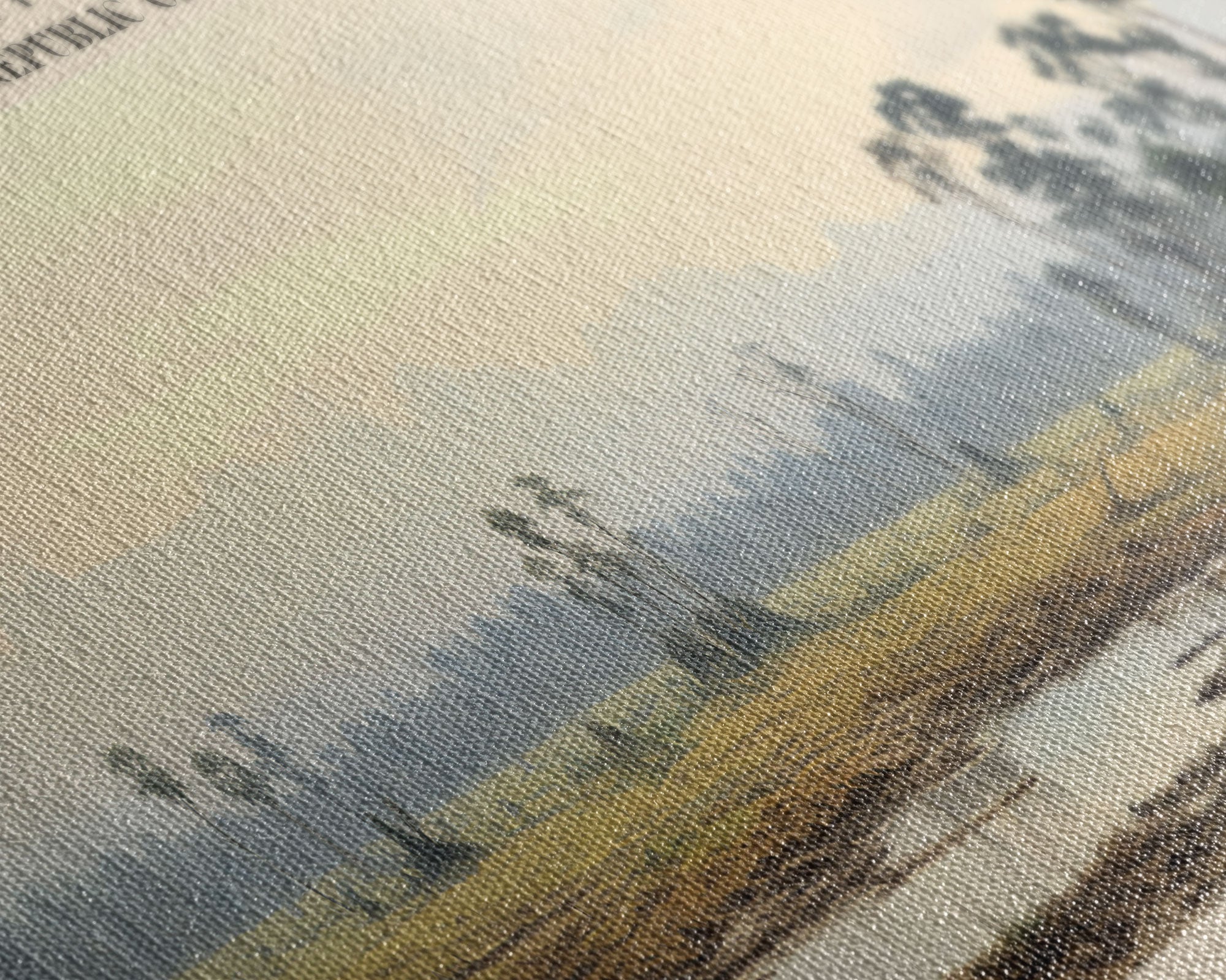 Most of our canvases are made in the USA, with the exception of canvases ordered with the light oak unstained frames, and any large canvases (24x48, 30x60, 16x48 and 20x60) ordered WITH a frame. These are temporarily made in and shipped from Europe, while we try to find a more consistent supplier in the USA.