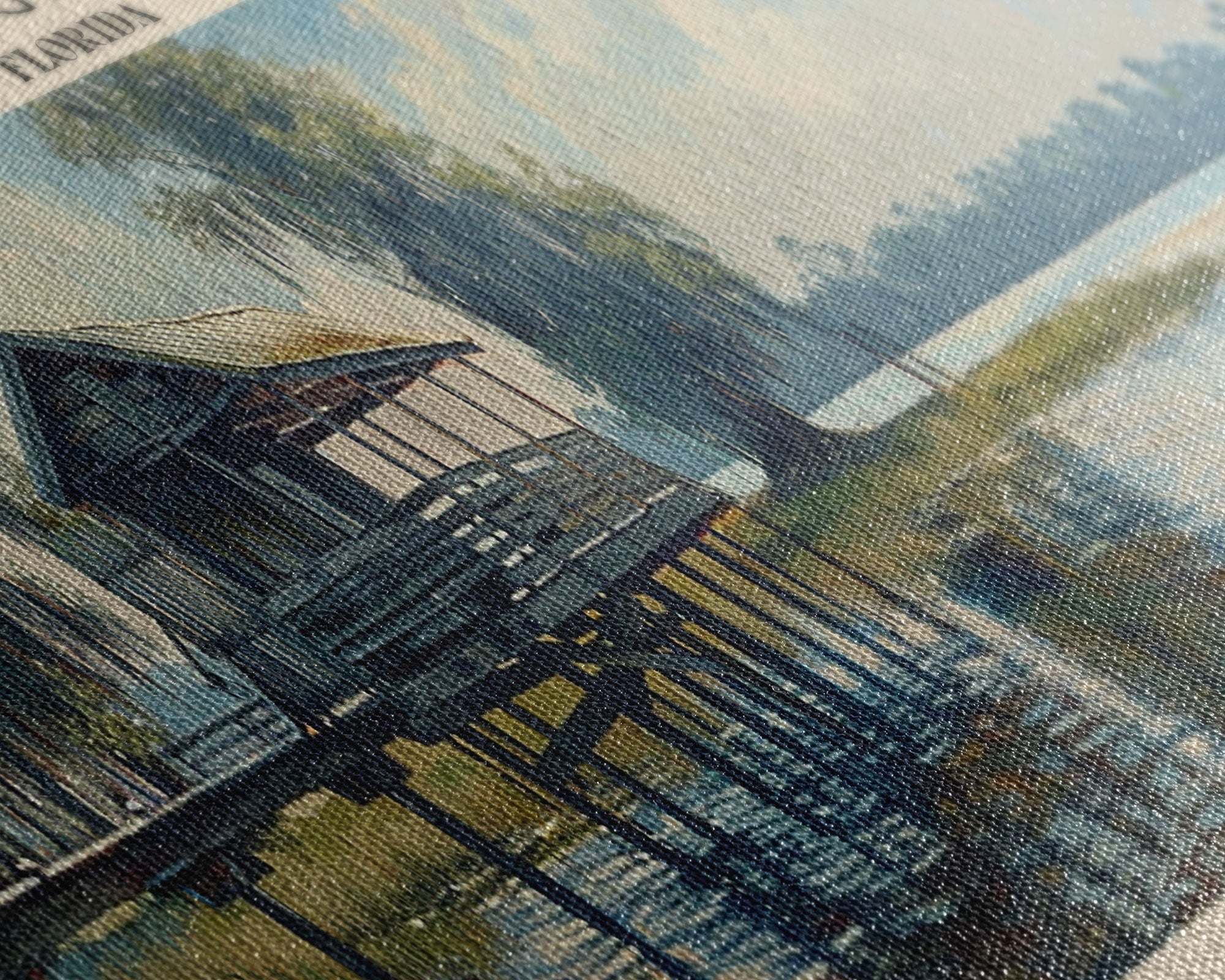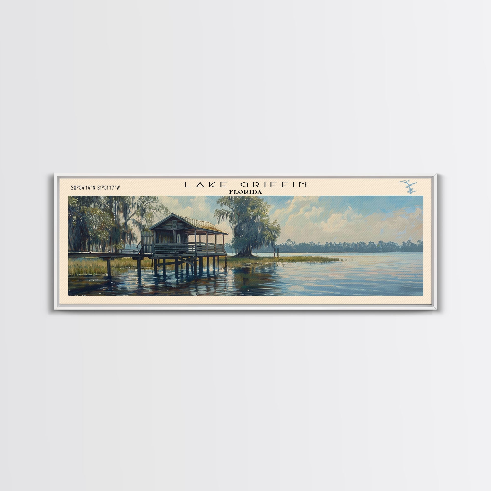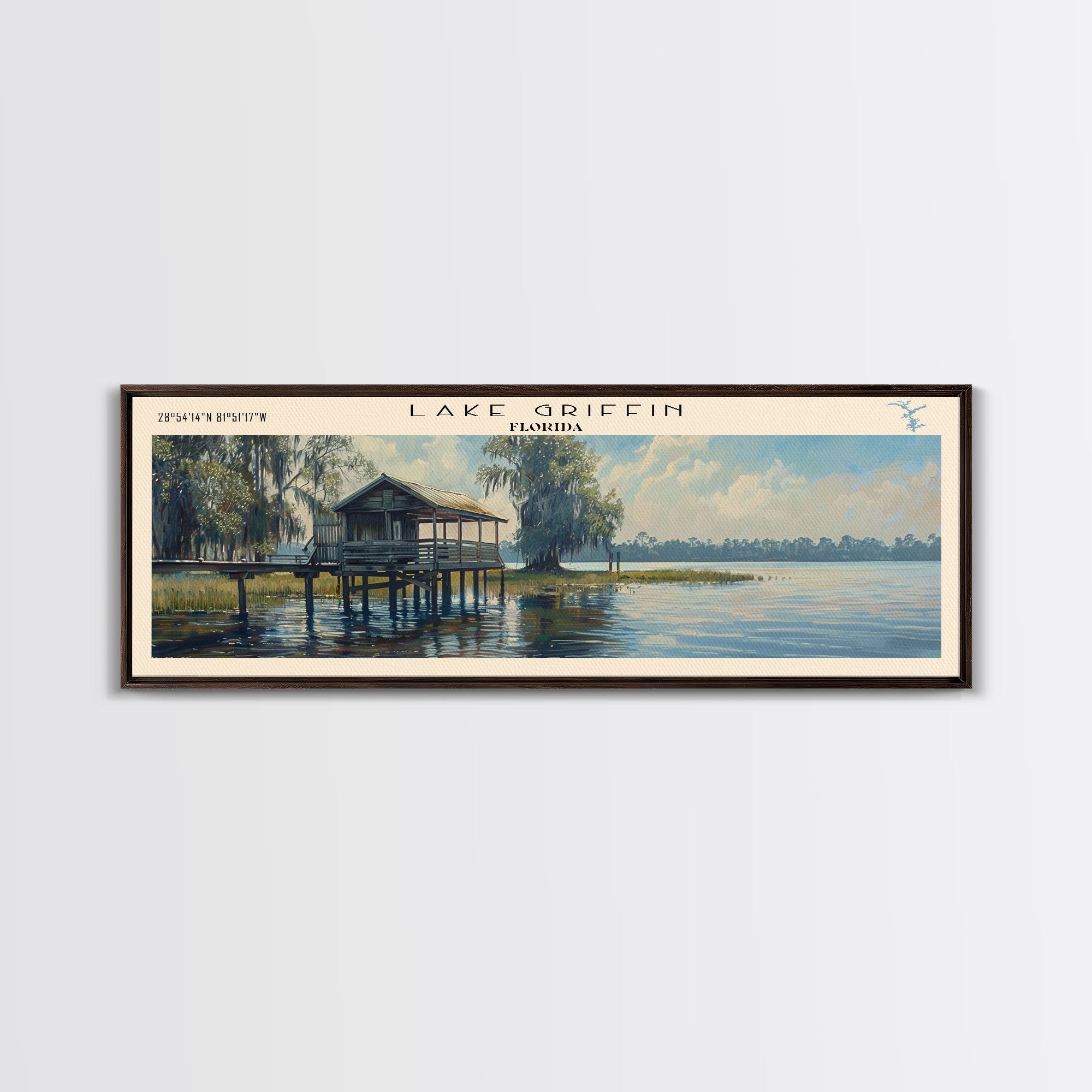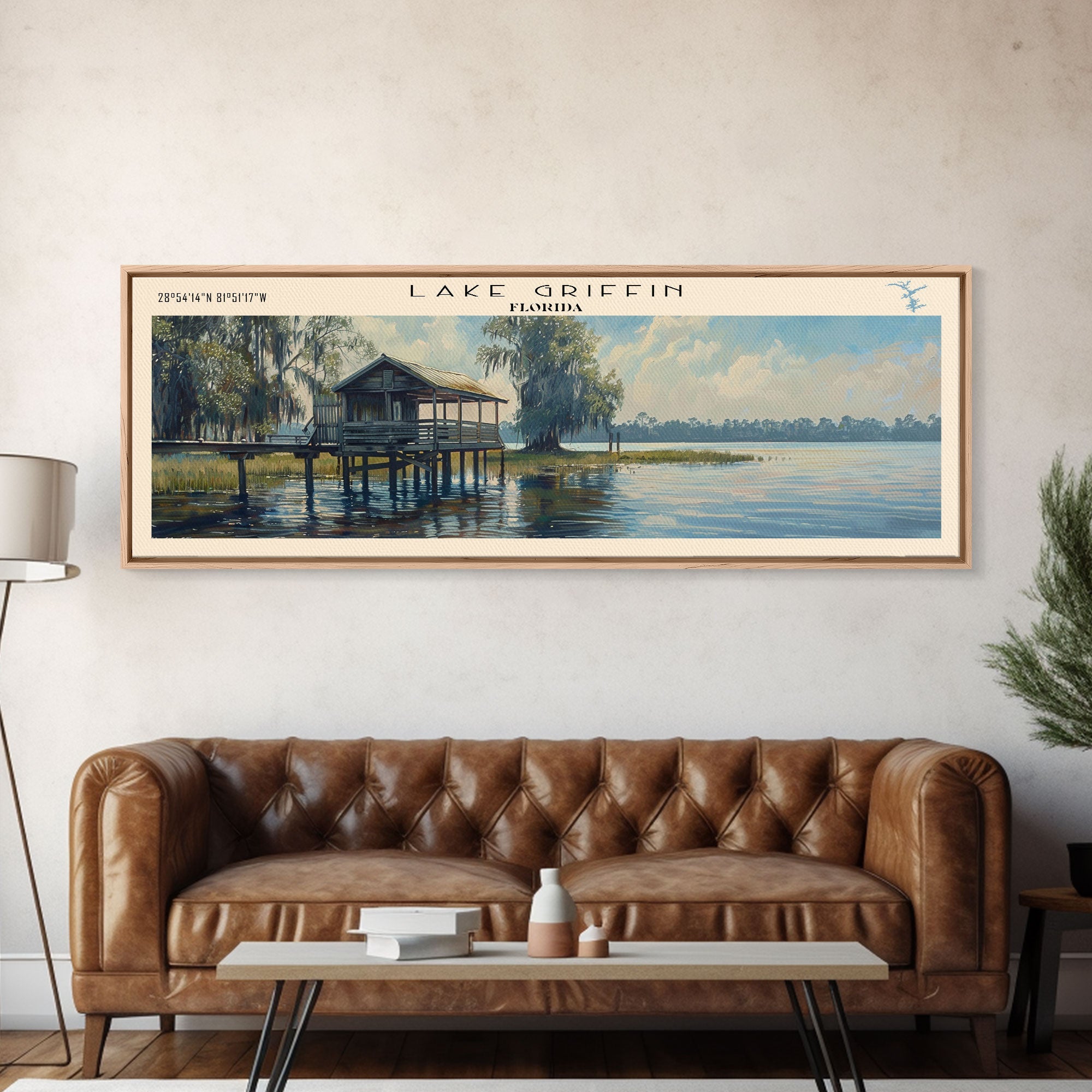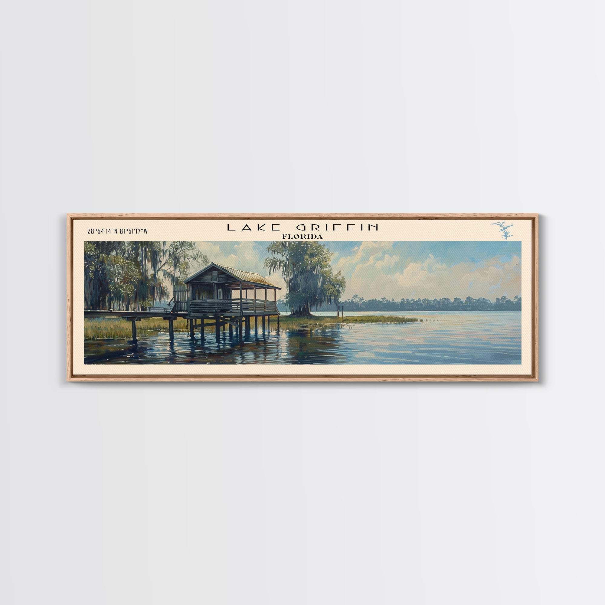 Lake Griffin Florida Framed Canvas Print, Lake House Decor, Panoramic Wall Art, Travel Poster, Beautiful Lake Painting, Nature Art