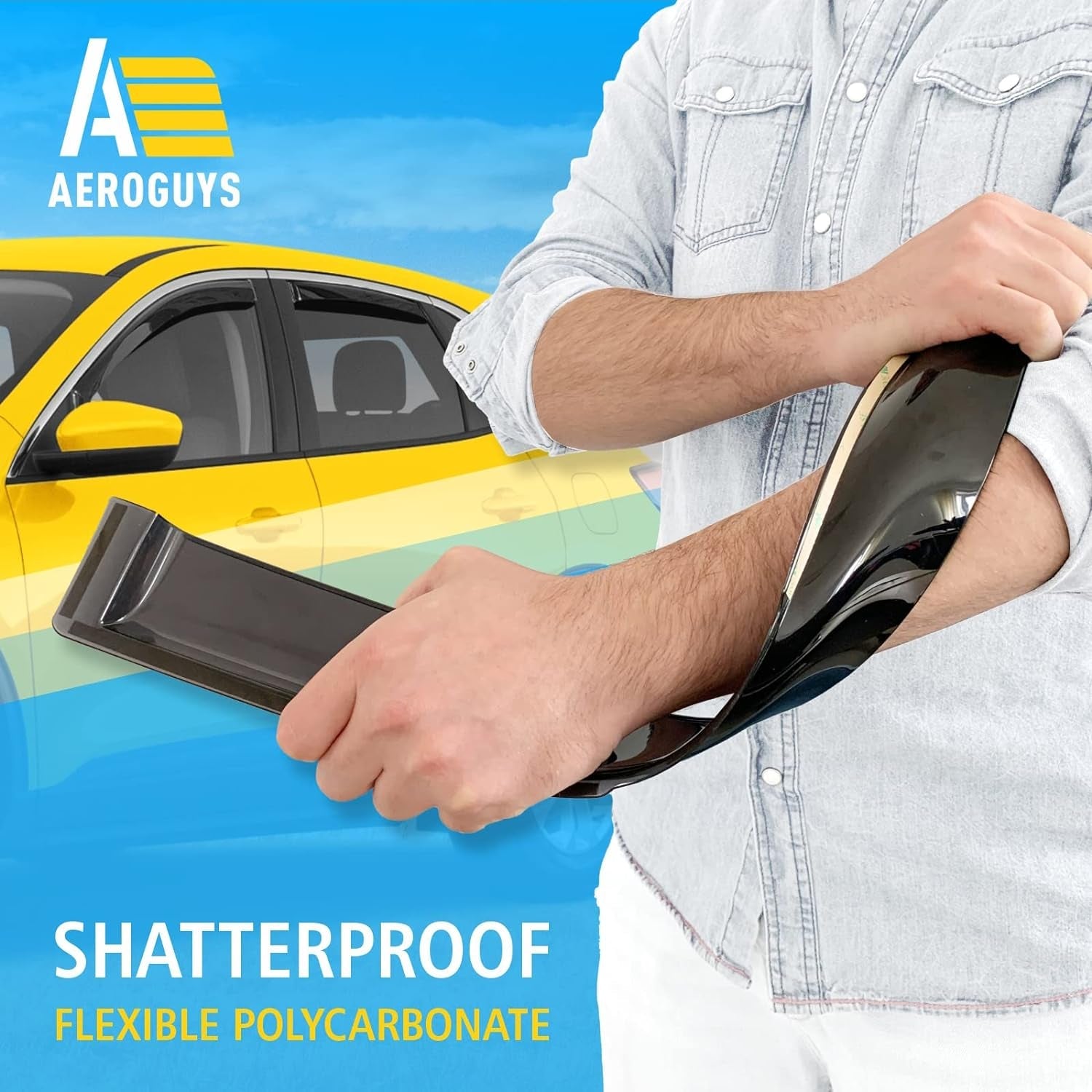 - Incredibly Durable AEROGUYS Auto Window Deflectors – They are made with strong and tough polycarbonate which is clear and scratch-resistant. They also provide UV protection making your ride more comfortable under all weather conditions.