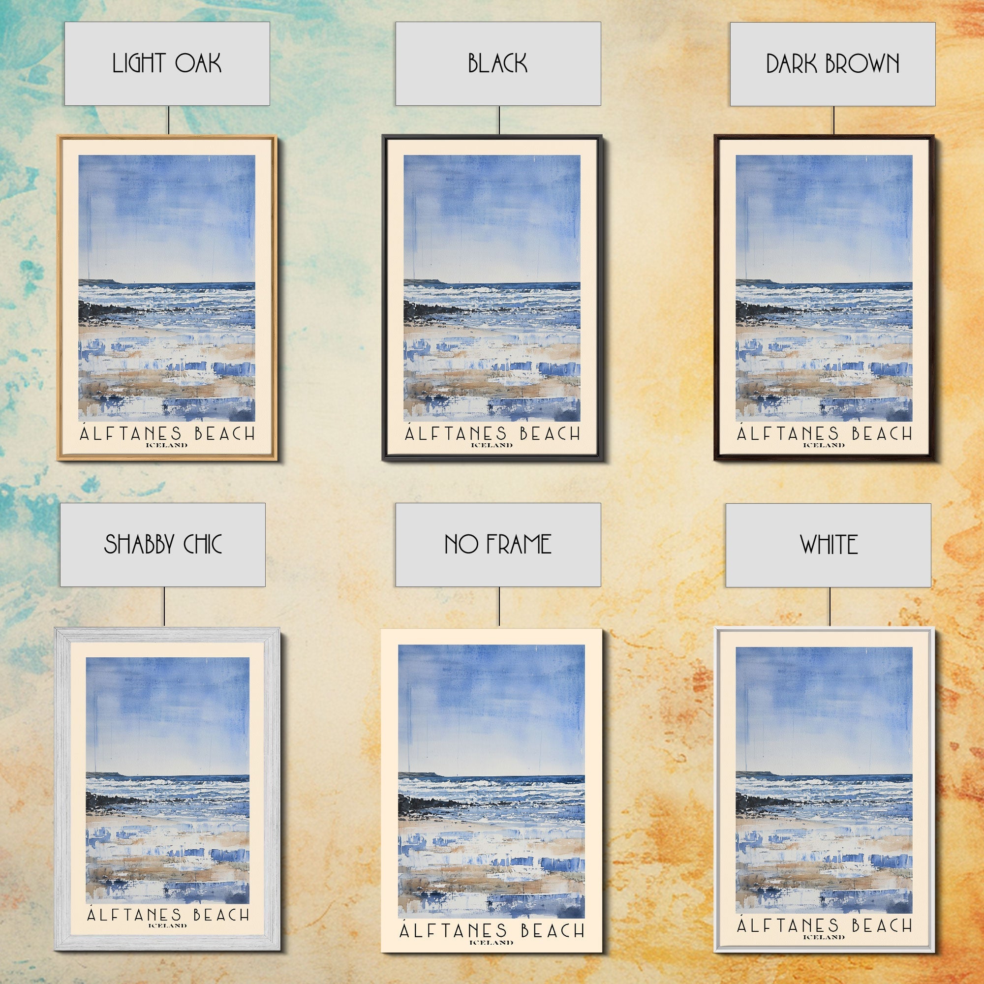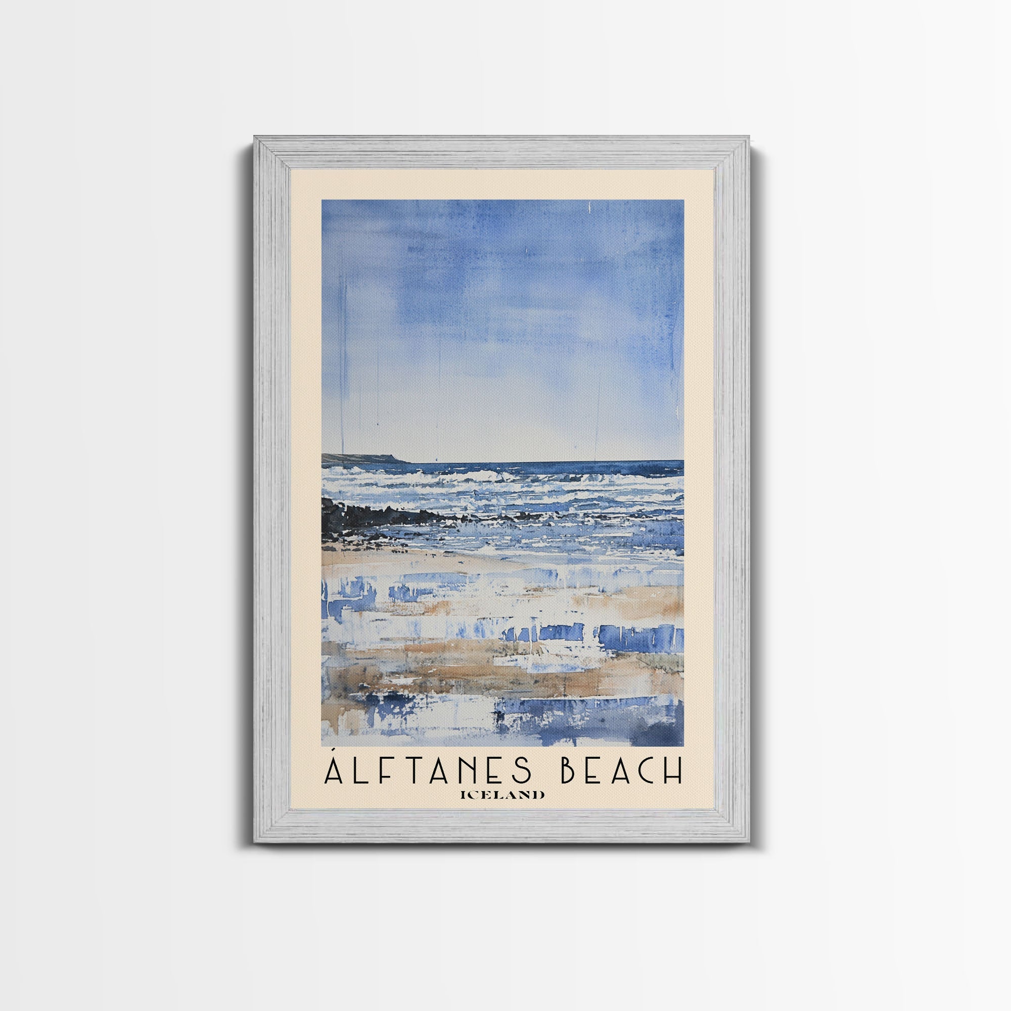 Álftanes Beach, Iceland Watercolor Print, Vacation Gift, Iceland Wall Art, Beach Painting, Beach Decor, Large Wall Art, Wood Frame Art
