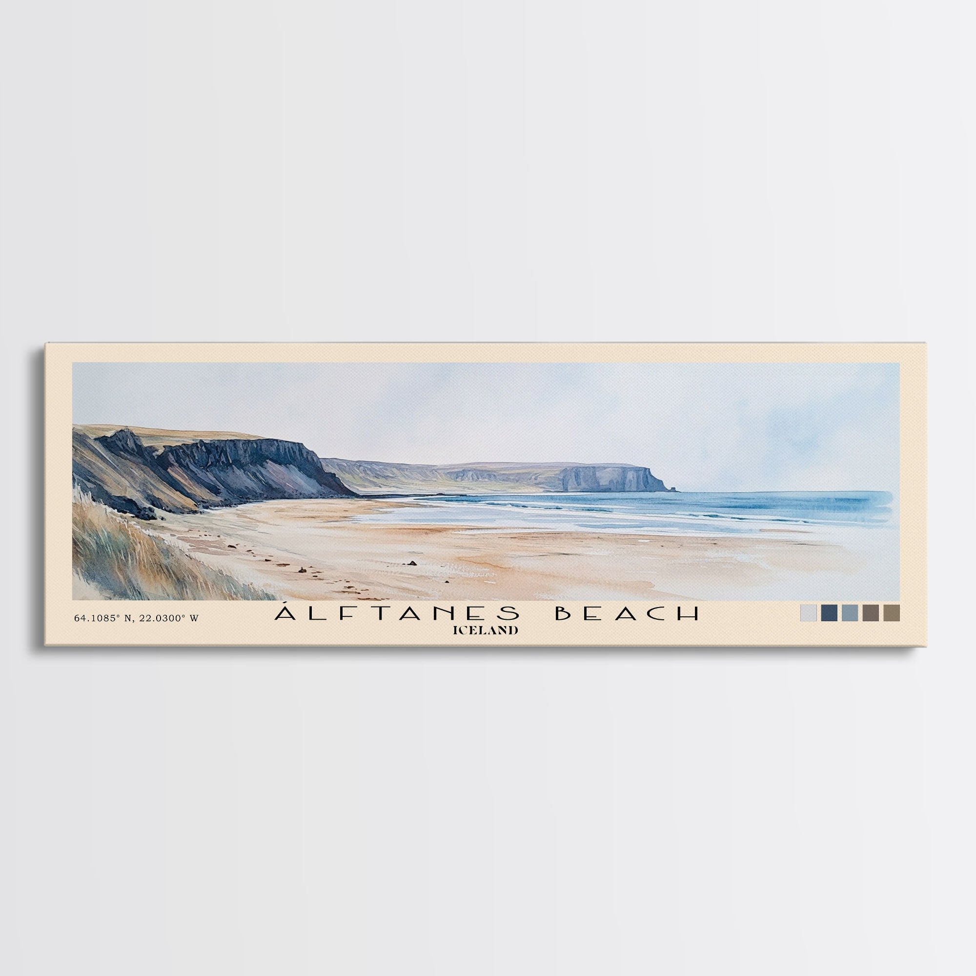 Álftanes Beach, Iceland Watercolor Print, Vacation Gift, Iceland Wall Art, Beach Painting, Beach Decor, Large Wall Art, Wood Frame Art