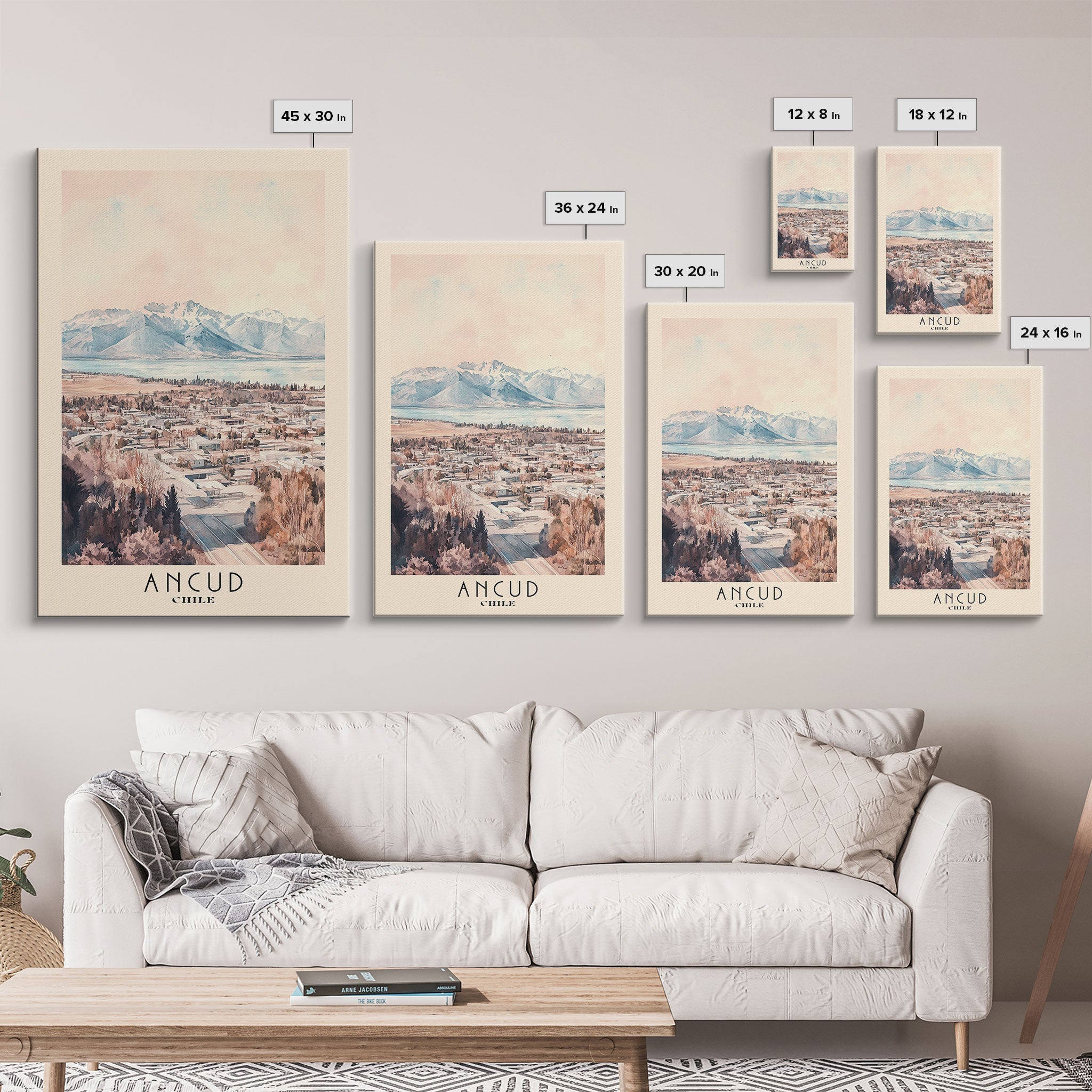 Ancud, Chile Watercolor Print, Vacation Gift, Chile Wall Art, Beach Painting, Beach Decor, Large Wall Art, Wood Frame Art