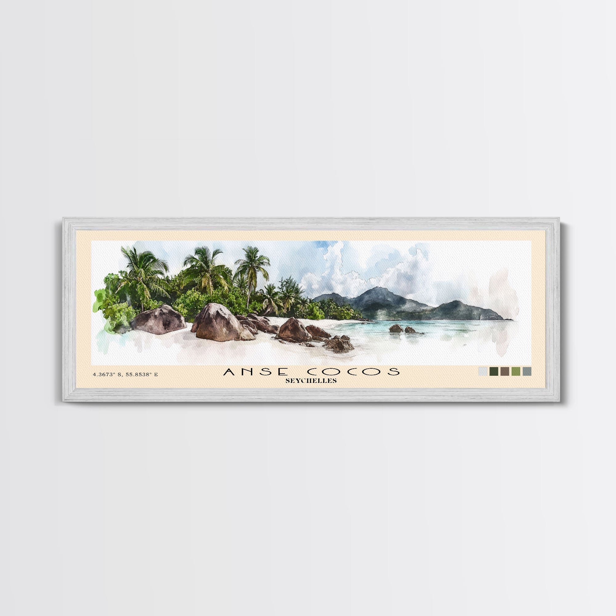 • Load image into Gallery viewer, Anse Cocos, Seychelles Watercolor Beach Print, Vacation Gift, Seychelles Wall Art, Beach Painting, Beach Decor, Beach Painting