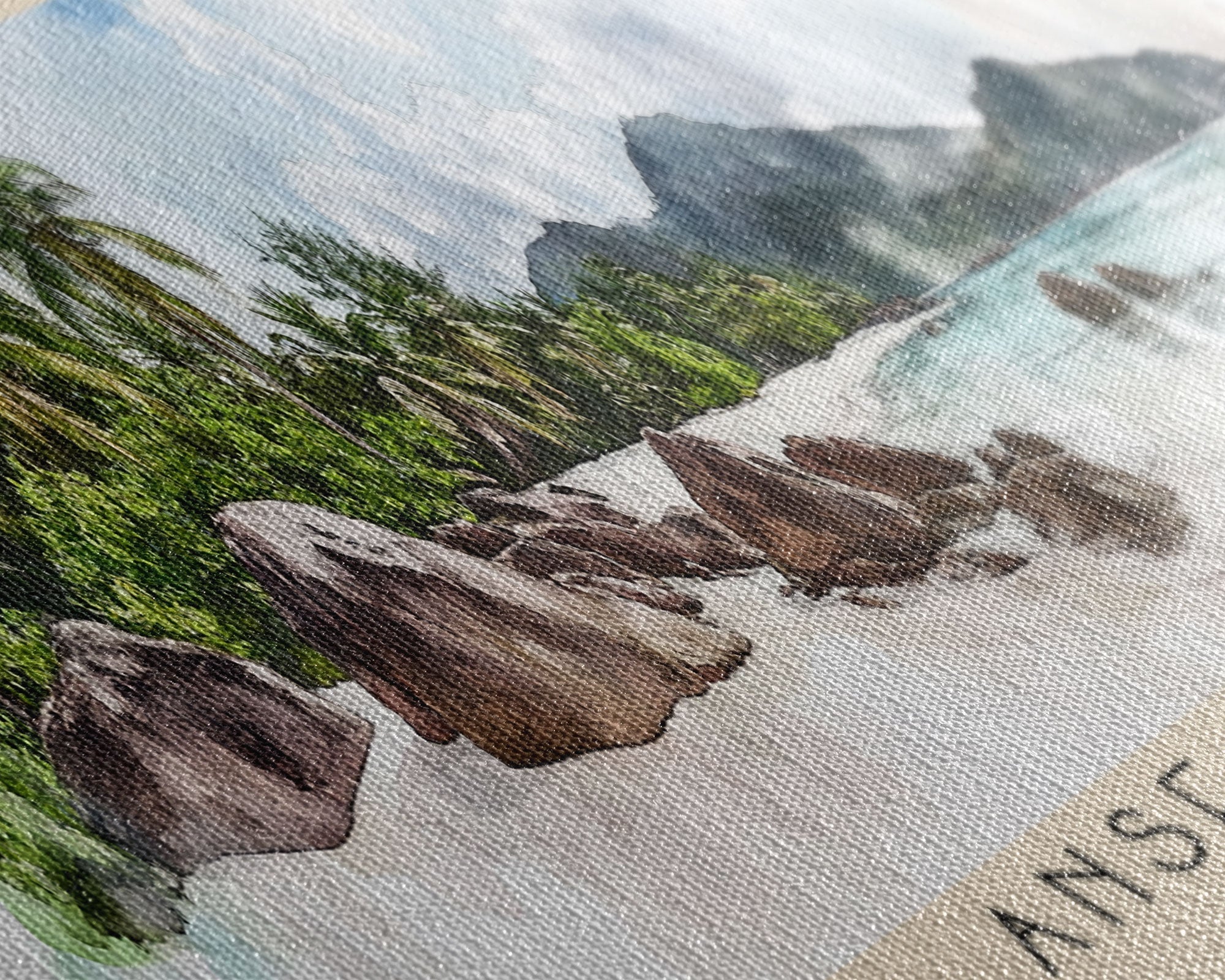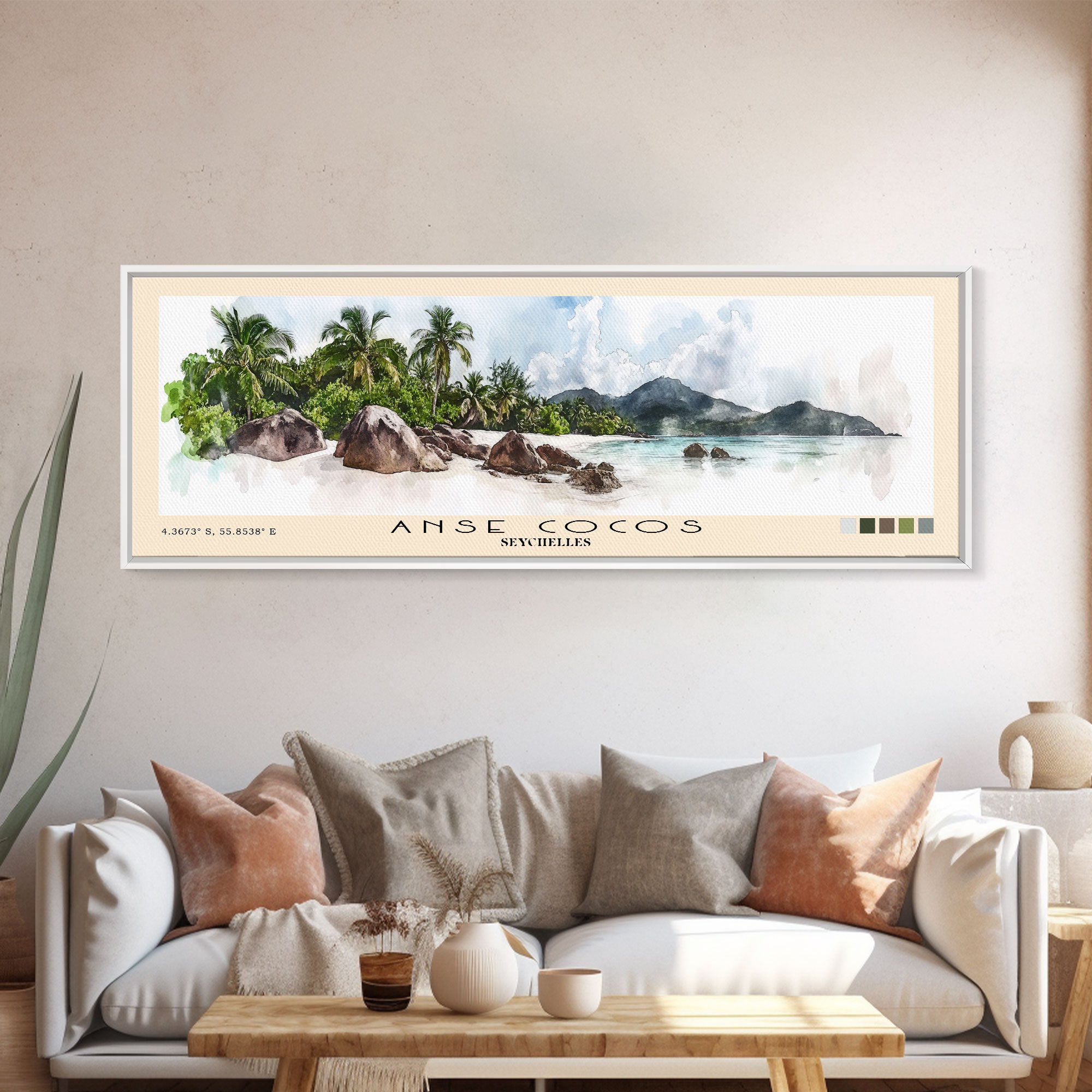 Anse Cocos, Seychelles Watercolor Beach Print, Vacation Gift, Seychelles Wall Art, Beach Painting, Beach Decor, Beach Painting
