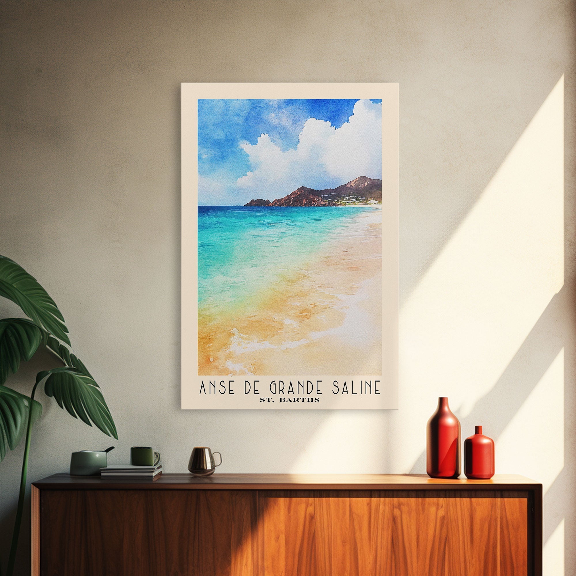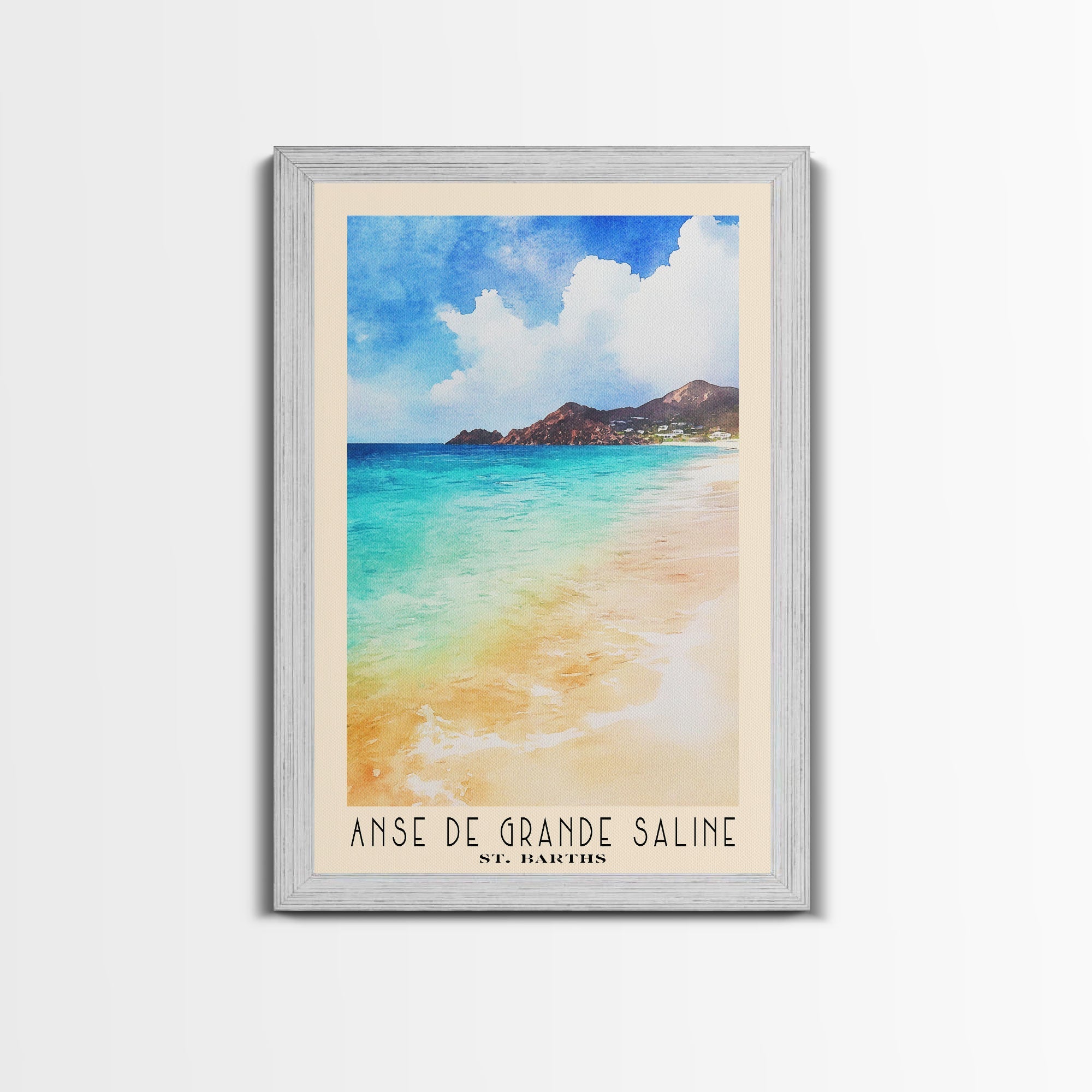 Anse de Grande Saline, St. Barths Watercolor Print, Vacation Gift, St. Barths Wall Art, Beach Painting, Beach Decor, Large Wall Art, Wood Frame Art