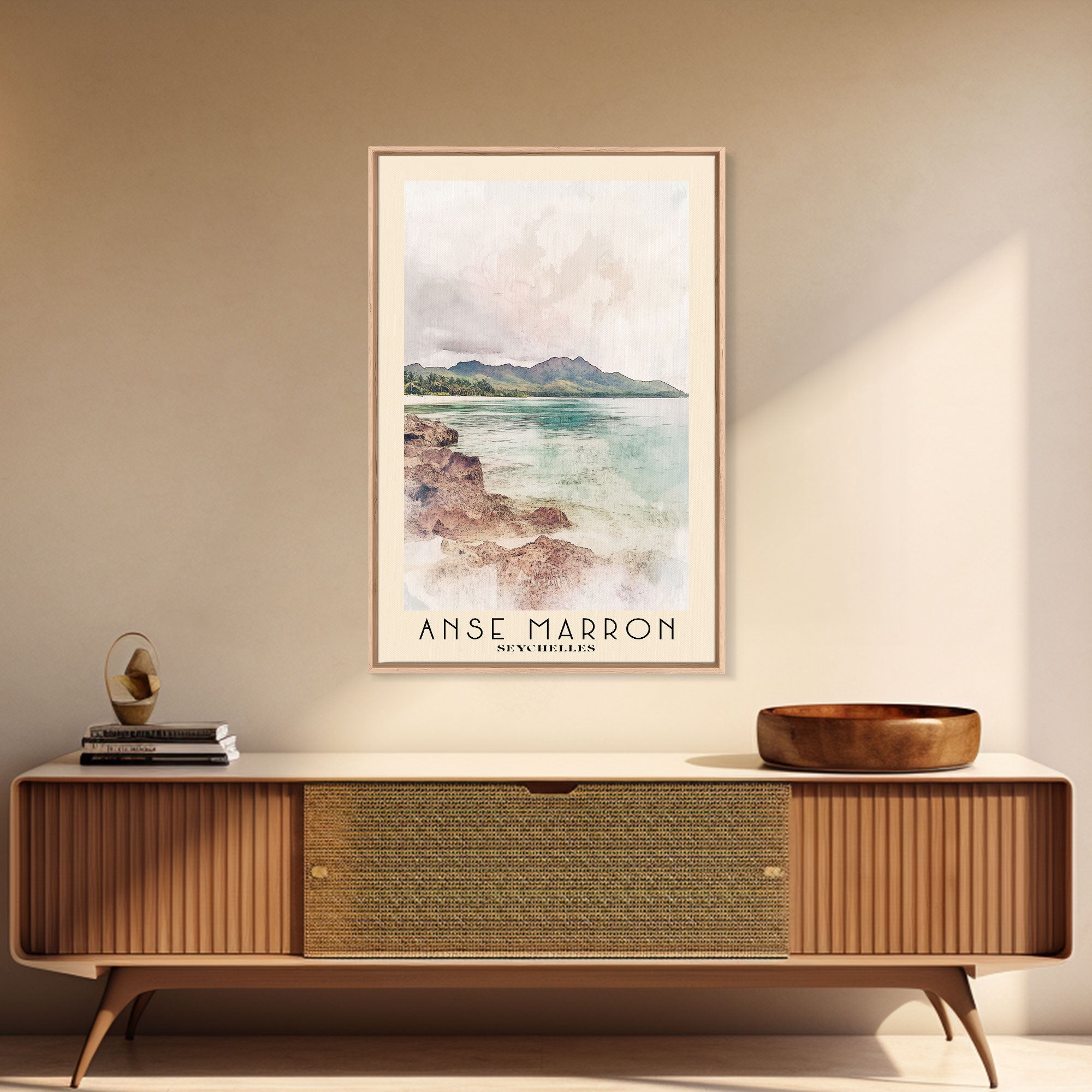 Anse Marron, Seychelles Watercolor Print, Vacation Gift, Seychelles Wall Art, Beach Painting, Beach Decor, Large Wall Art, Wood Frame Art
