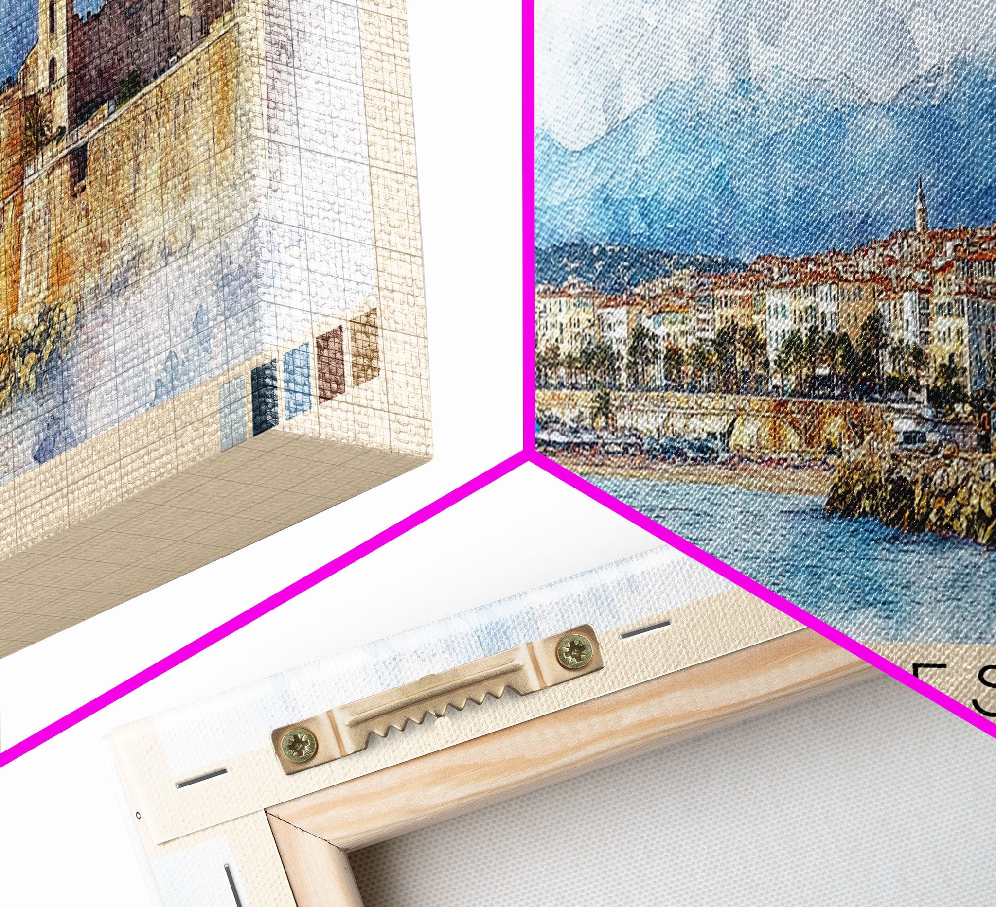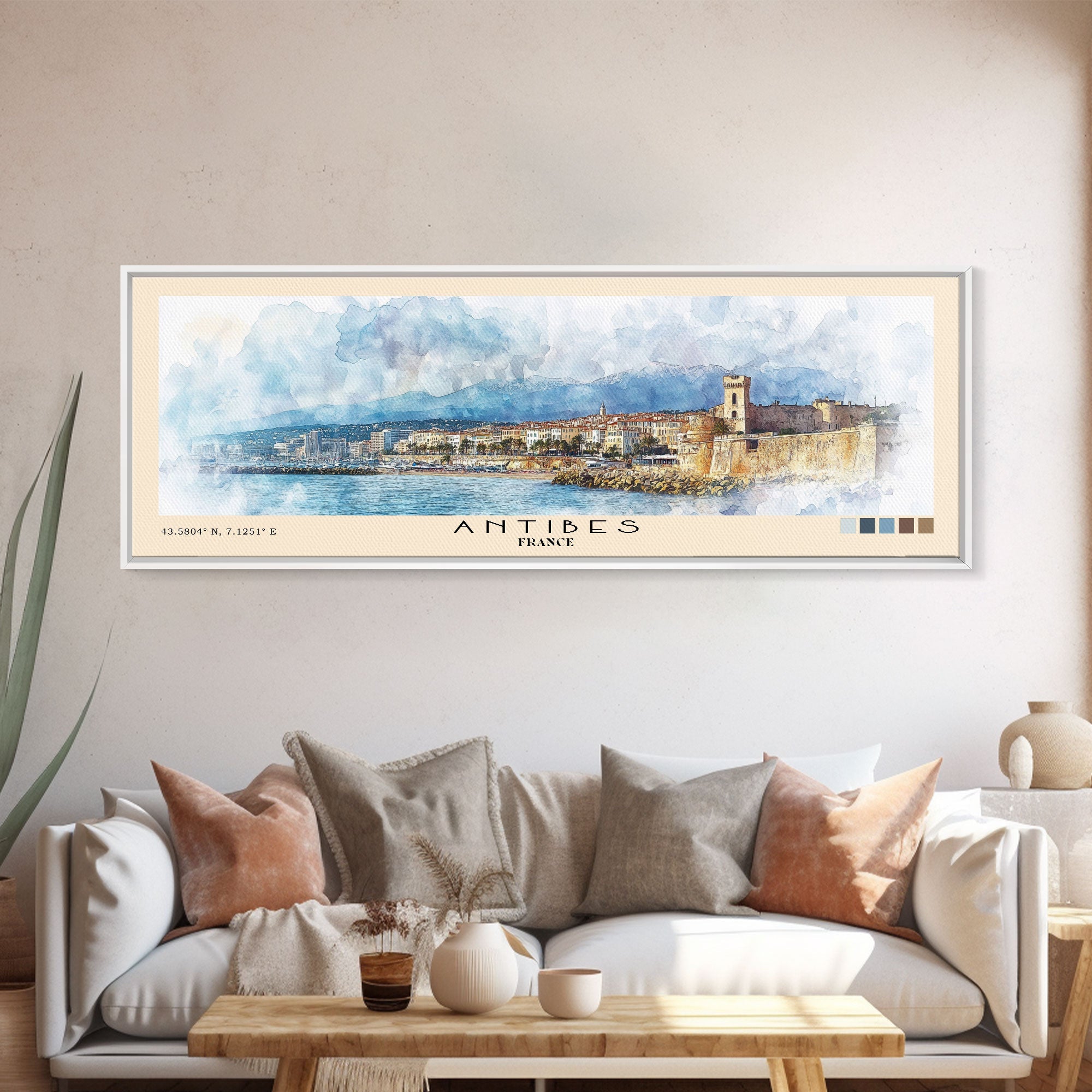 Antibes, France Watercolor Print, Vacation Gift, France Wall Art, Beach Painting, Beach Decor, Large Wall Art, Wood Frame Art