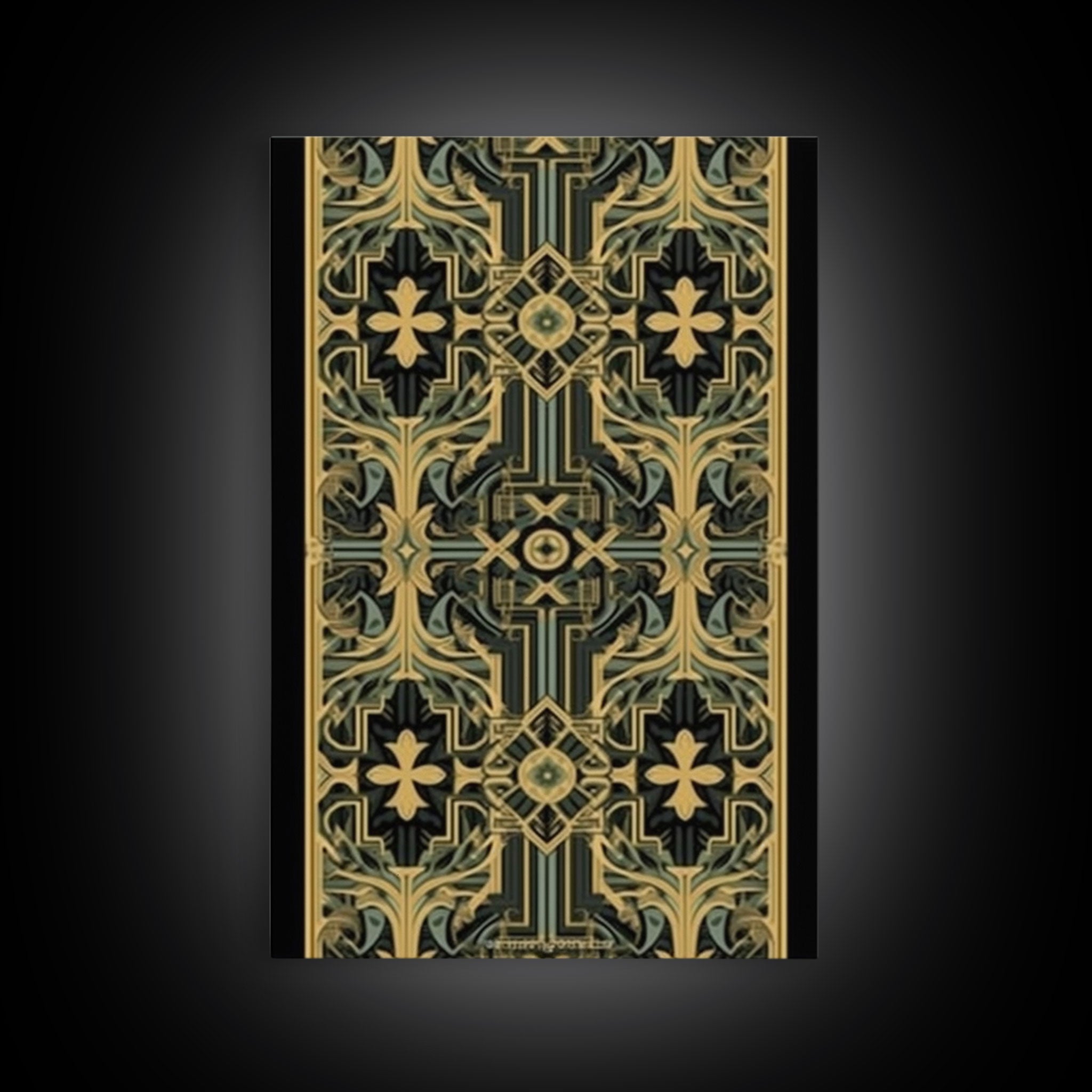 Art Deco Pattern Wall art, Framed Canvas Print, Art Deco, Gold & green art, Framed painting, Black colors, Wonderful art, 1920s Style Art