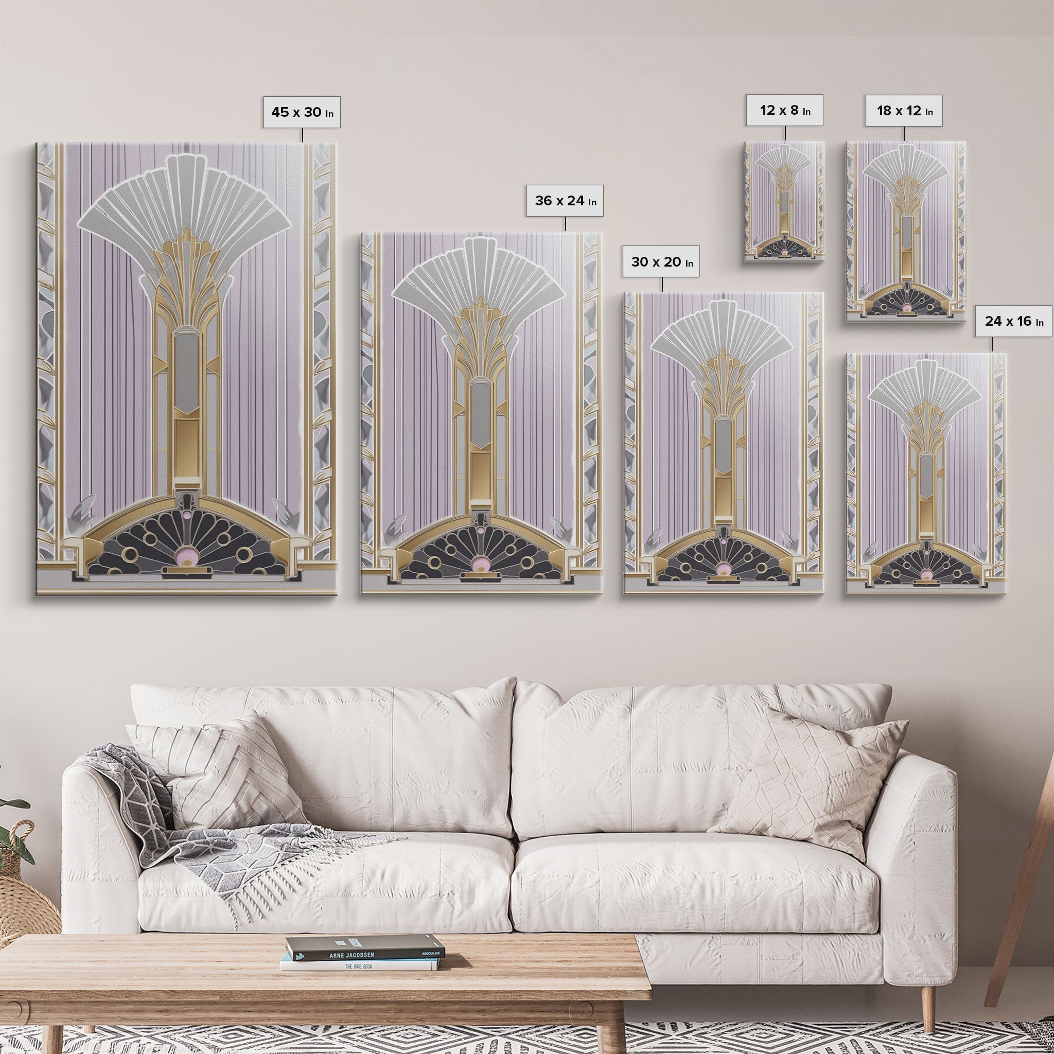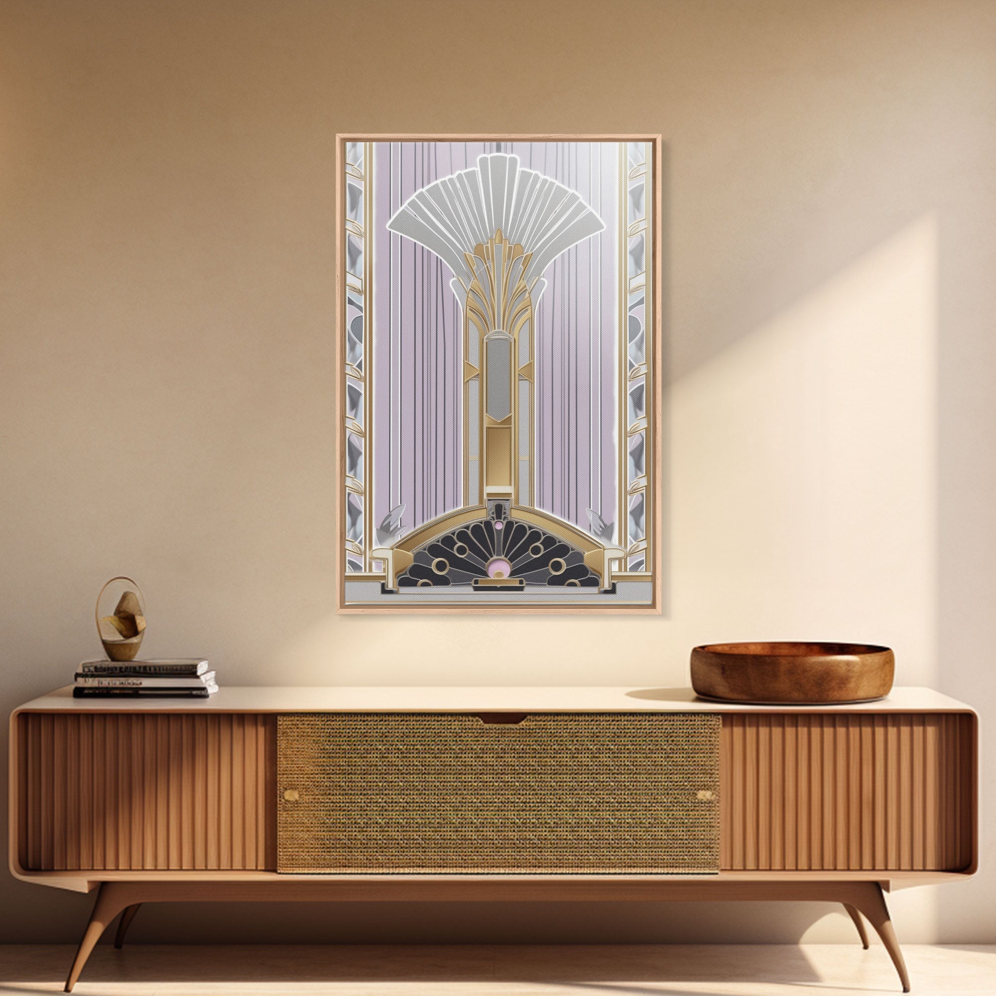 Art Deco Wall art, Framed Canvas Print, Art Deco, Gold art, Pastel colors, Midcentury Modern, Office decor, Living room art, Beautiful art