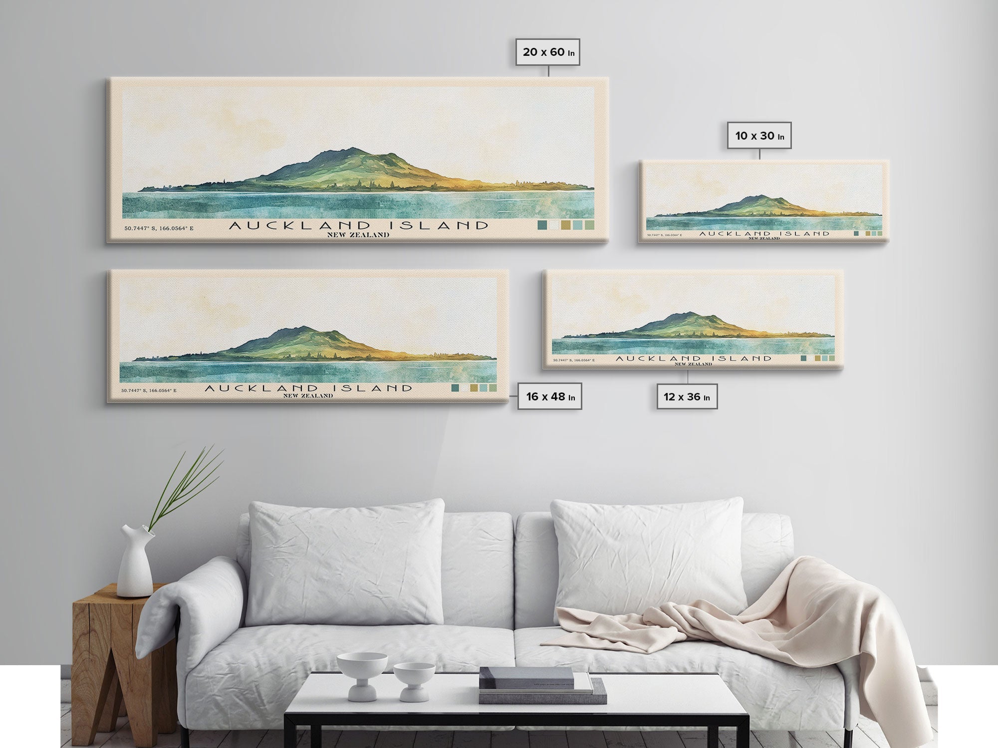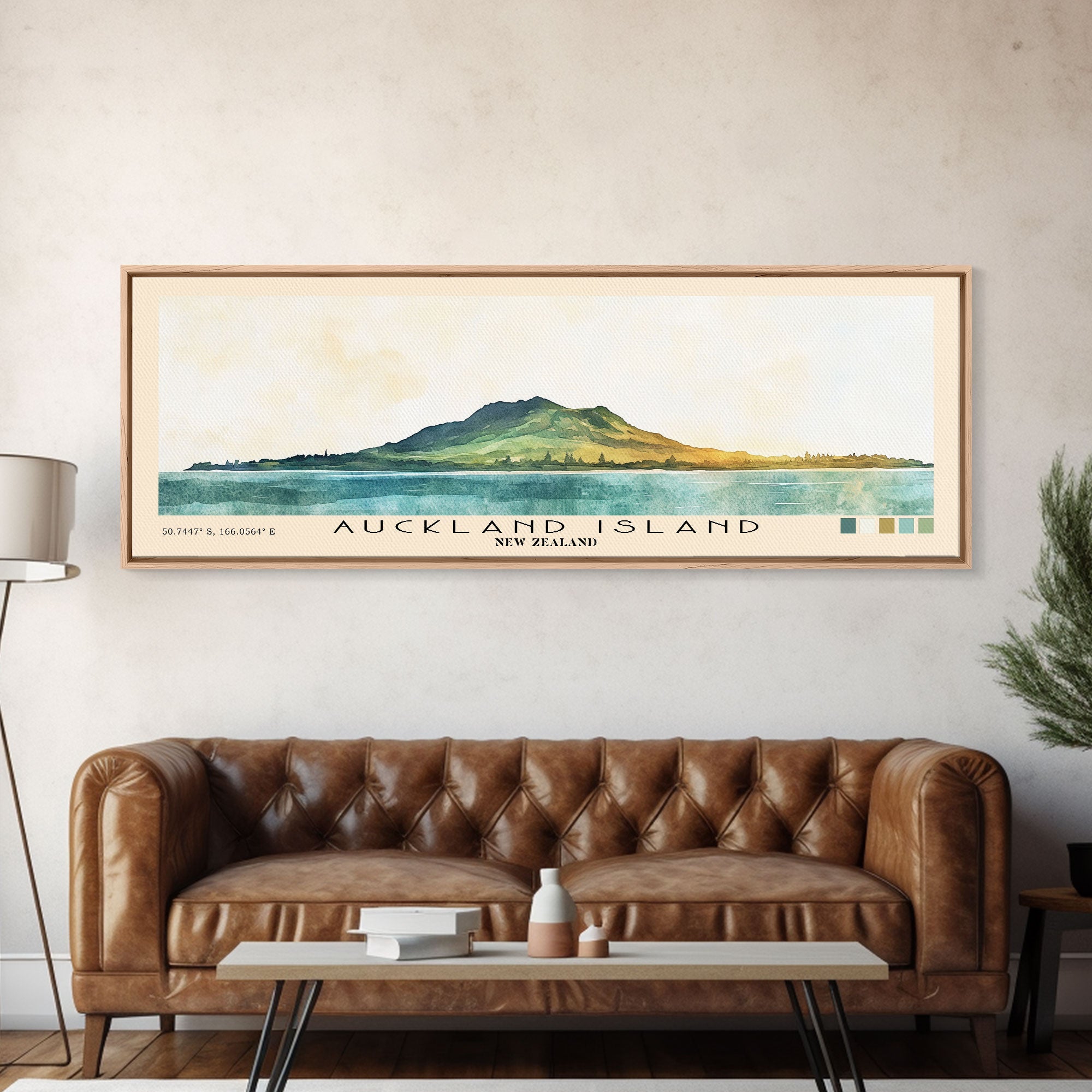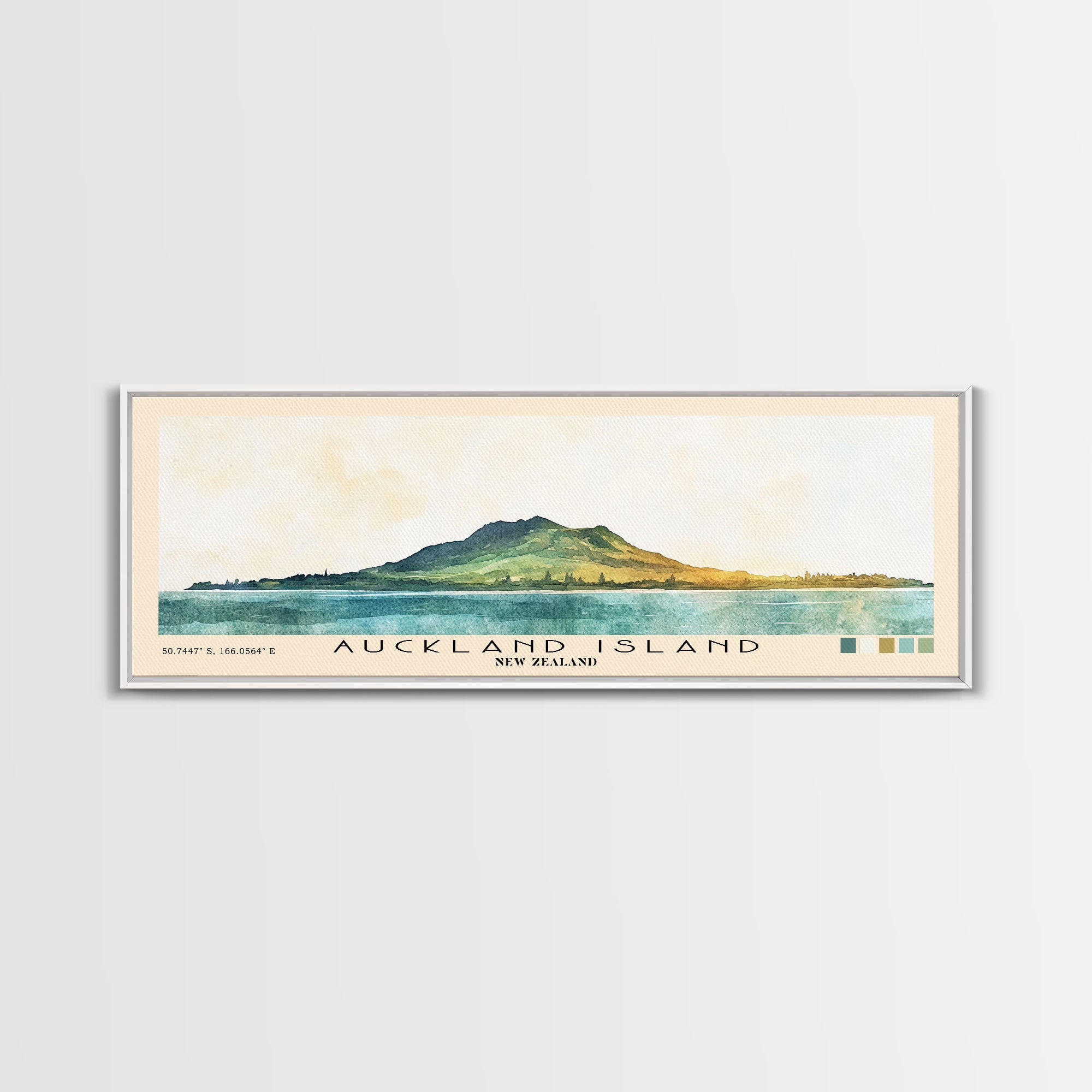 Auckland Island, New Zealand Watercolor Print, Vacation Gift, New Zealand Wall Art, Beach Painting, Beach Decor, Large Wall Art, Wood Frame Art