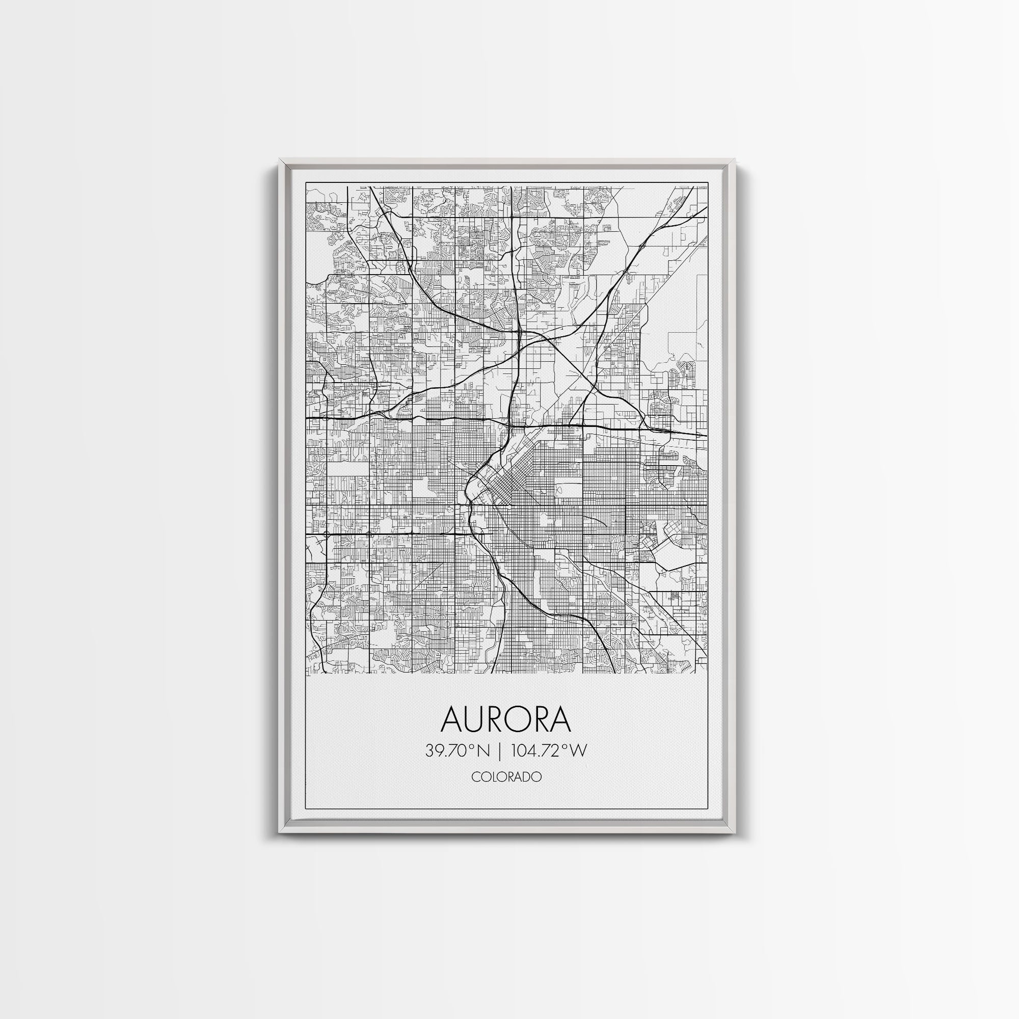 Aurora Street Map, Colorado Map, City Map Print, Travel Lover Gift, Above Bed Art, Minimalist Art, Wall Art, Canvas Print, Canvas Wall Art