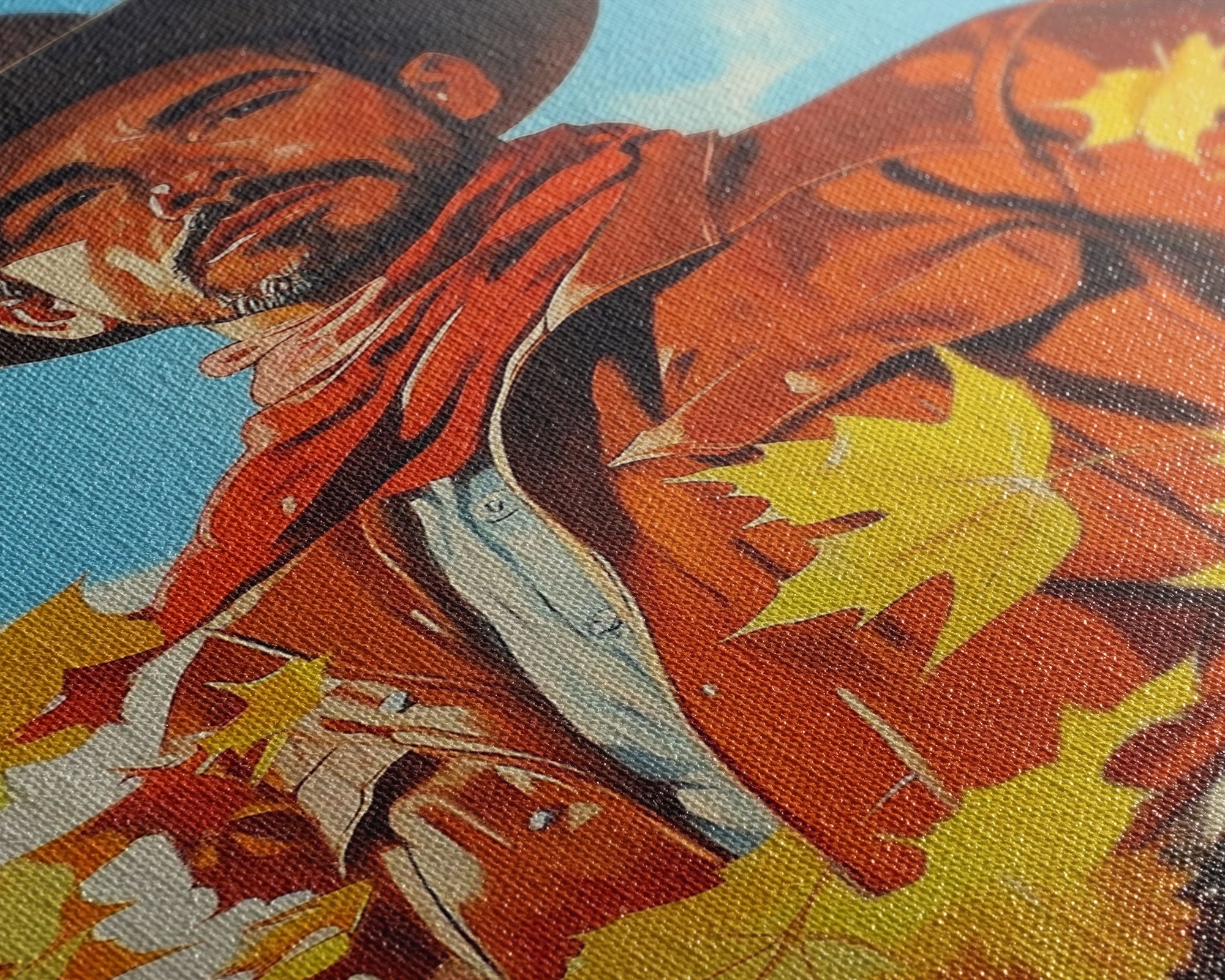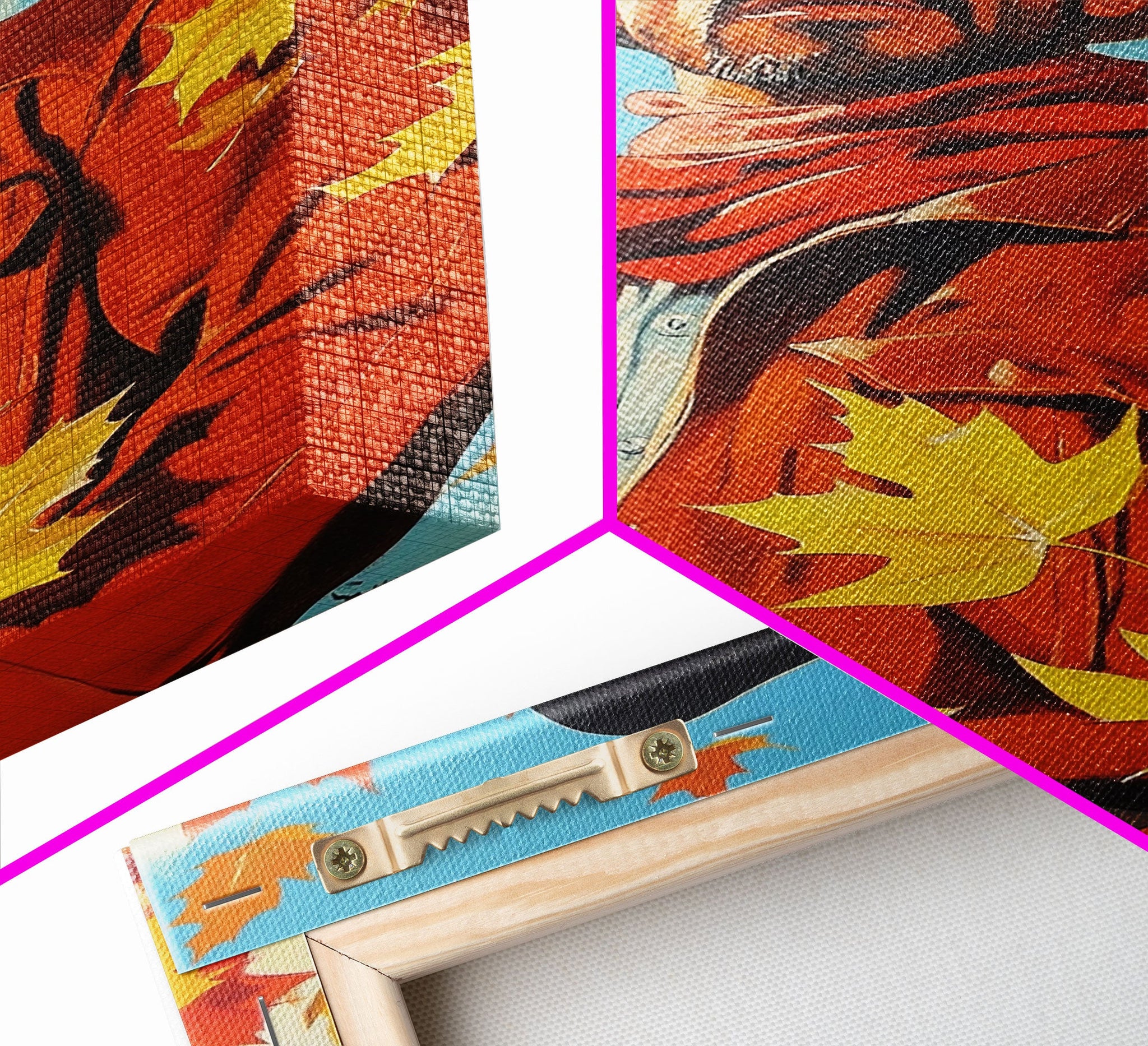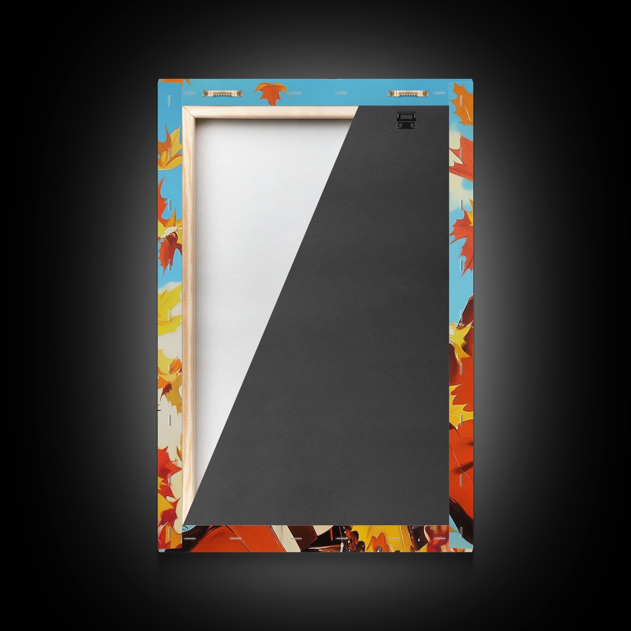 Autumn Cowboy Holiday Decor Framed Canvas Print with Leaves, Colorful Seasonal Wall Art Gift Idea 2024