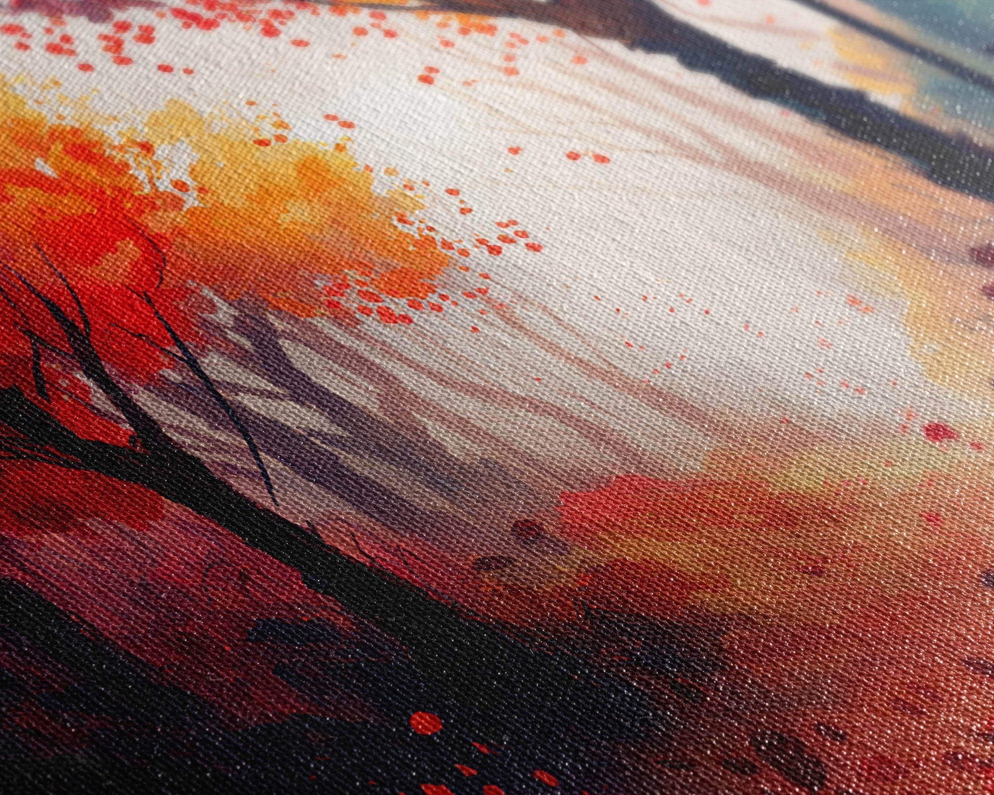 Autumn in the forest, orange and red leaves, framed canvas print, watercolor painting print on canvas, colorful wall art