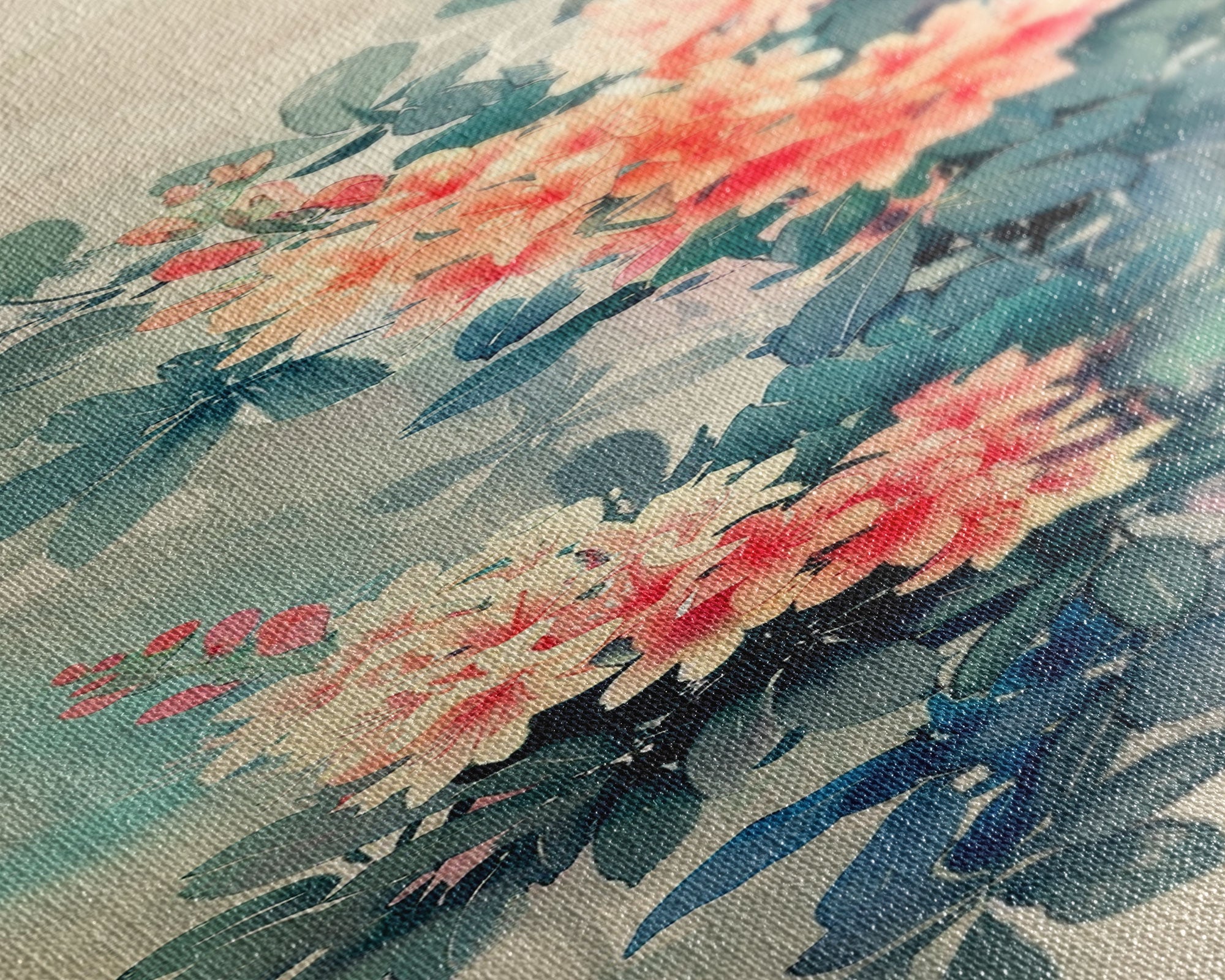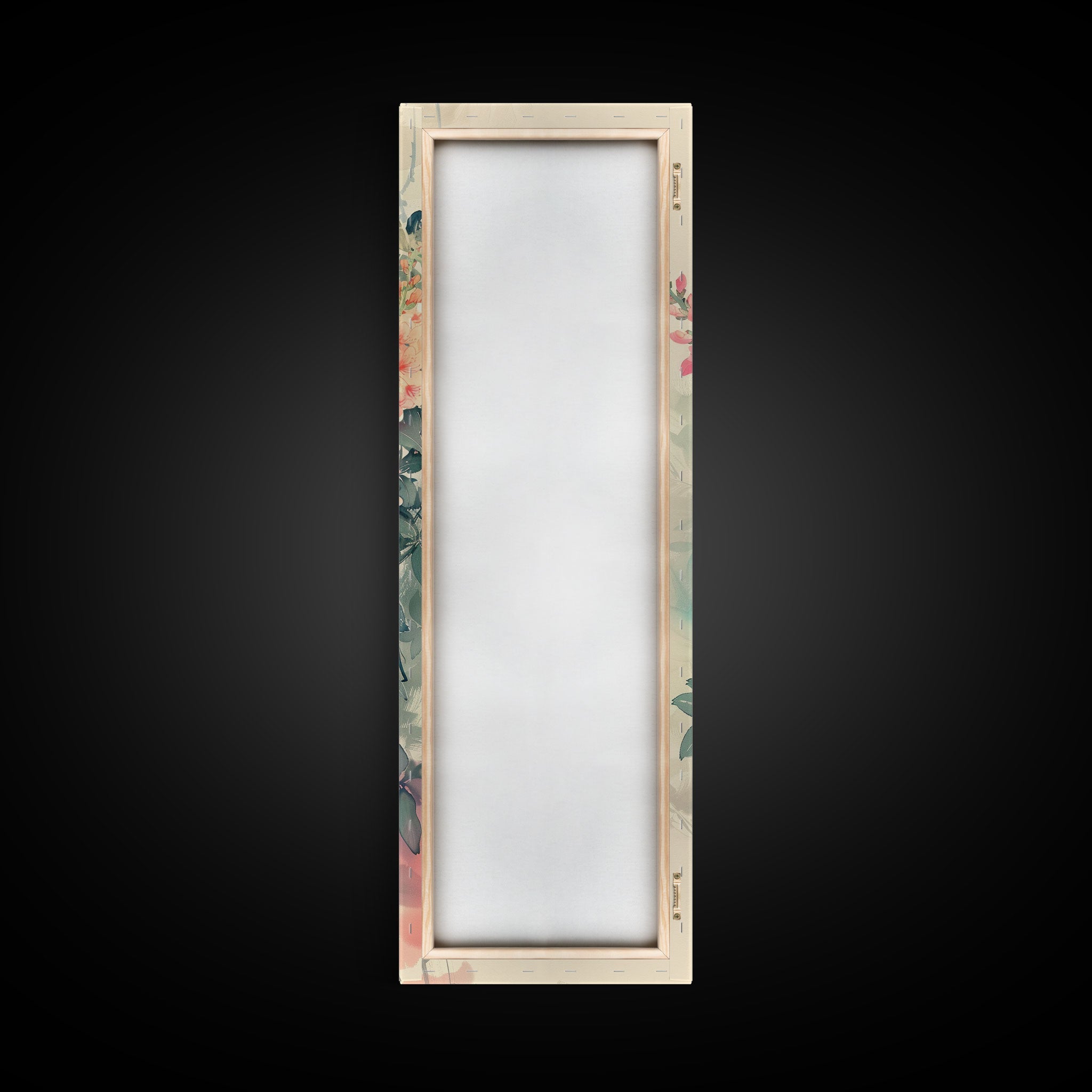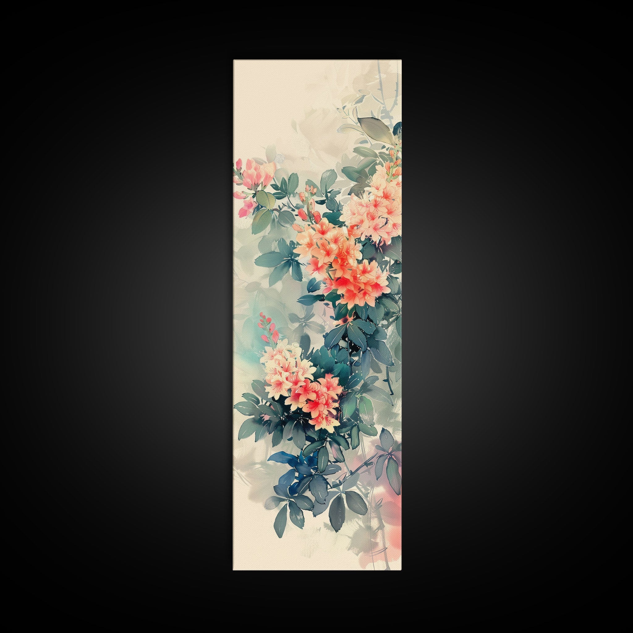 Azalea Blossoms Skinny Art Tall Art Japanese Ukiyo-e Inspired Floral Framed Canvas Print for Elegant and Timeless Decor