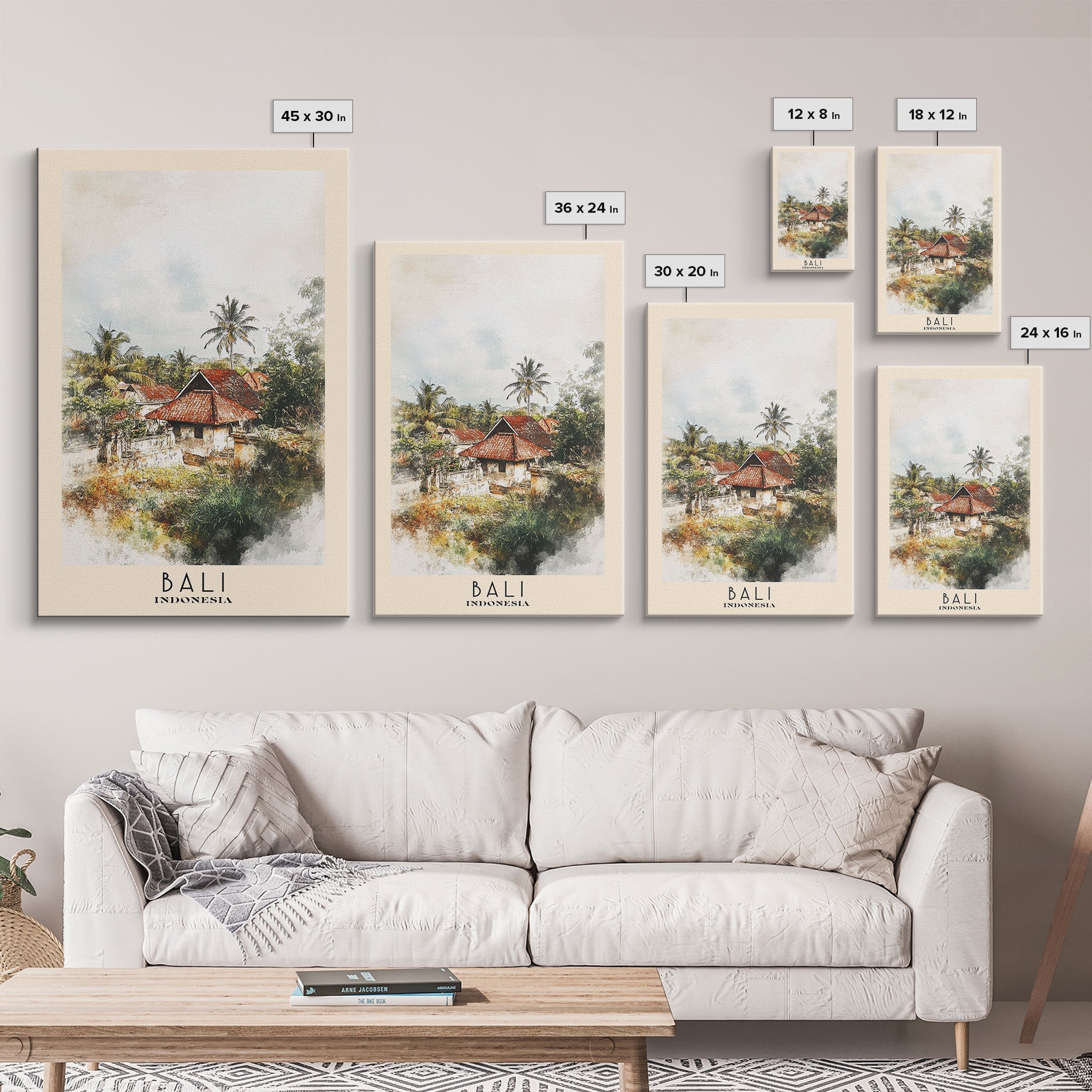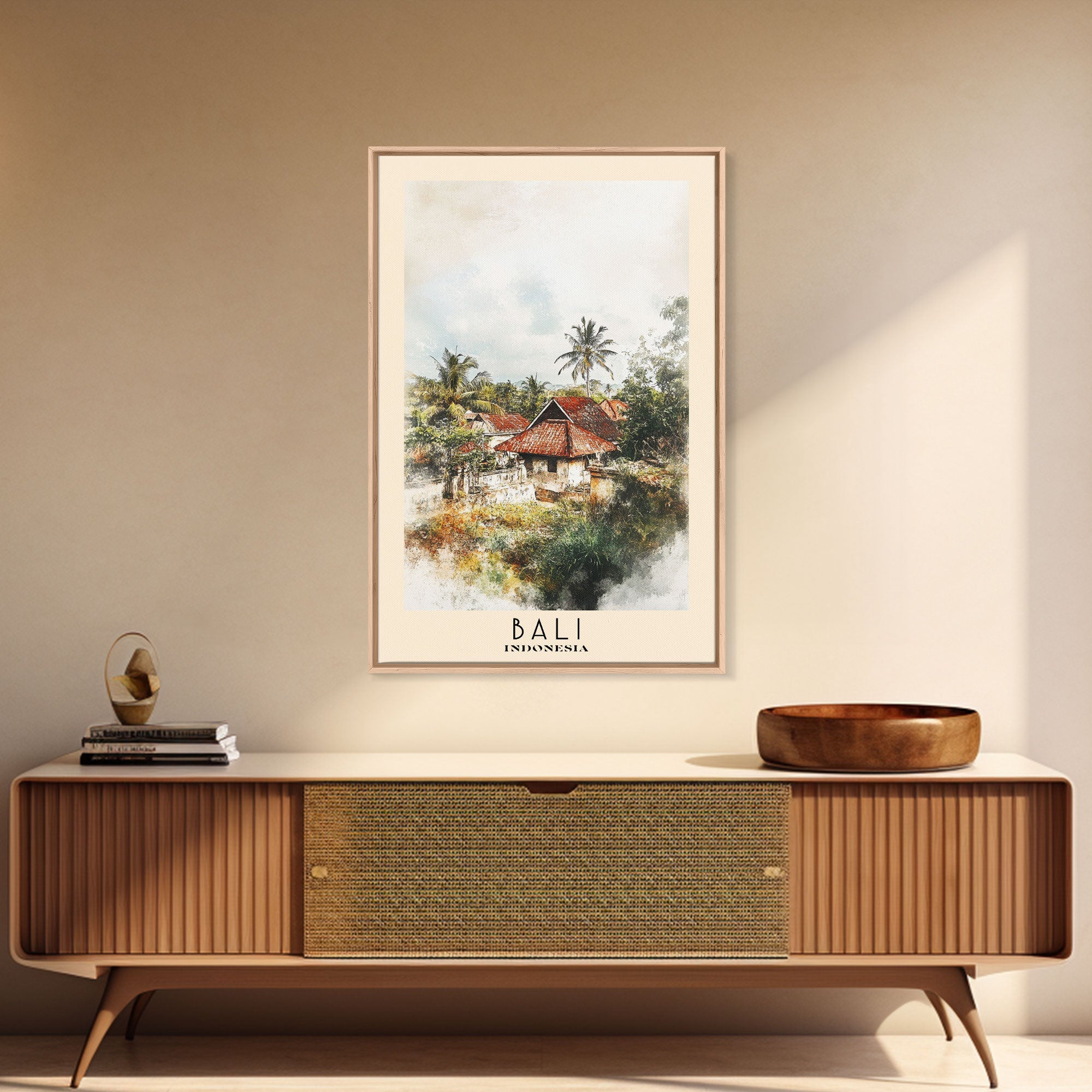 Bali, Indonesia Watercolor Print, Vacation Gift, Indonesia Wall Art, Beach Painting, Beach Decor, Large Wall Art, Wood Frame Art