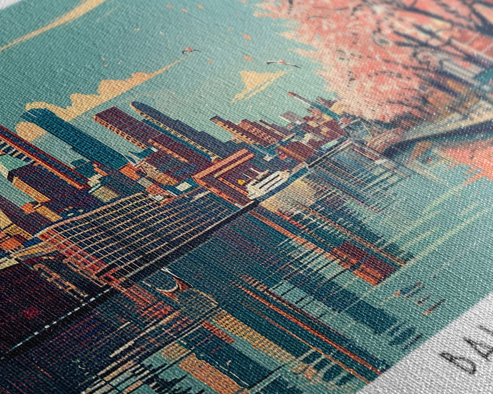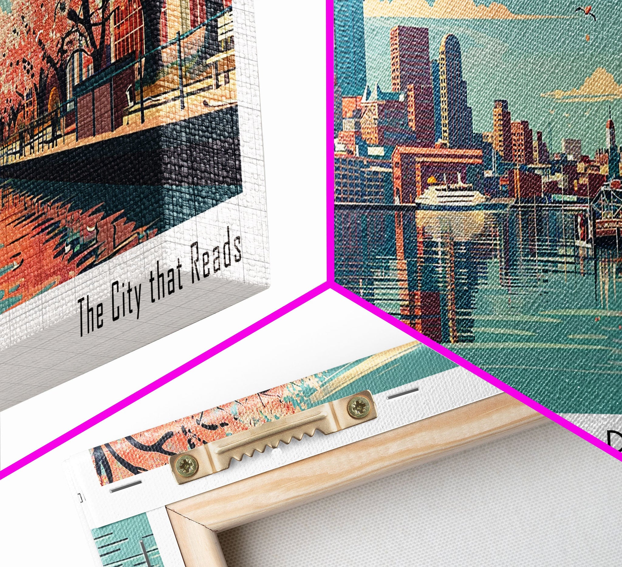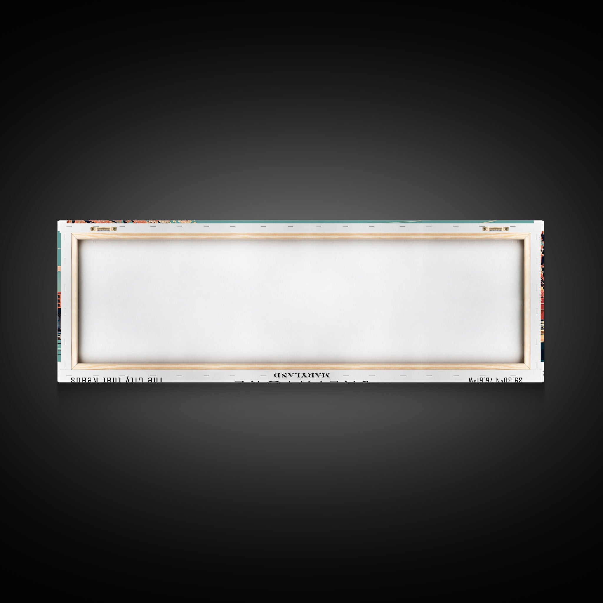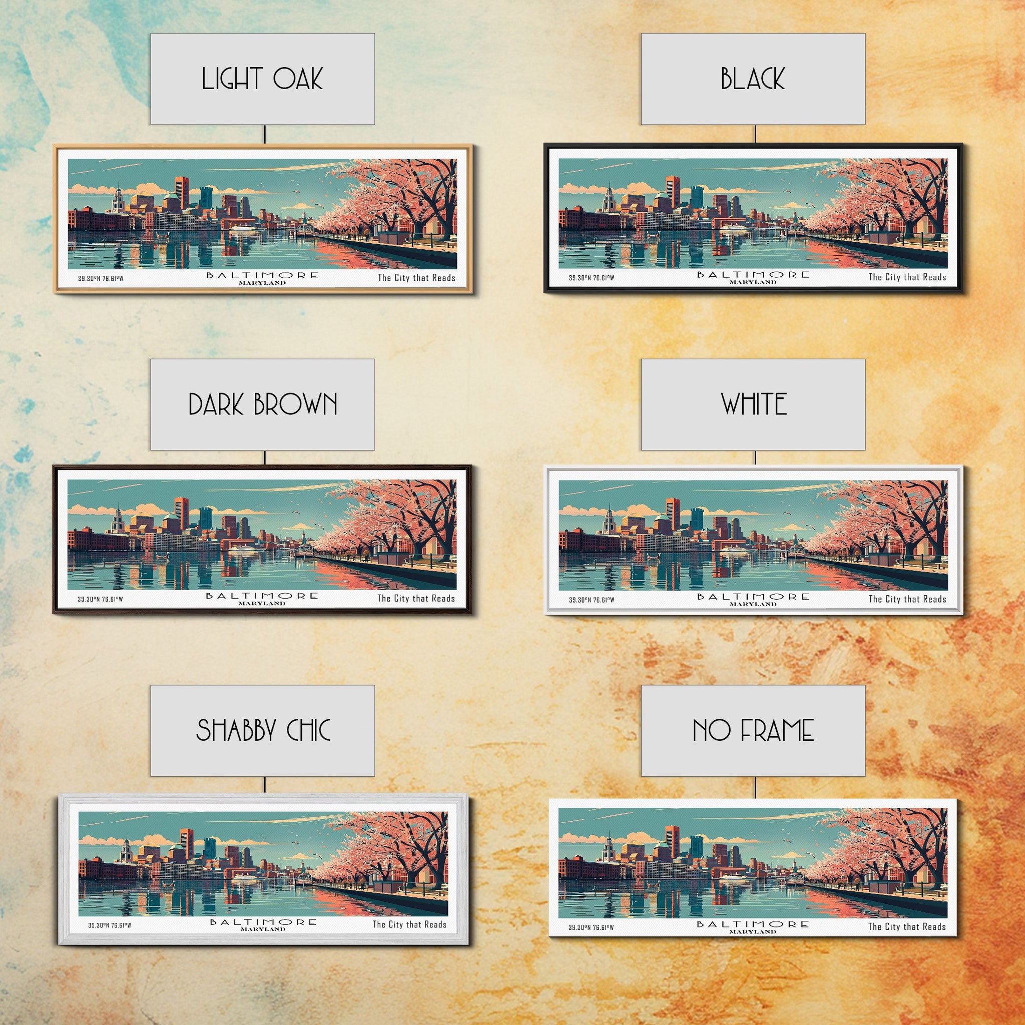 Baltimore Maryland Panoramic Painting, Framed Canvas Print, Mid Century Modern Wall Art, Retro Pop Art Travel Poster, Home Decor, City Art